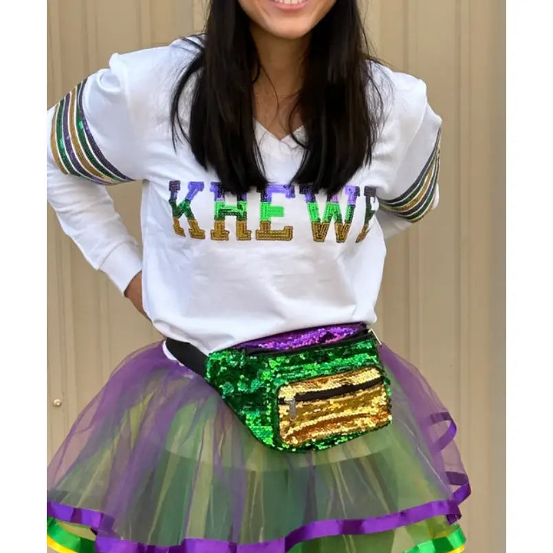 Mardi Gras Reversible Color Block Sequin Fanny Pack
