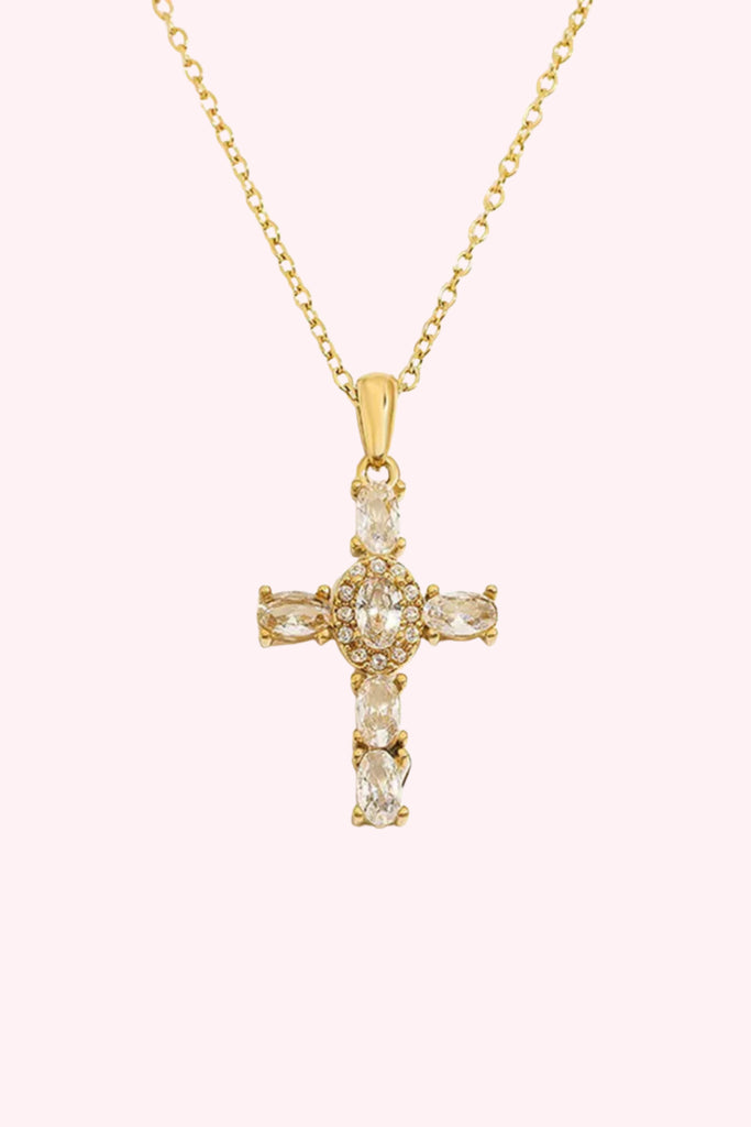 Savvy Bling: Cross Oval Cz Necklace - Waterproof
