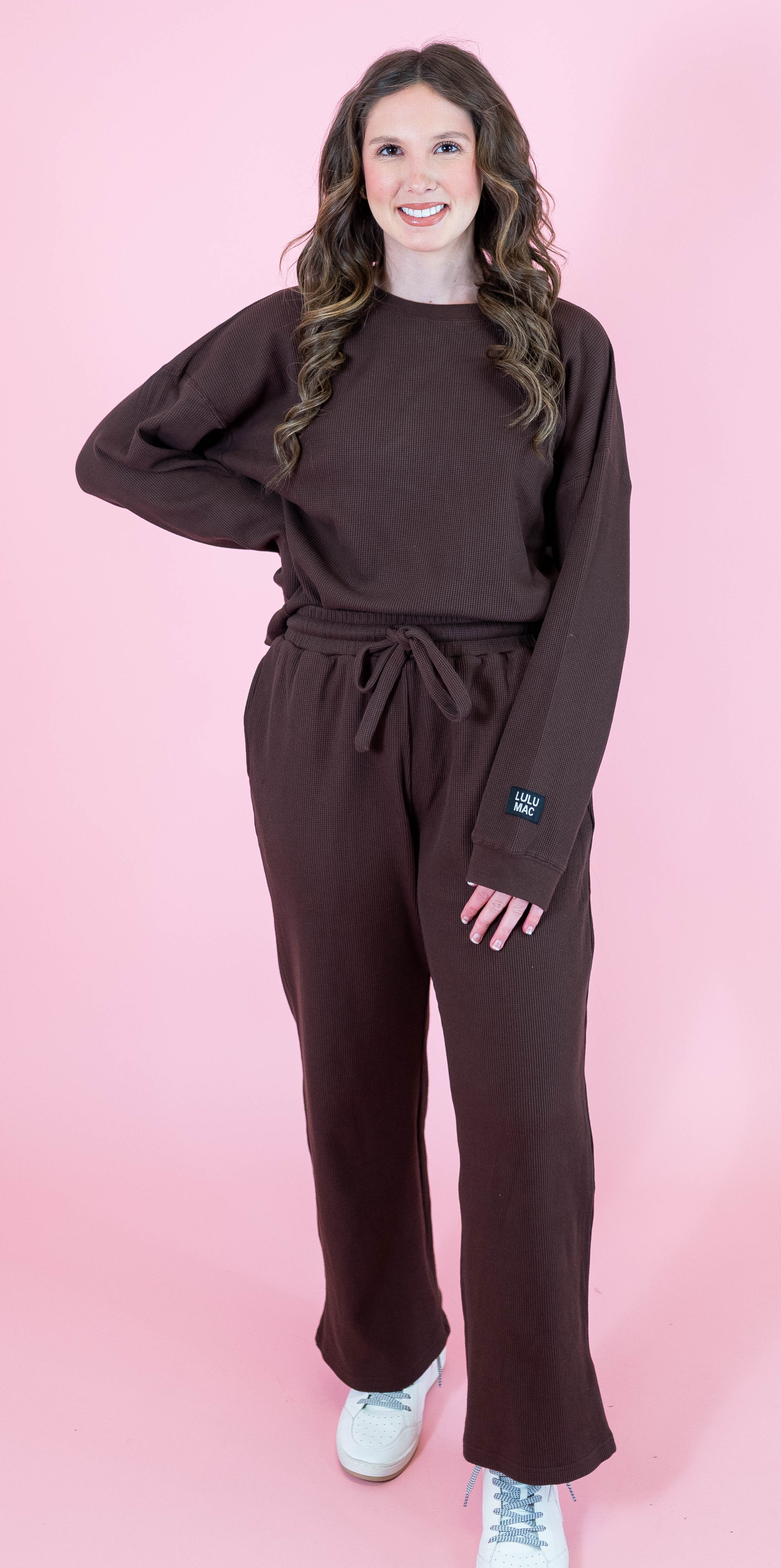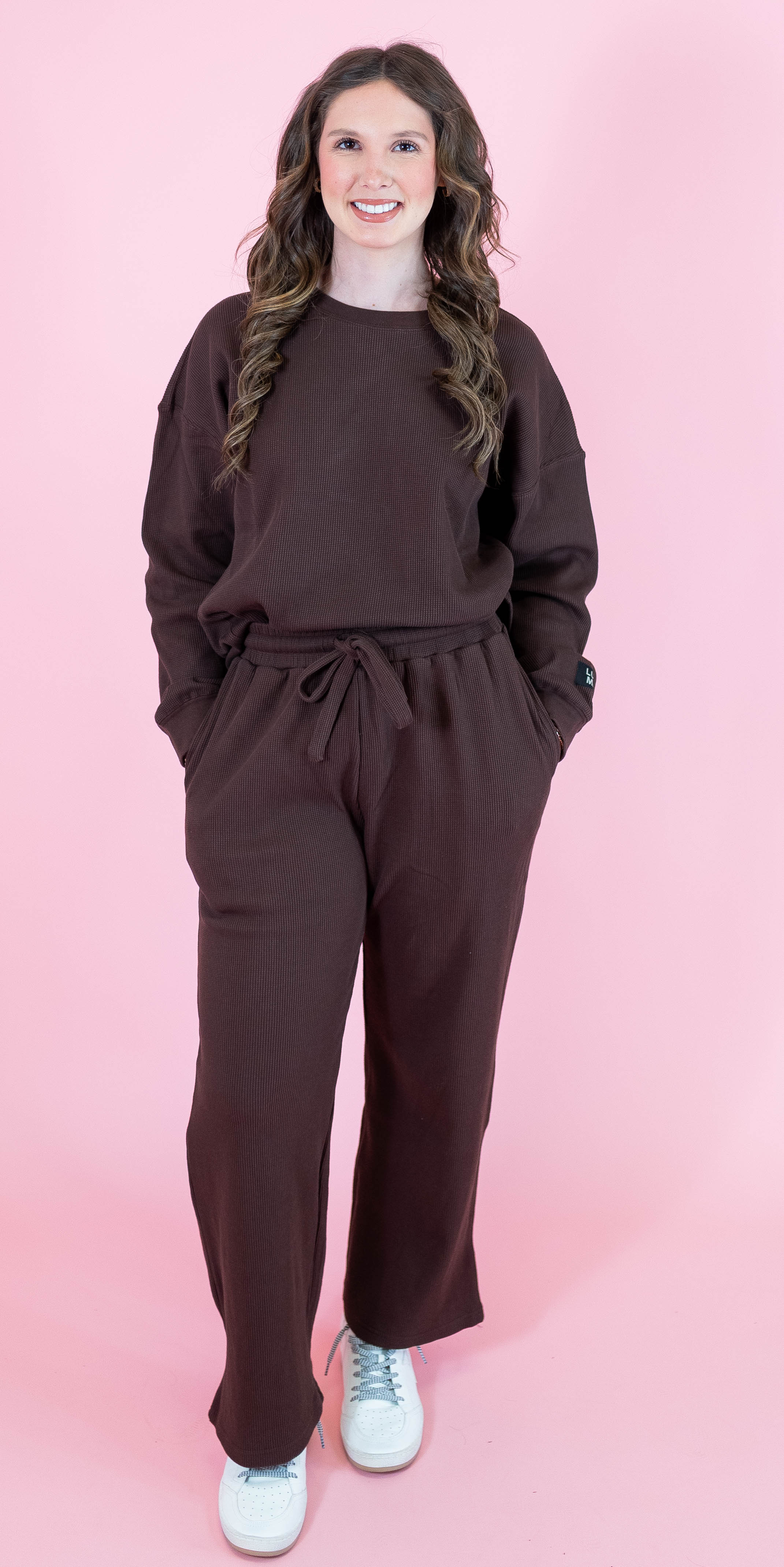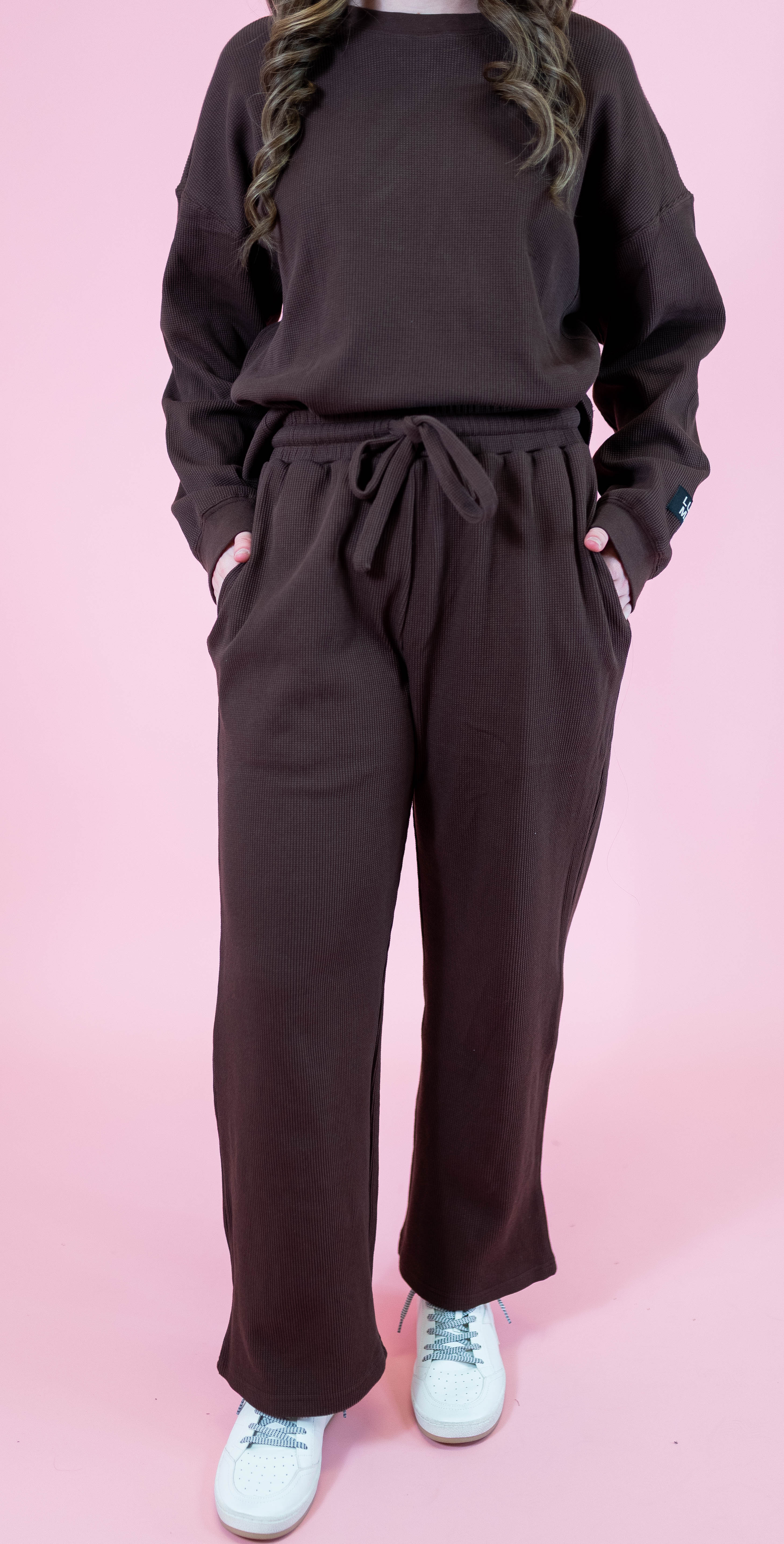 Cozy meets cute in our Waffle Pop Collection! Made from ultra-soft waffle knit fabric (95% Cotton and 5% Spandex), these pants are designed for all-day comfort with a relaxed, wide-leg fit. The ribbed waistband with a functional drawcord gives you the perfect adjustable fit, while pockets (yes, pockets!) add the practicality you’ll love. Pair them with the matching top to complete the coziest set ever.