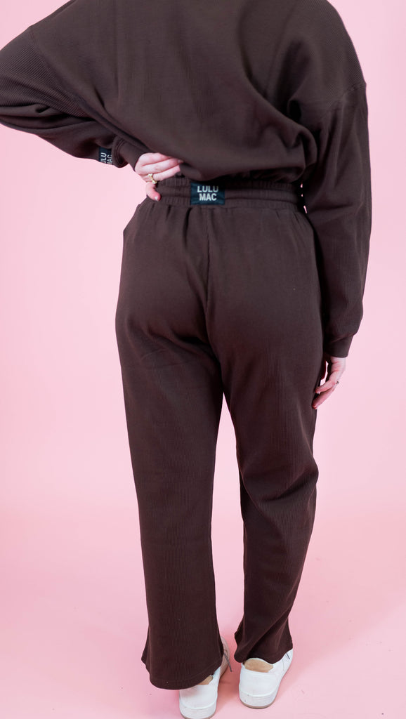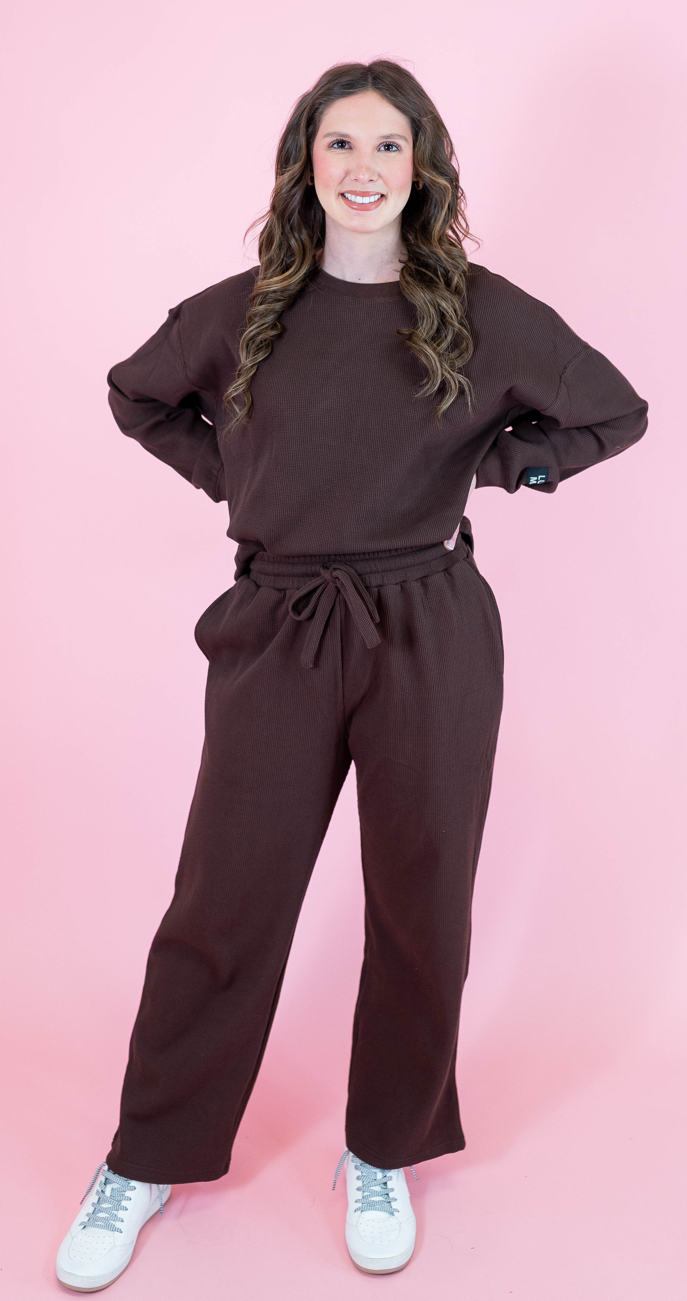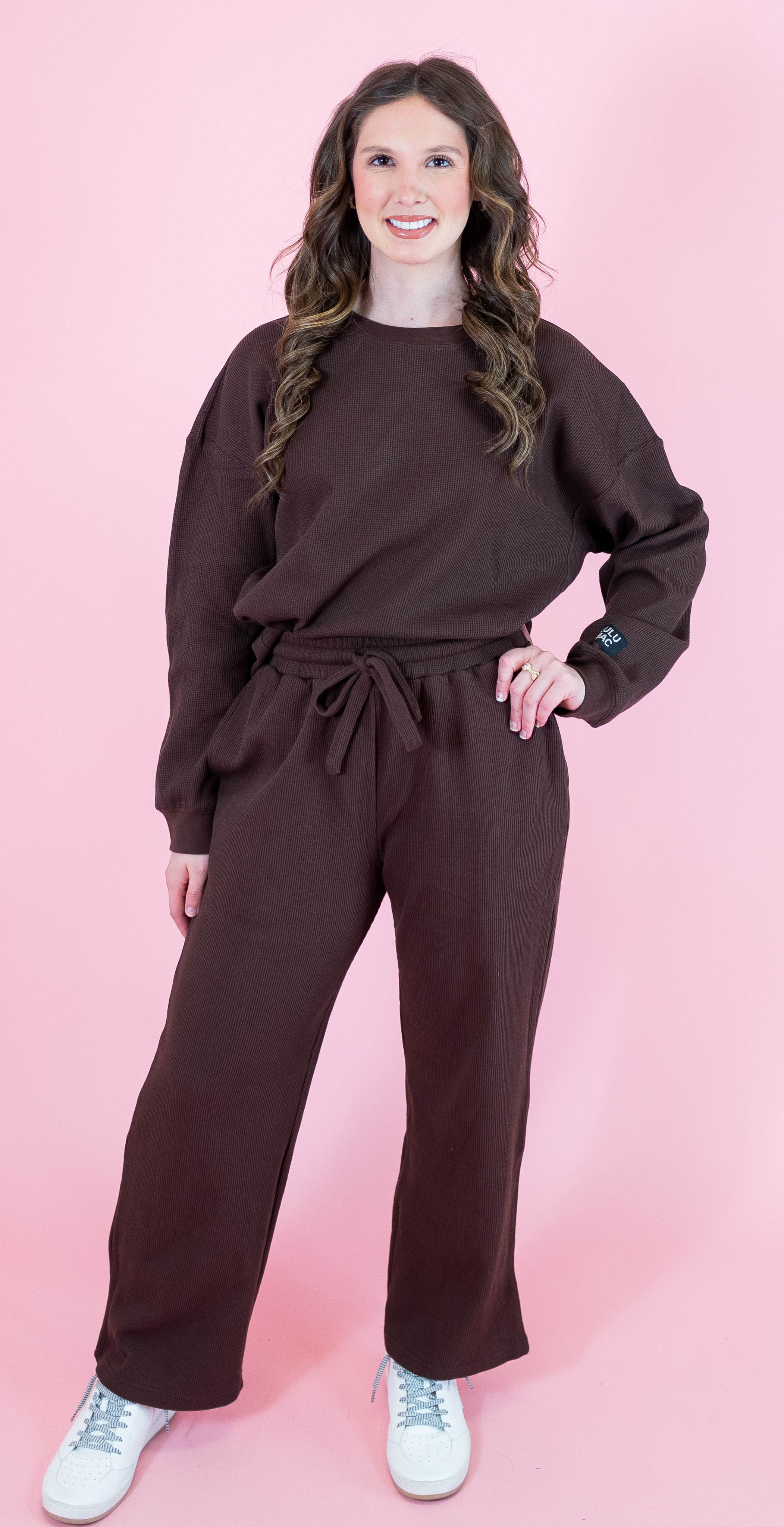 Cozy meets cute in our Waffle Pop Collection! Made from ultra-soft waffle knit fabric (95% Cotton and 5% Spandex), these pants are designed for all-day comfort with a relaxed, wide-leg fit. The ribbed waistband with a functional drawcord gives you the perfect adjustable fit, while pockets (yes, pockets!) add the practicality you’ll love. Pair them with the matching top to complete the coziest set ever.