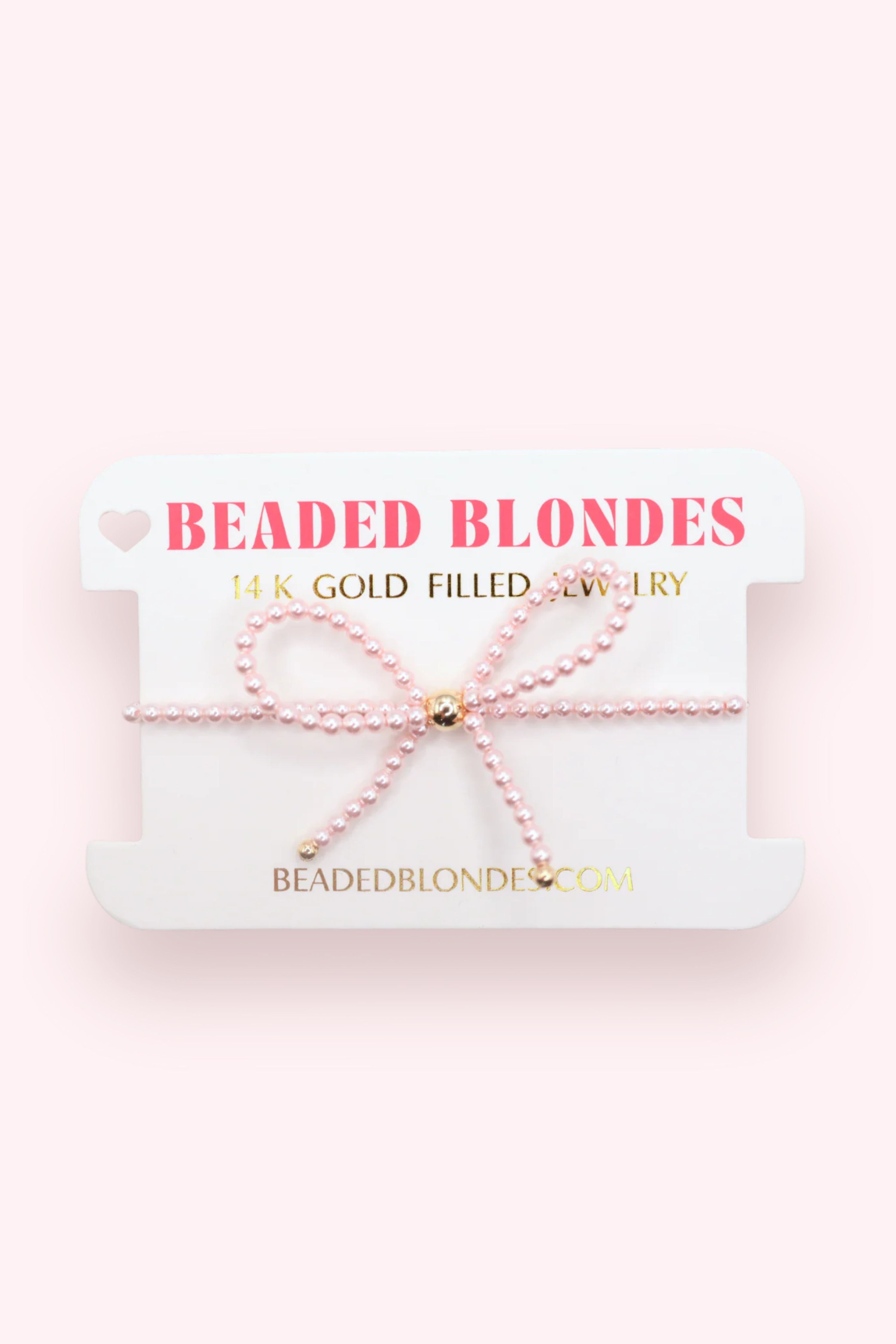Pink Pearl Beaded Bow Bracelet perfect for the holiday season and beyond.