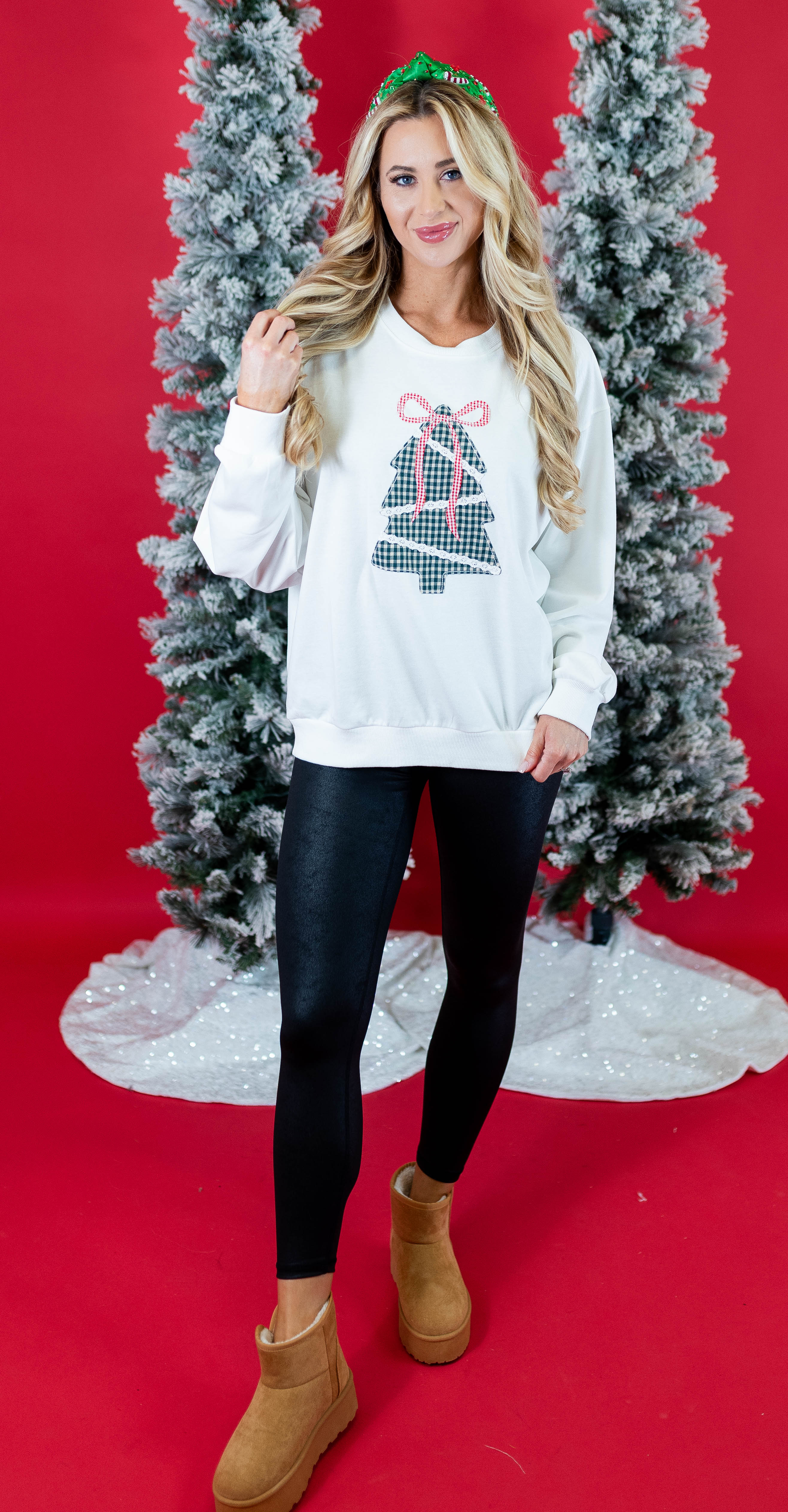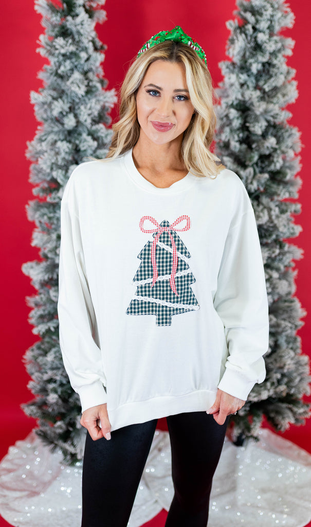 Bring festive cheer with our Holiday Plaid Tree Sweatshirt. Featuring a charming plaid Christmas tree applique topped with a bow, this cozy pullover blends playful holiday vibes with everyday comfort. Perfect for family gatherings, holiday parties, or seasonal gifting, it's a statement piece for winter wardrobes.
