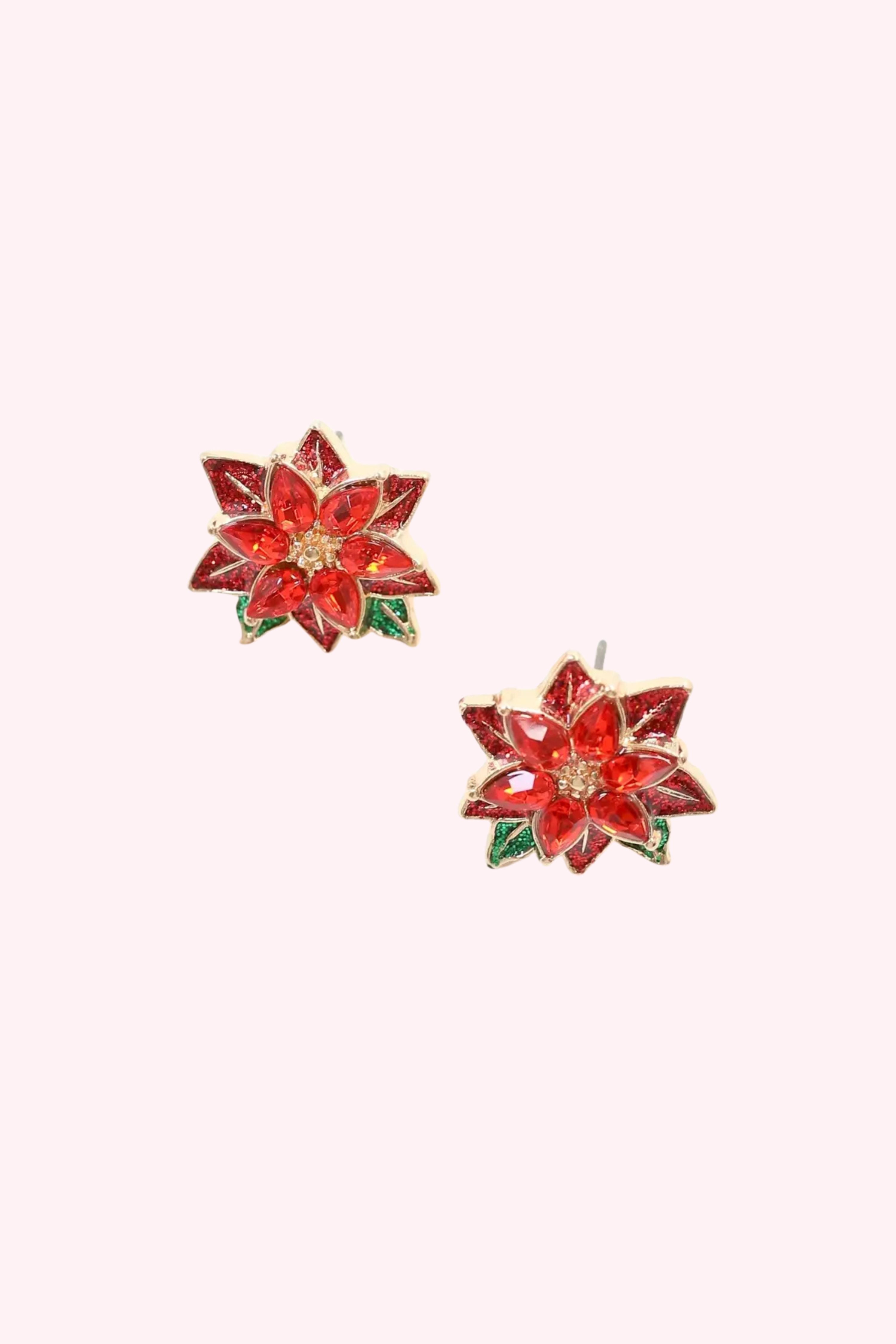 Celebrate the winter season with the Prancer Poinsettia Enamel Stud. Featuring vibrant red glittered enamel, a gleaming gold center, and detailed green leaves, this stylish accessory adds a festive touch to any outfit. Perfect for holiday gatherings or everyday wear.