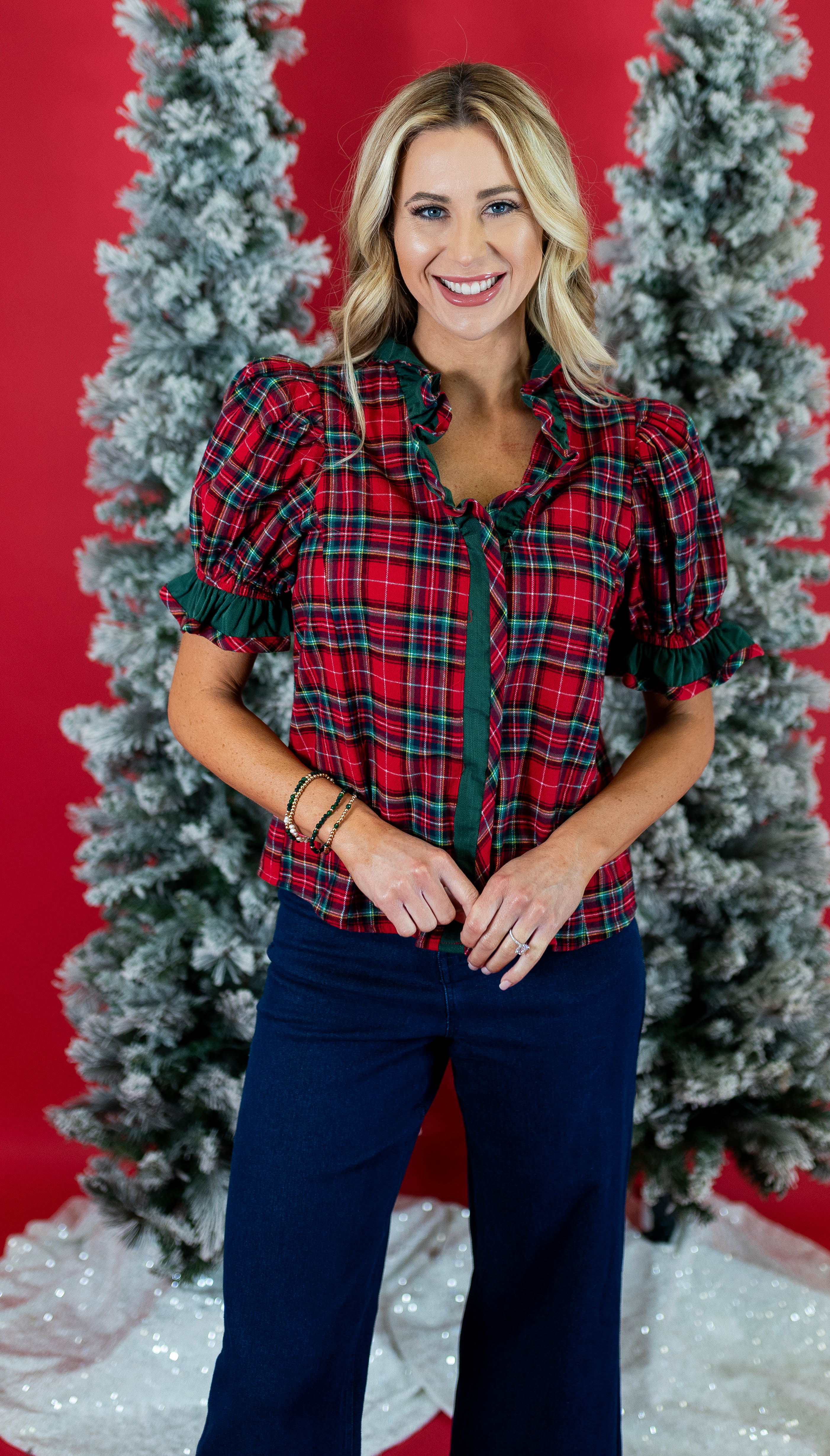 Elevate your wardrobe with the Red Rowan Plaid Top, a timeless piece crafted for effortless style and comfort. Its classic plaid pattern pairs perfectly with jeans or skirts, making it ideal for both casual outings and office days. Designed with a flattering fit and soft fabric, this top ensures all-day comfort while enhancing your look. Make a statement with versatile elegance that transitions seamlessly from day to night.