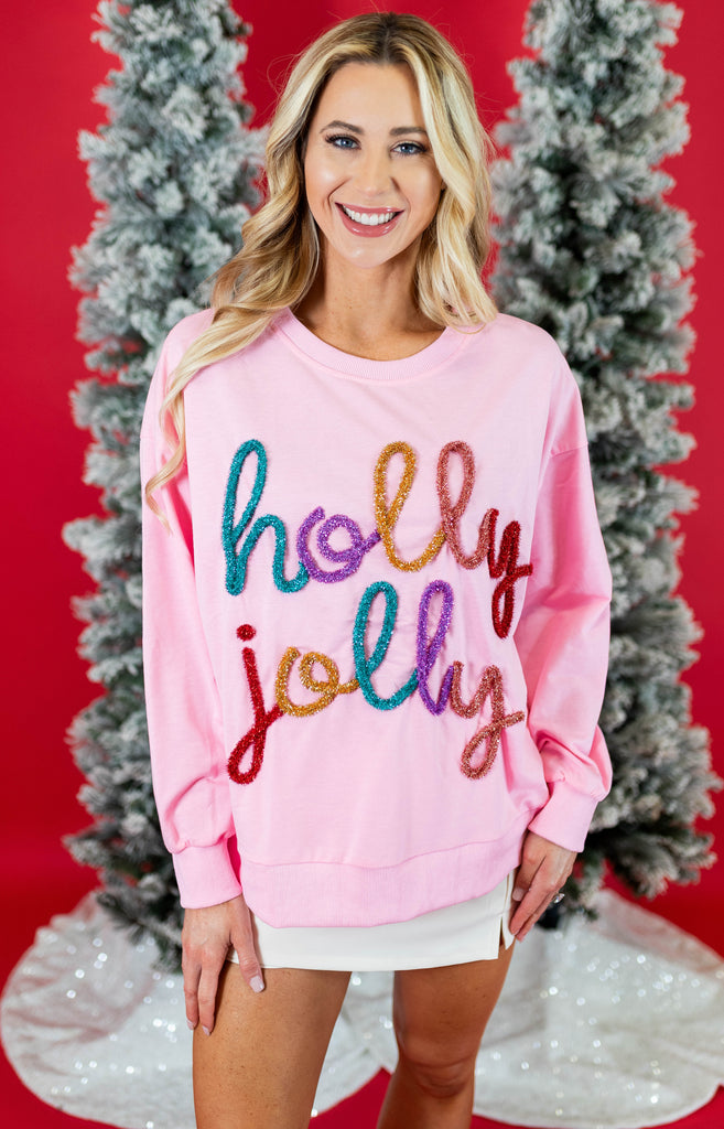 Holly Jolly Christmas French Terry Pullover - Pink