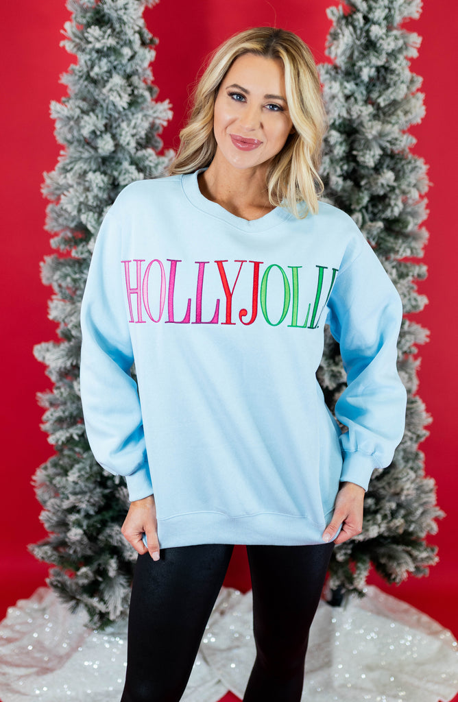 Holly Jolly Embroidery Fleece Terry Sweatshirt