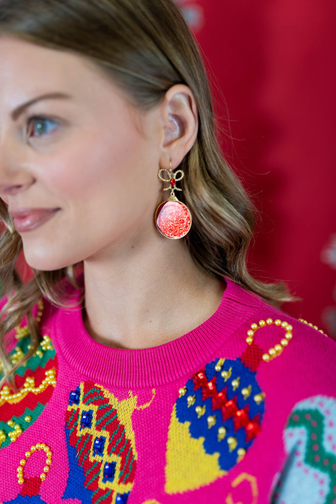 Pink Merry & Bright Christmas Light Bulb Earrings