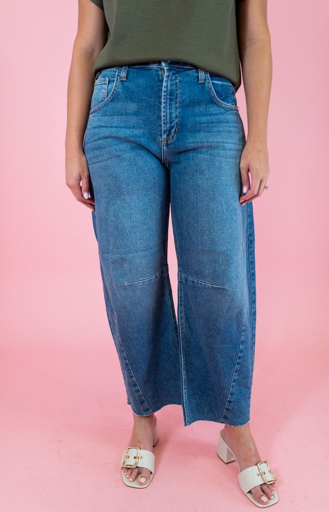 Barrel Jeans with Seams - Medium Denim