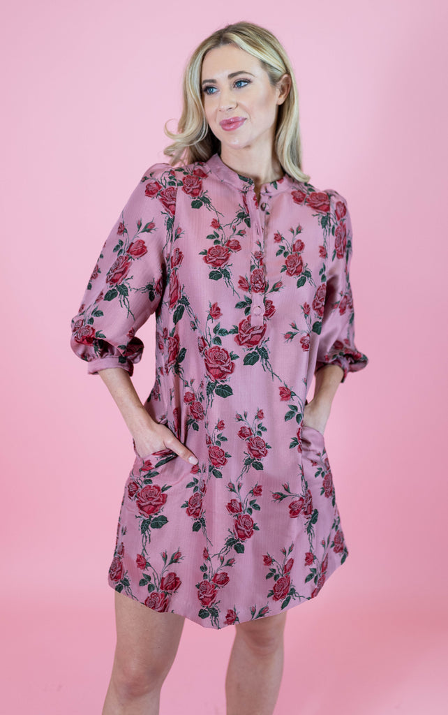 Dusty Bloom 3/4 Sleeve Dress