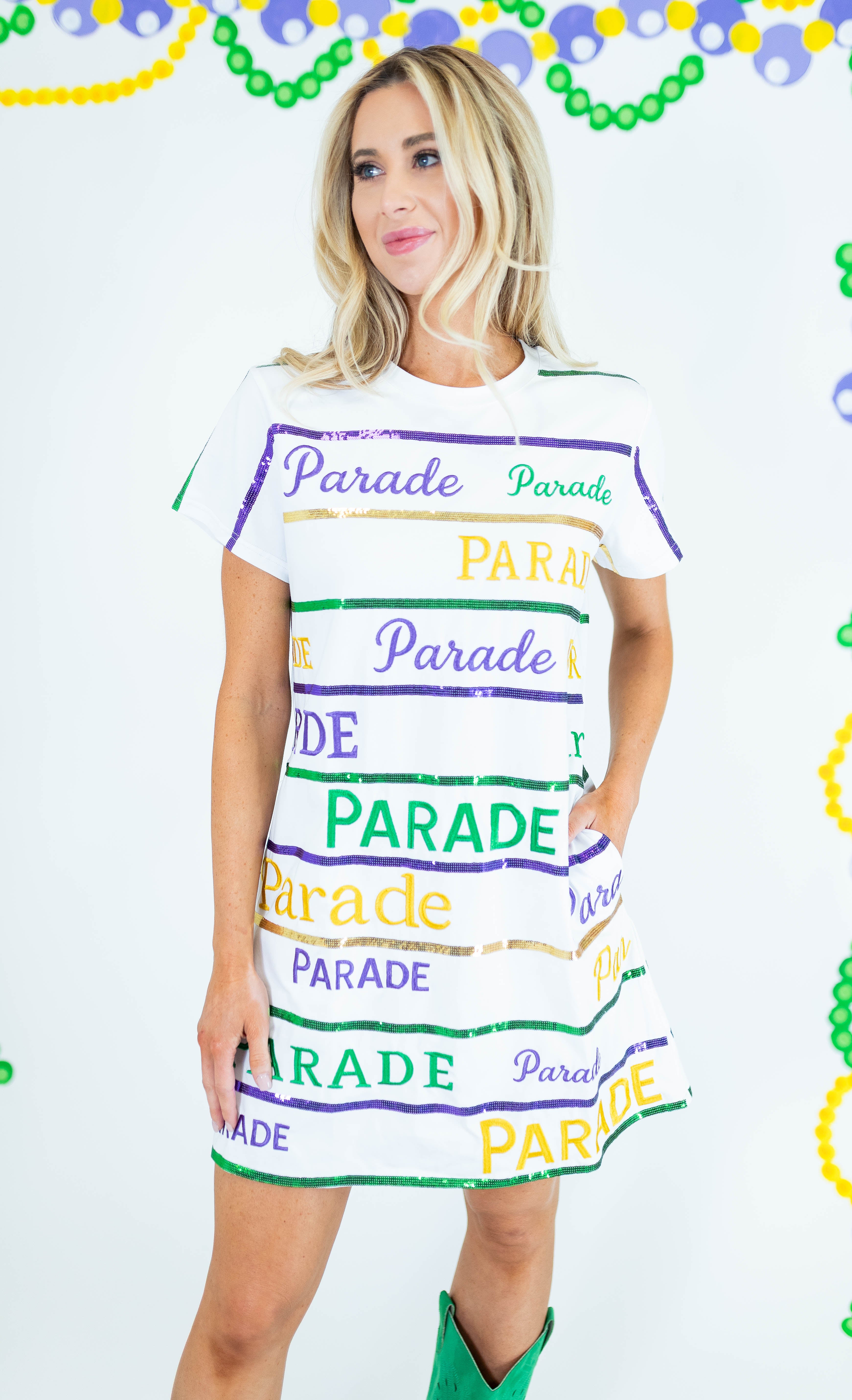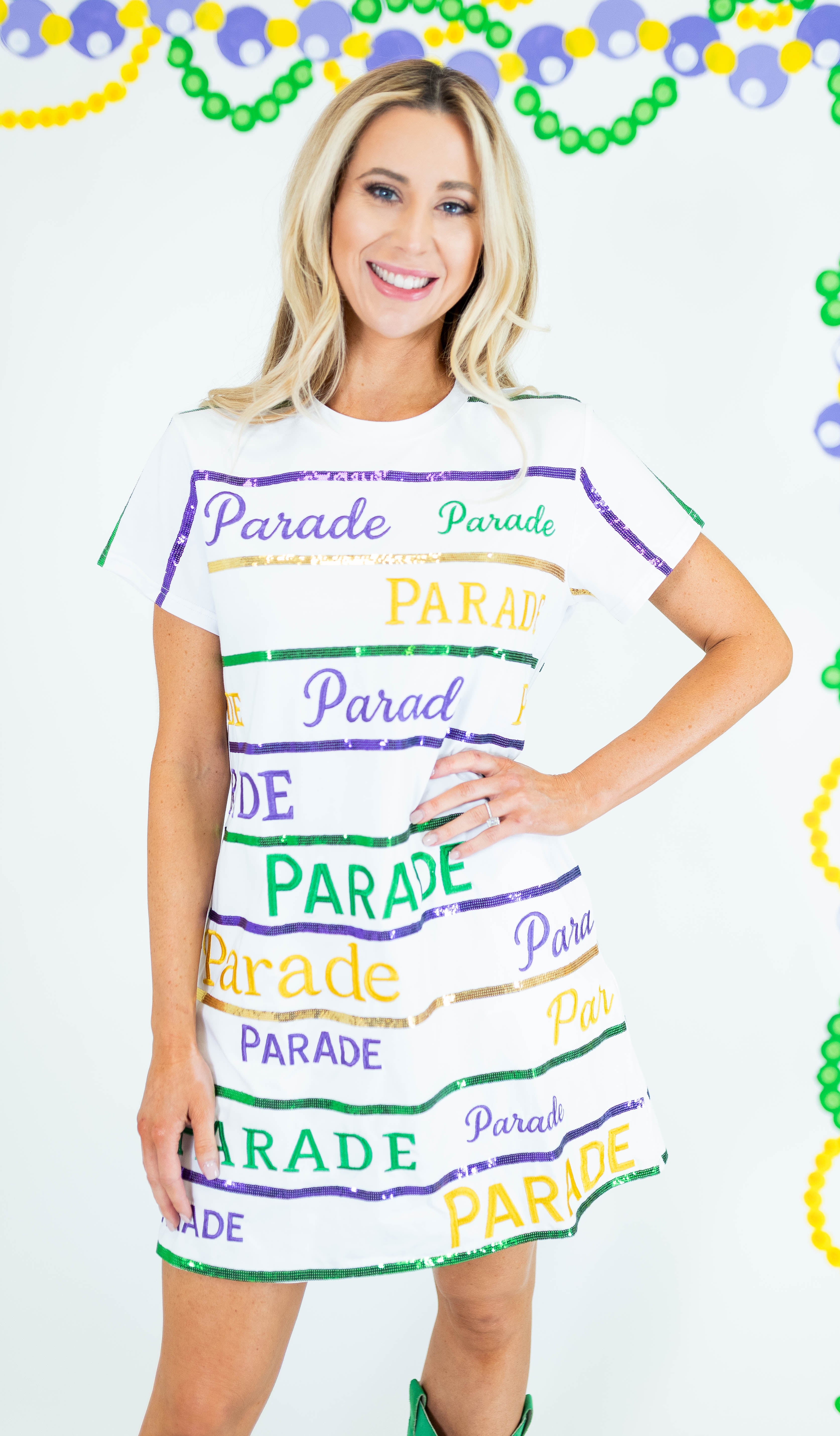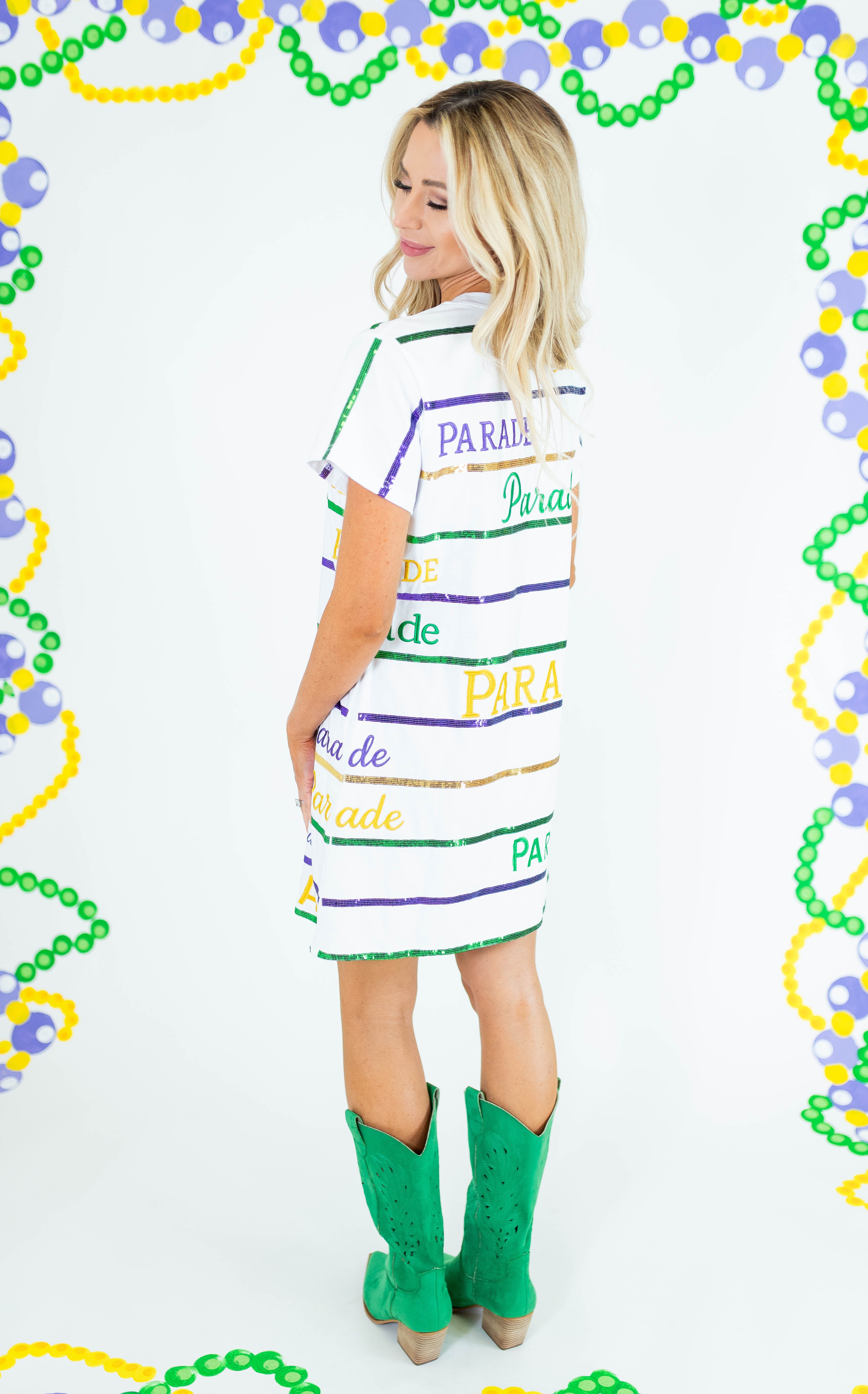 Mardi Gras Parade Sequin T-Shirt Dress - White