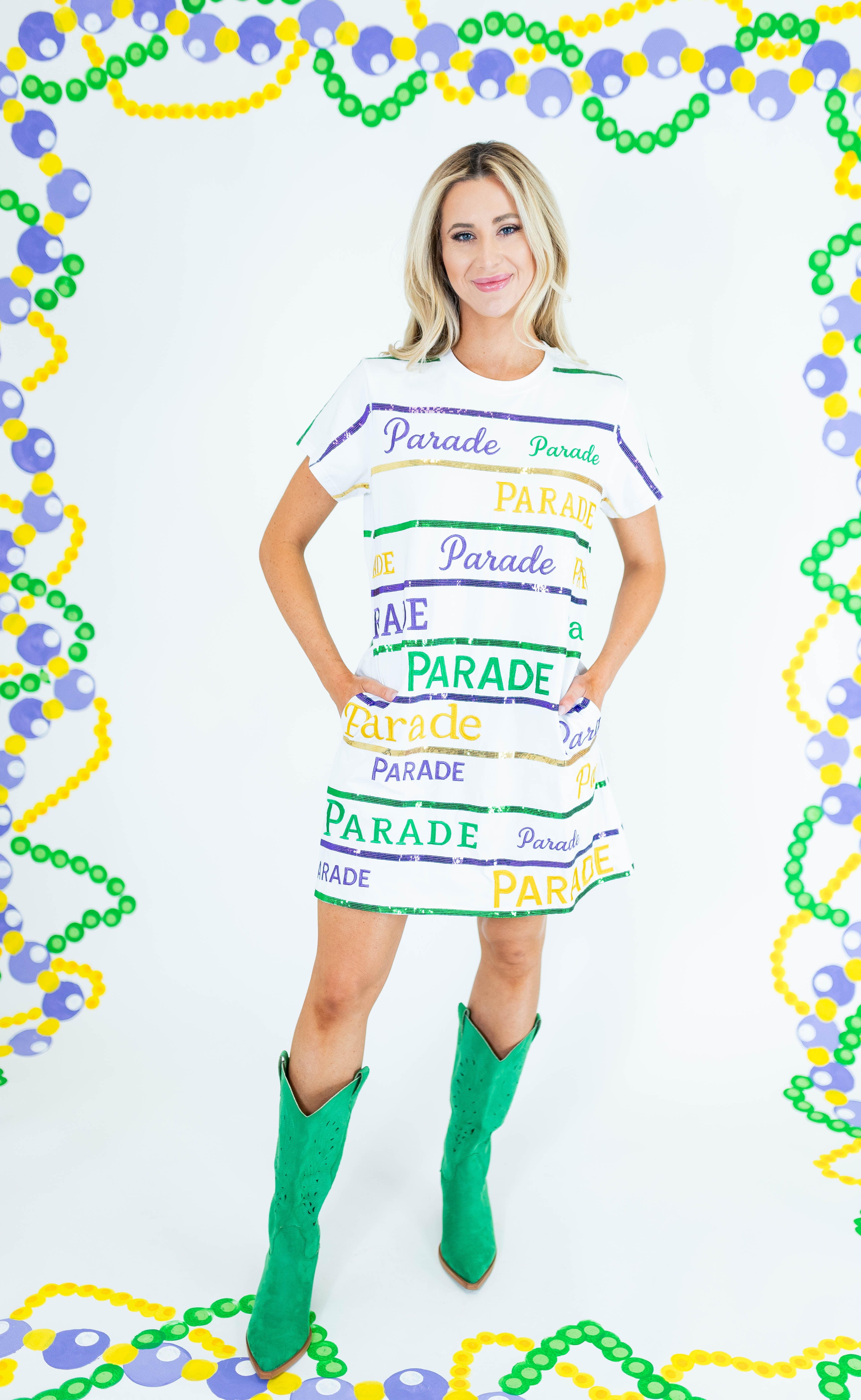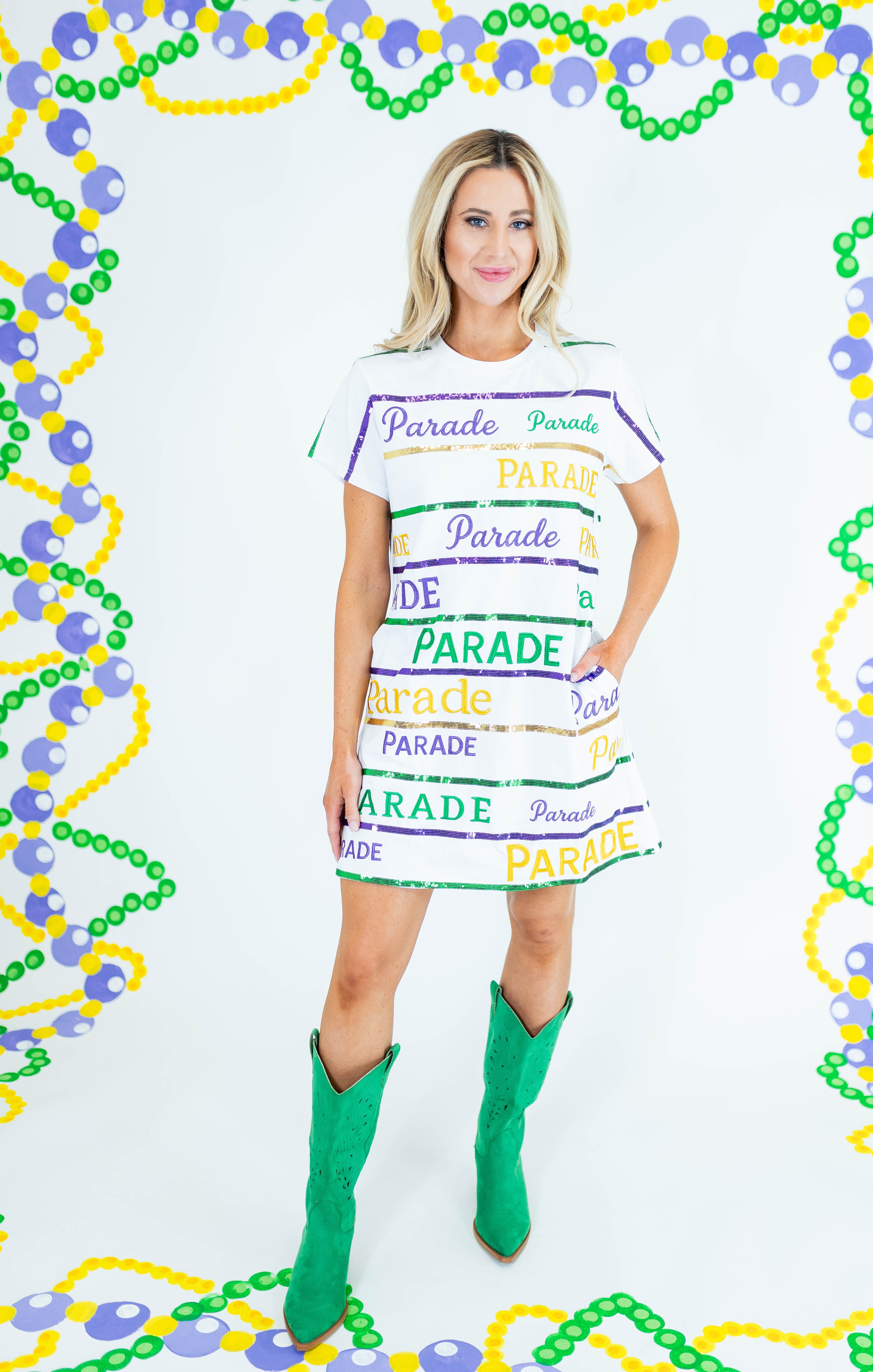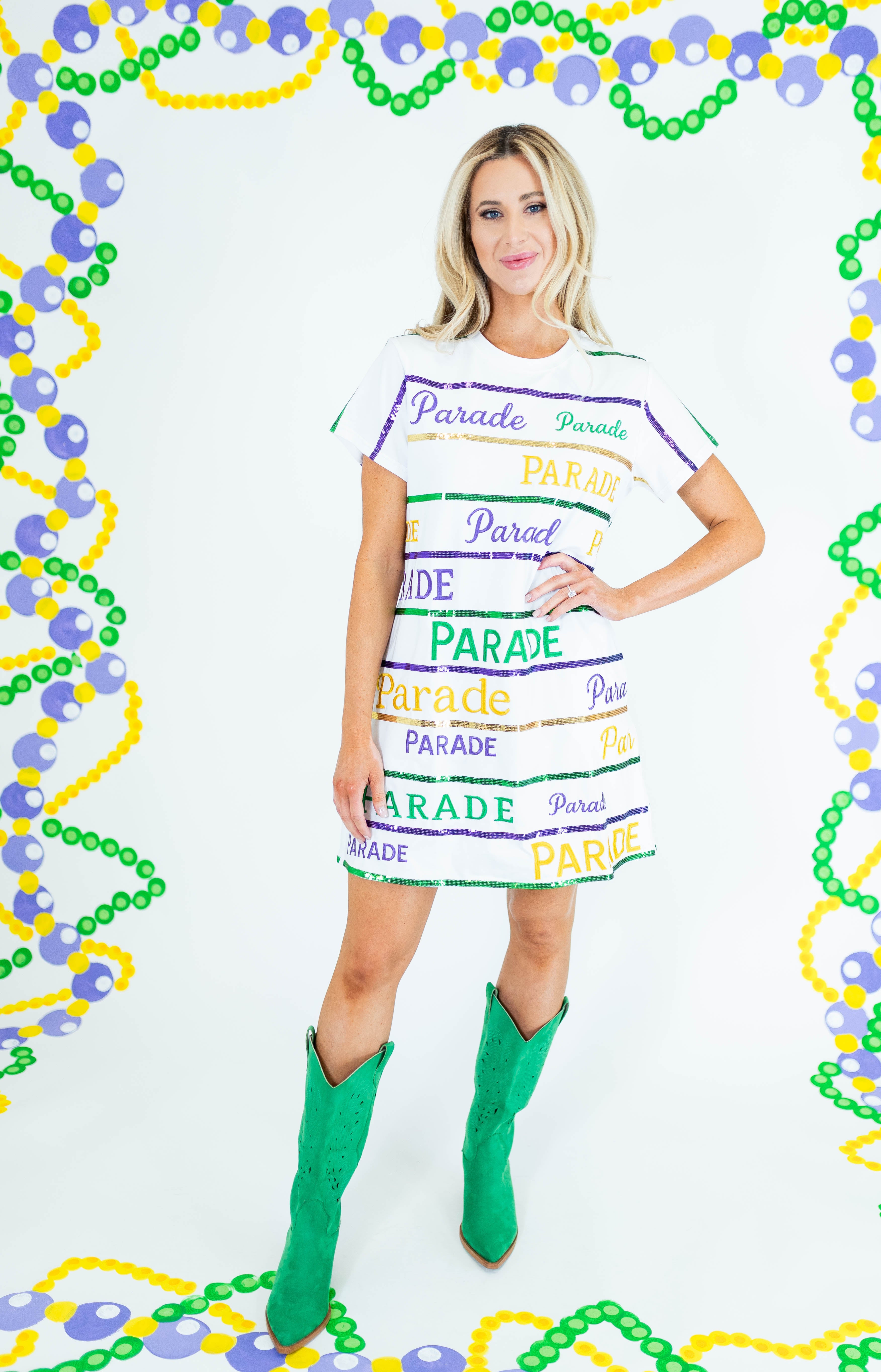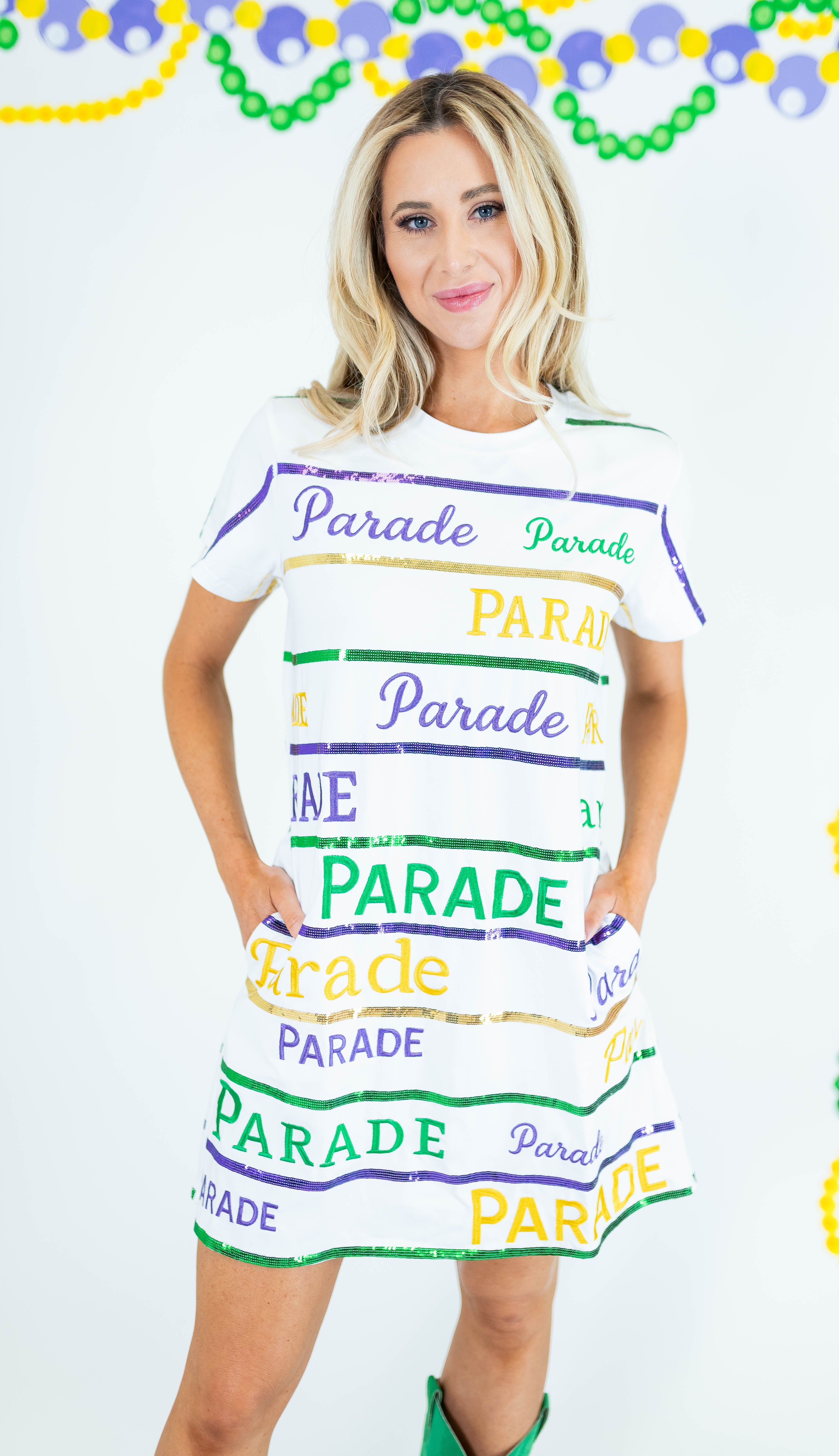 Mardi Gras Parade Sequin T-Shirt Dress - White
