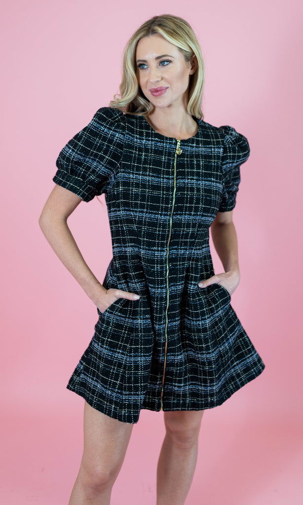 Elevate your holiday style with the Darcie Plaid Tweed Mini Dress in classic black or red. This chic mini dress blends timeless plaid tweed with a modern cut, creating a perfect balance of elegance and edge. Its flattering silhouette and textured fabric make it an ideal choice for festive gatherings, ensuring you stand out with sophisticated charm. Add a touch of refined glamour to your seasonal wardrobe with this must-have dress.