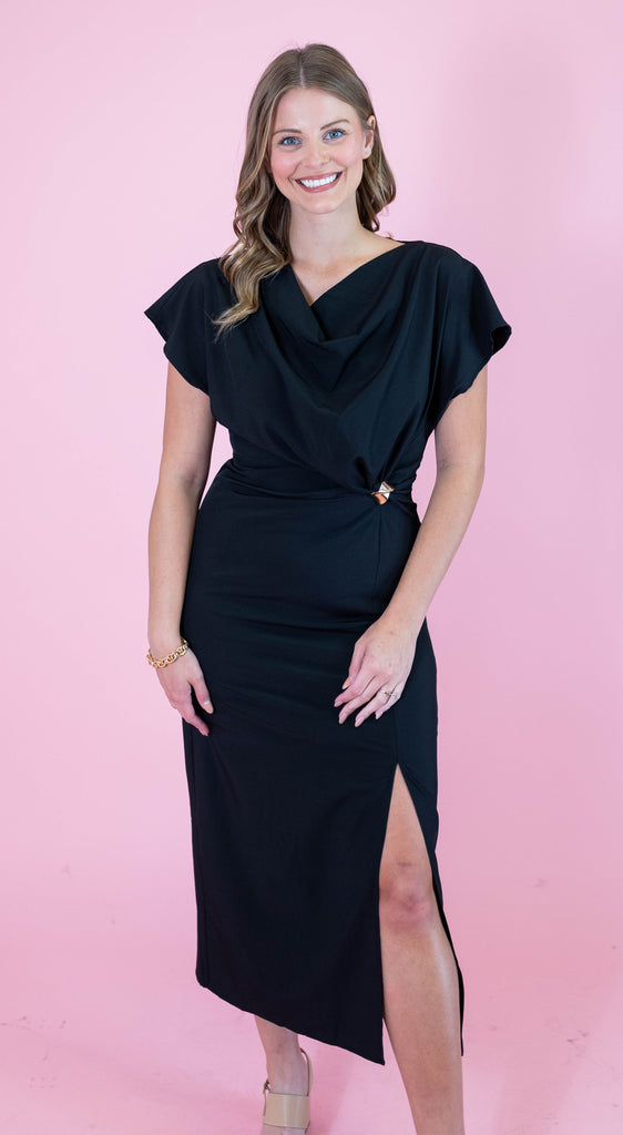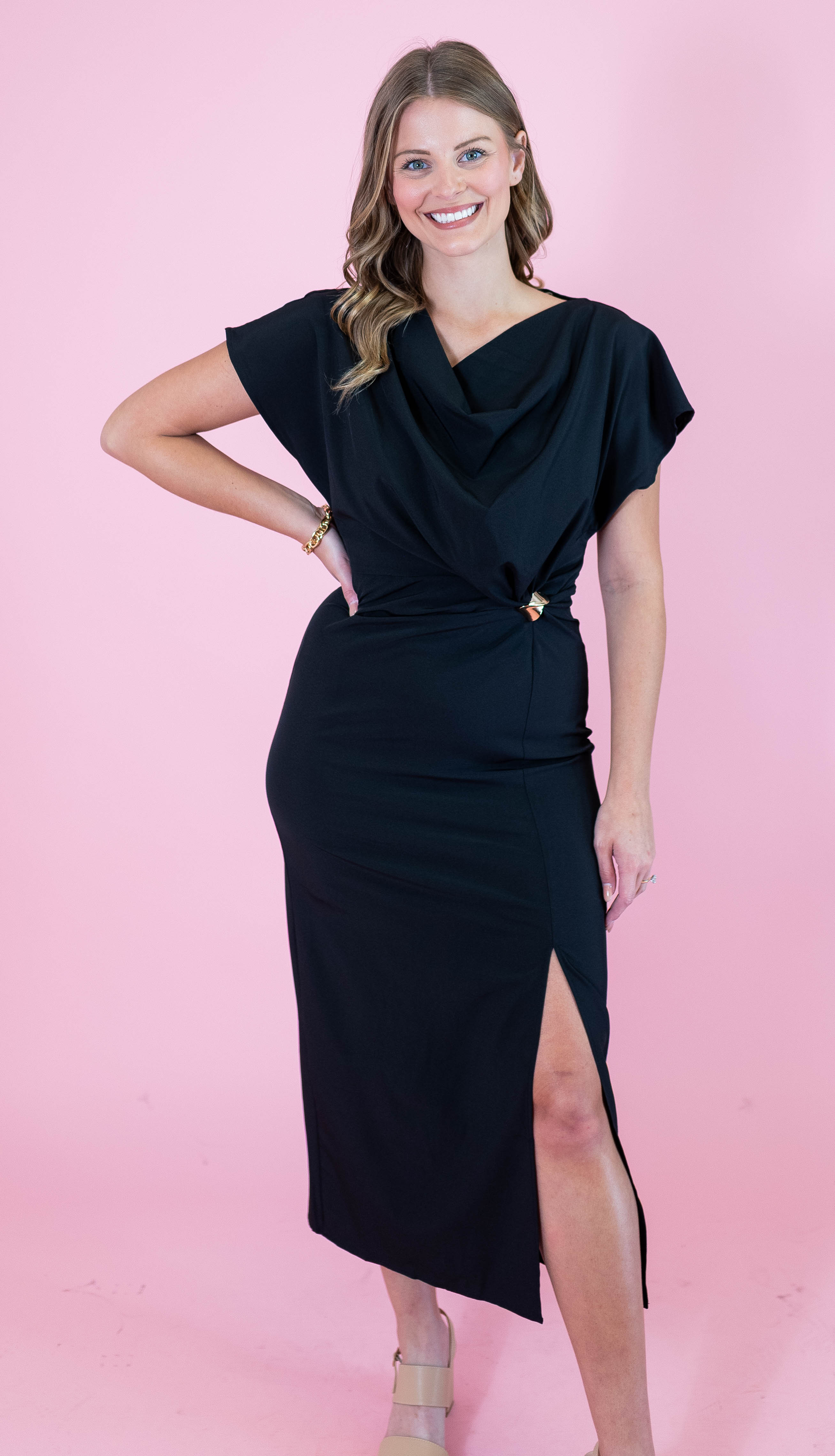 Elevate your wardrobe with the Sienna Draped Midi Dress in black, brown and hunter green. Its elegant draped silhouette flatters every figure, while the midi length adds a timeless touch. Perfect for both sophisticated evenings and stylish daytime events, this dress combines comfort with effortless chic. Designed to make you feel confident and graceful, the Sienna is a versatile staple that enhances your natural allure.
