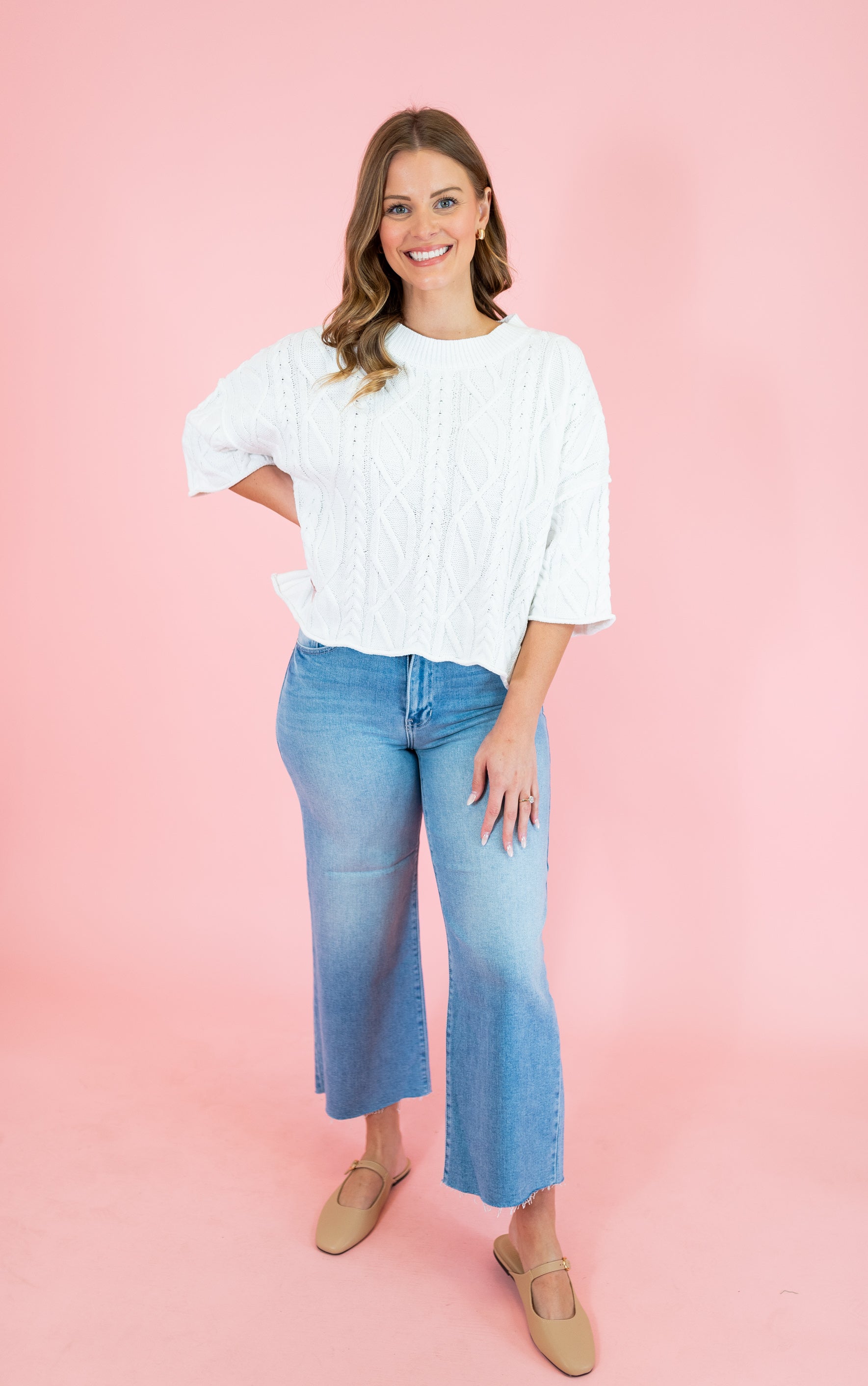 Your wardrobe just got a whole lot more fun! This pullover knit sweater is the ultimate comfort-meets-style piece with its flattering 3/4 sleeves that work year-round. Snag it in four fab shades—rich blue, peachy coral pink, dreamy lavender, or crisp off-white—so you can match every vibe. Soft, cozy, and ready for anything from weekend hangs to weekday wins!