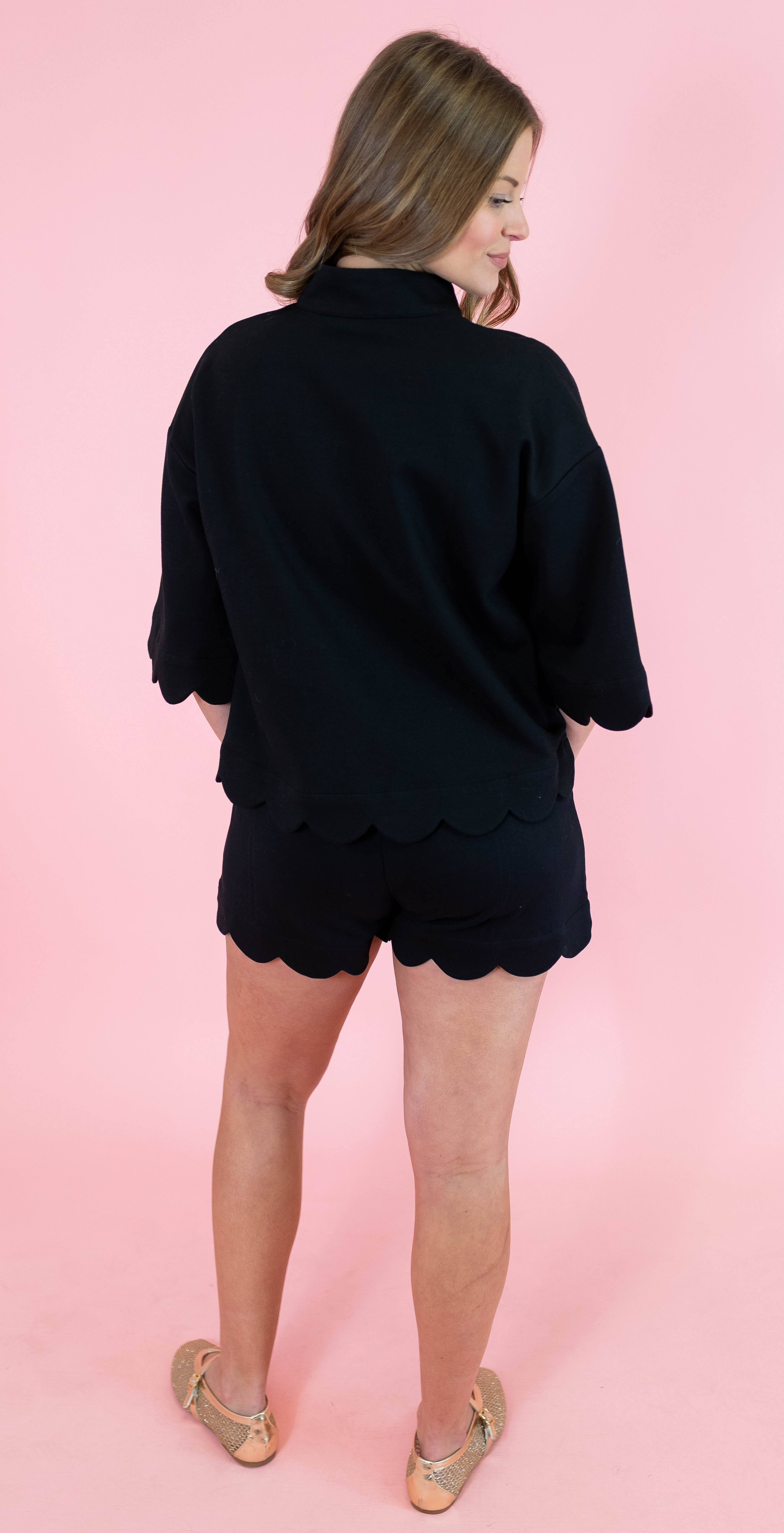 Elevate your casual wardrobe with this charming half-sleeve top featuring a delicate scallop hem that adds instant personality to any outfit. The solid color keeps things versatile, making it the perfect companion to our matching scallop shorts for a coordinated, put-together look. Soft and comfortable for all-day wear, this playful piece brings a touch of whimsy to your everyday style. Mix and match or wear as a set—either way, you'll love the effortless charm it brings to your closet.