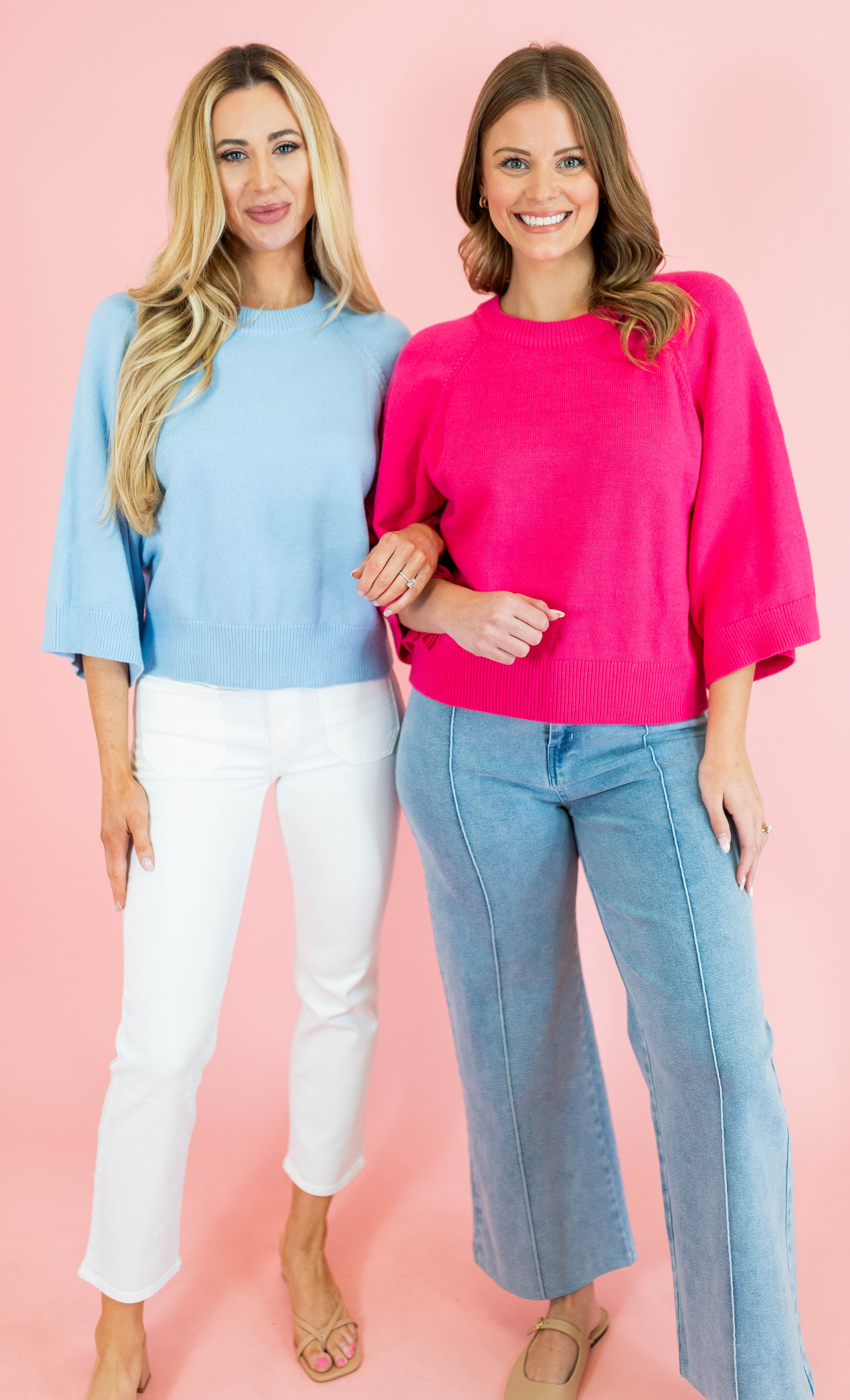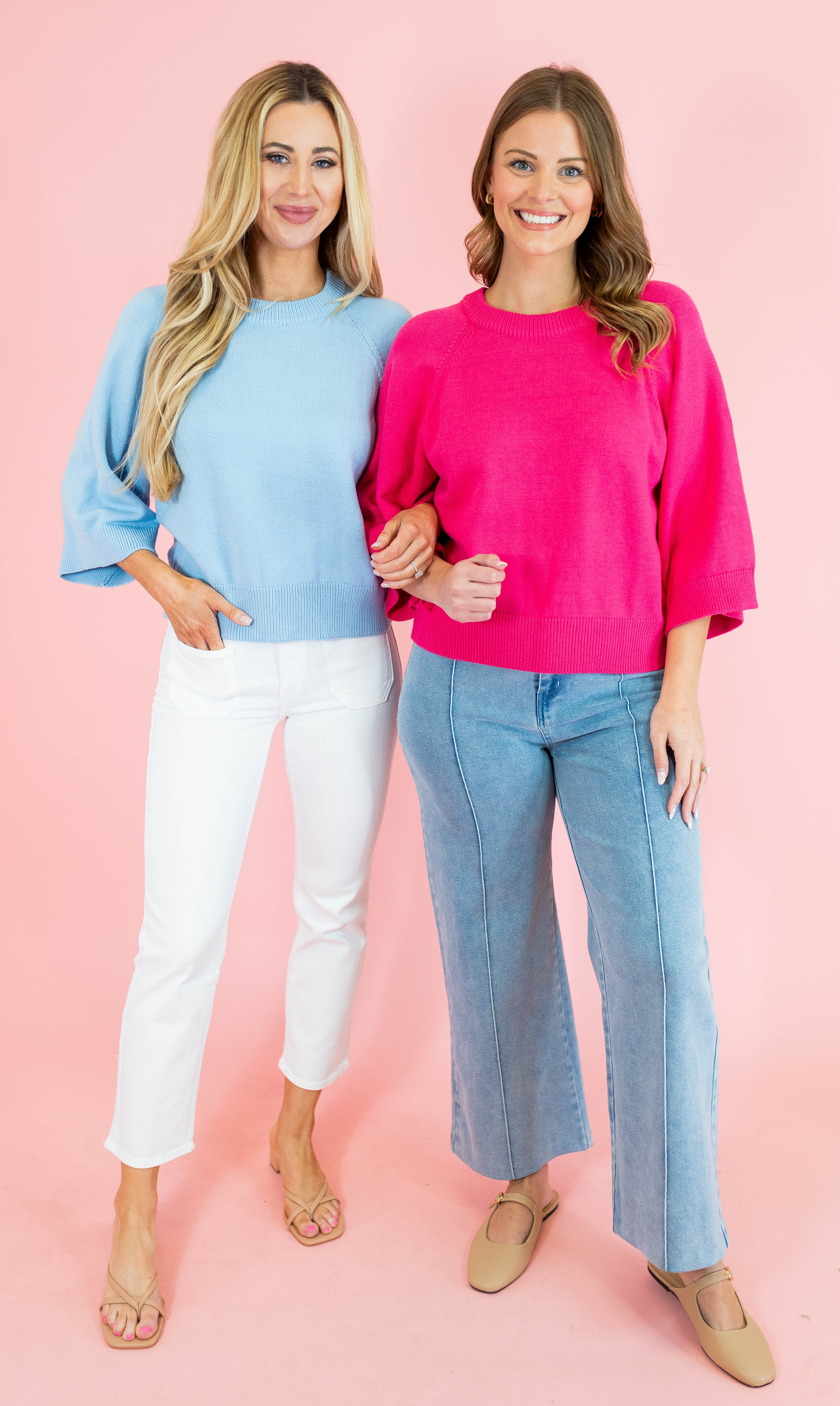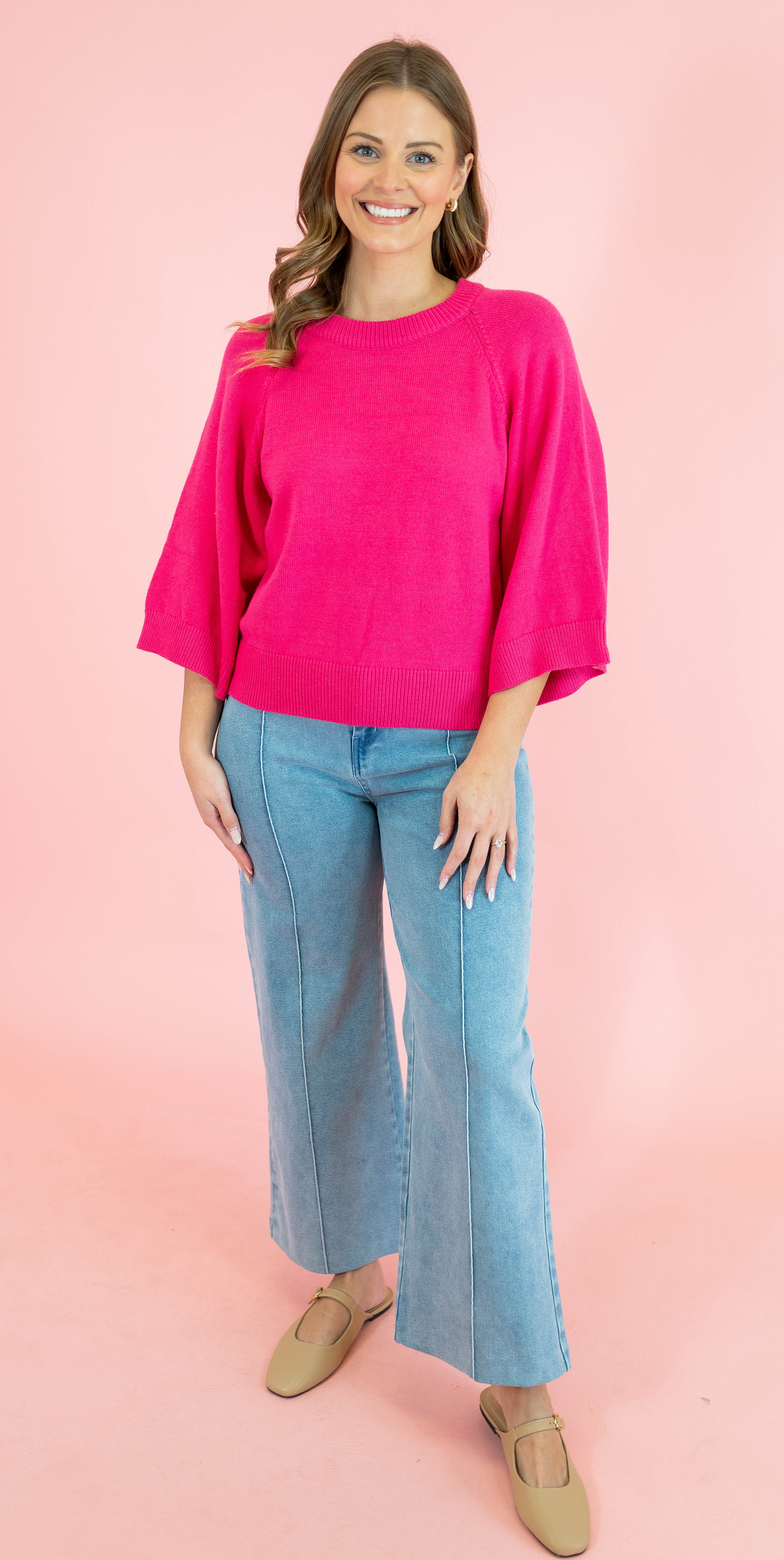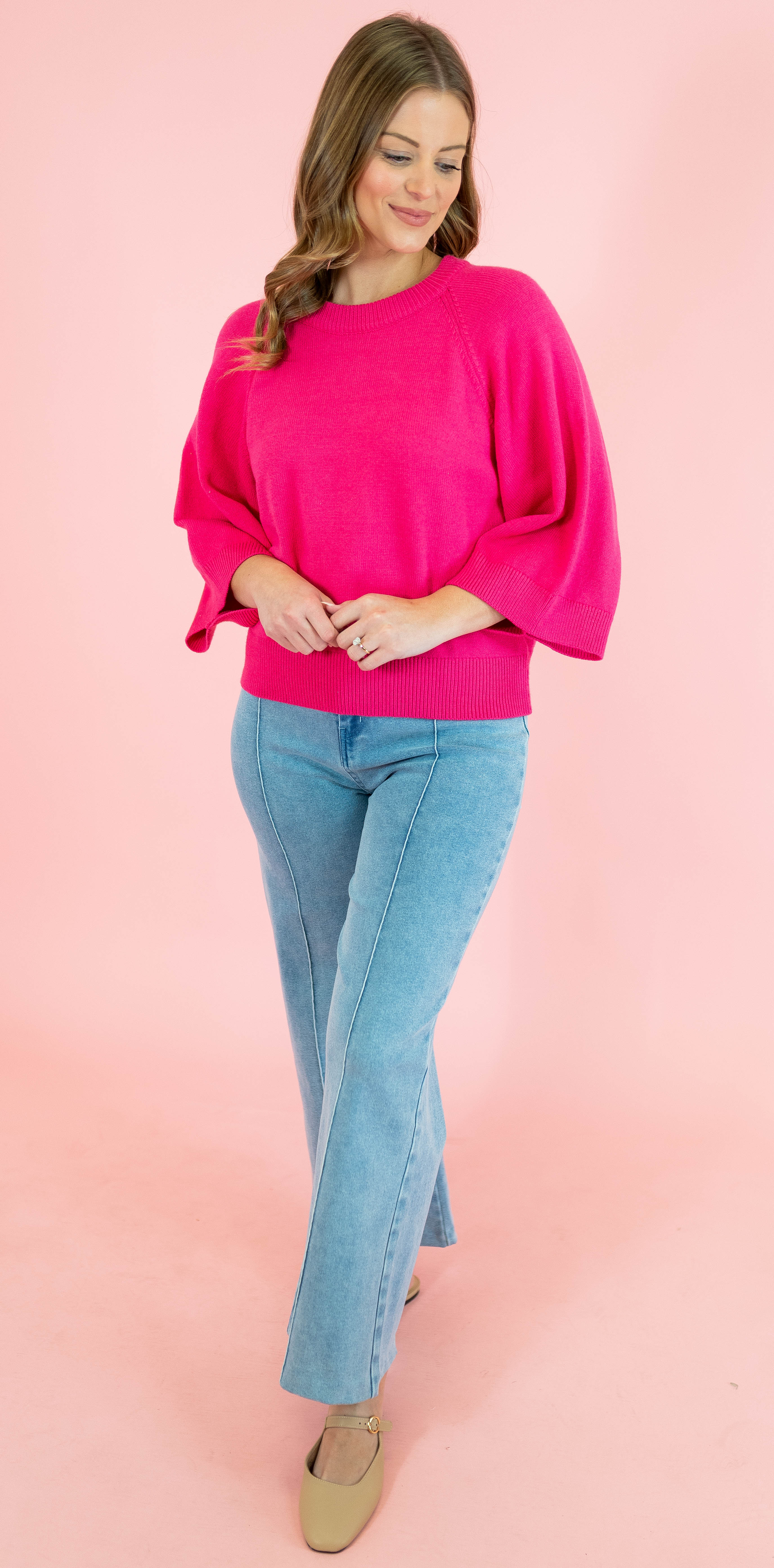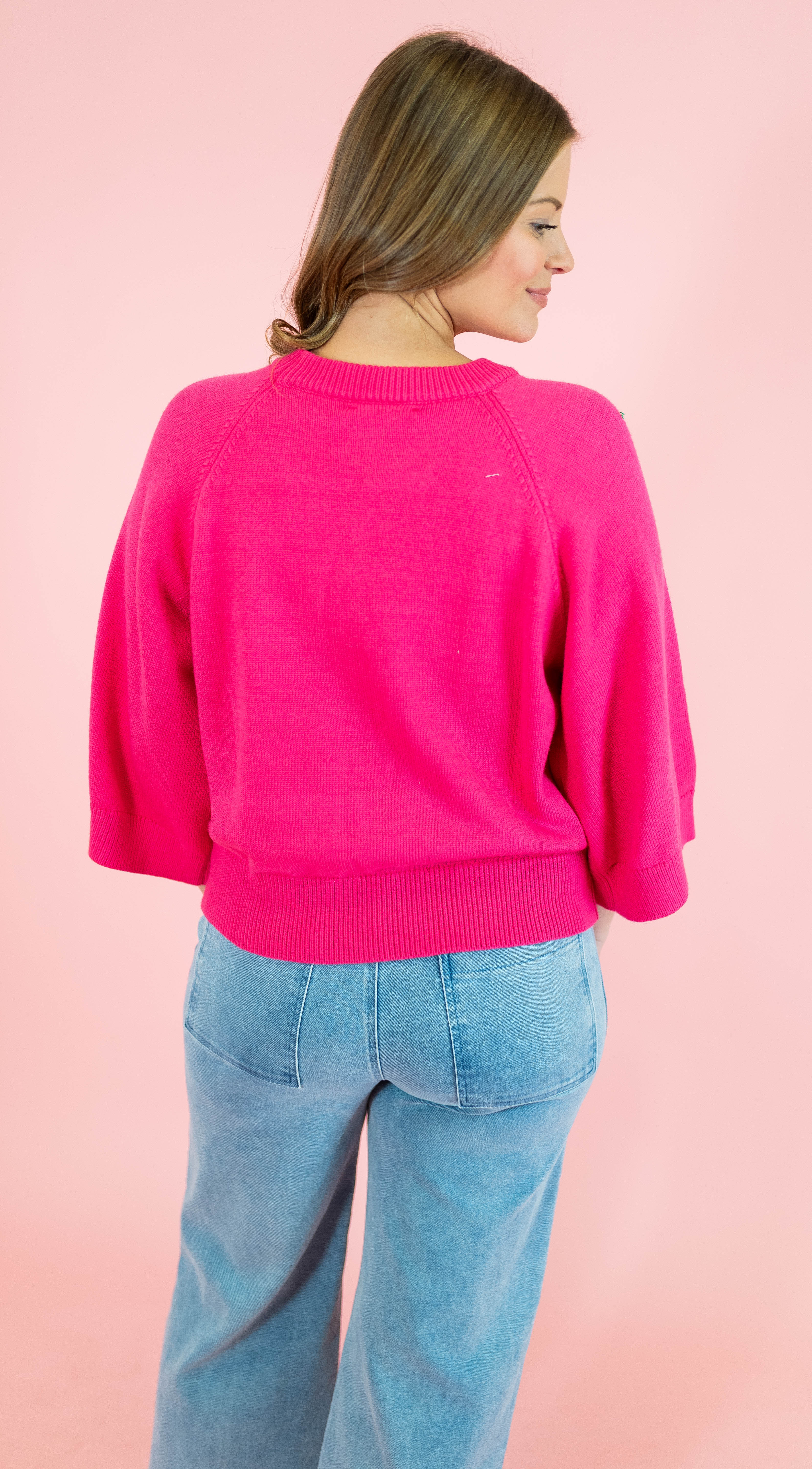 Elevate your casual wardrobe with this effortlessly chic raglan sweater! The relaxed 3/4 sleeves strike the perfect balance between cozy and put-together, while the classic solid construction pairs seamlessly with everything in your closet. Available in soft light blue and fuchsia pink, this versatile piece is your new go-to. Whether you're running errands or meeting friends, you'll love how comfortable and stylish you feel.