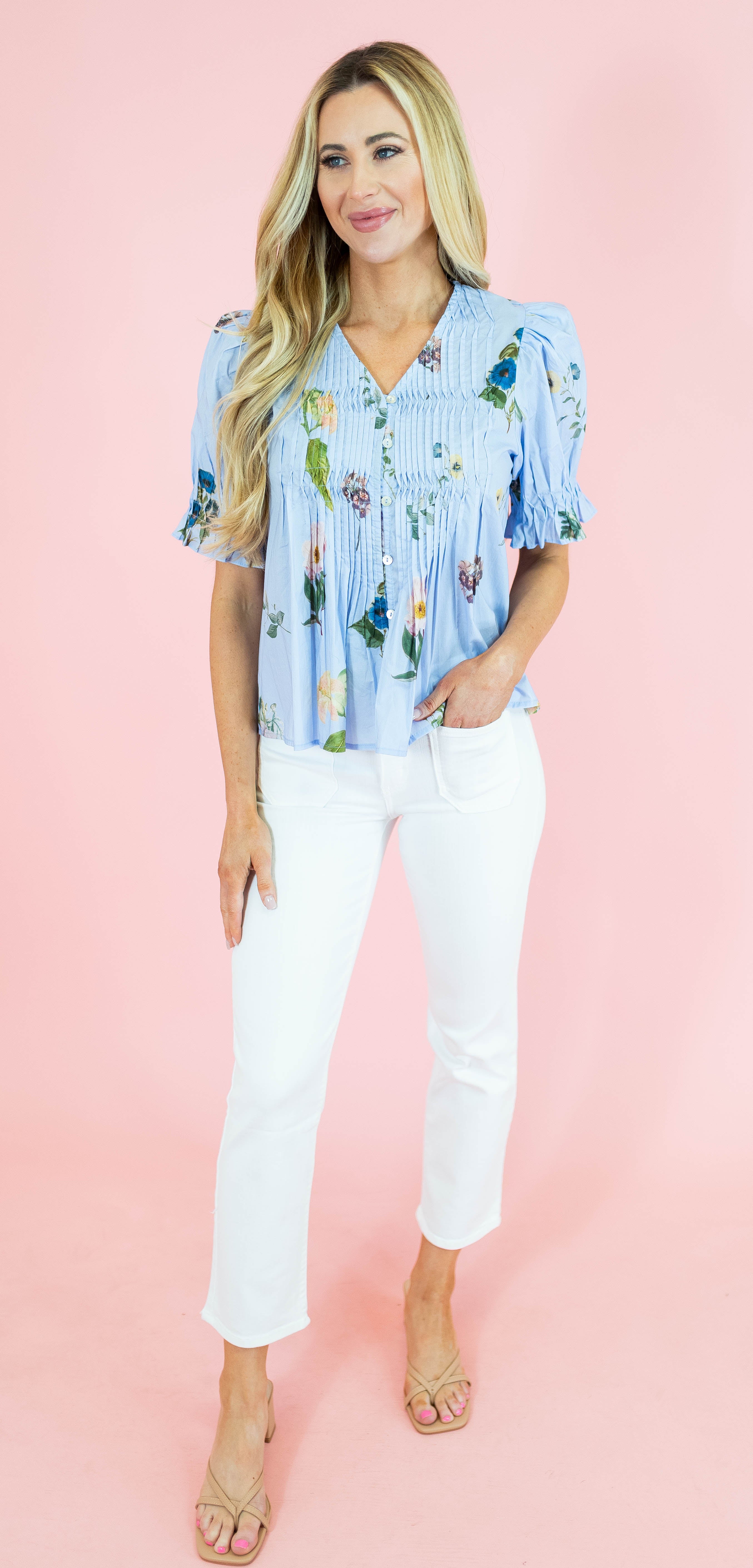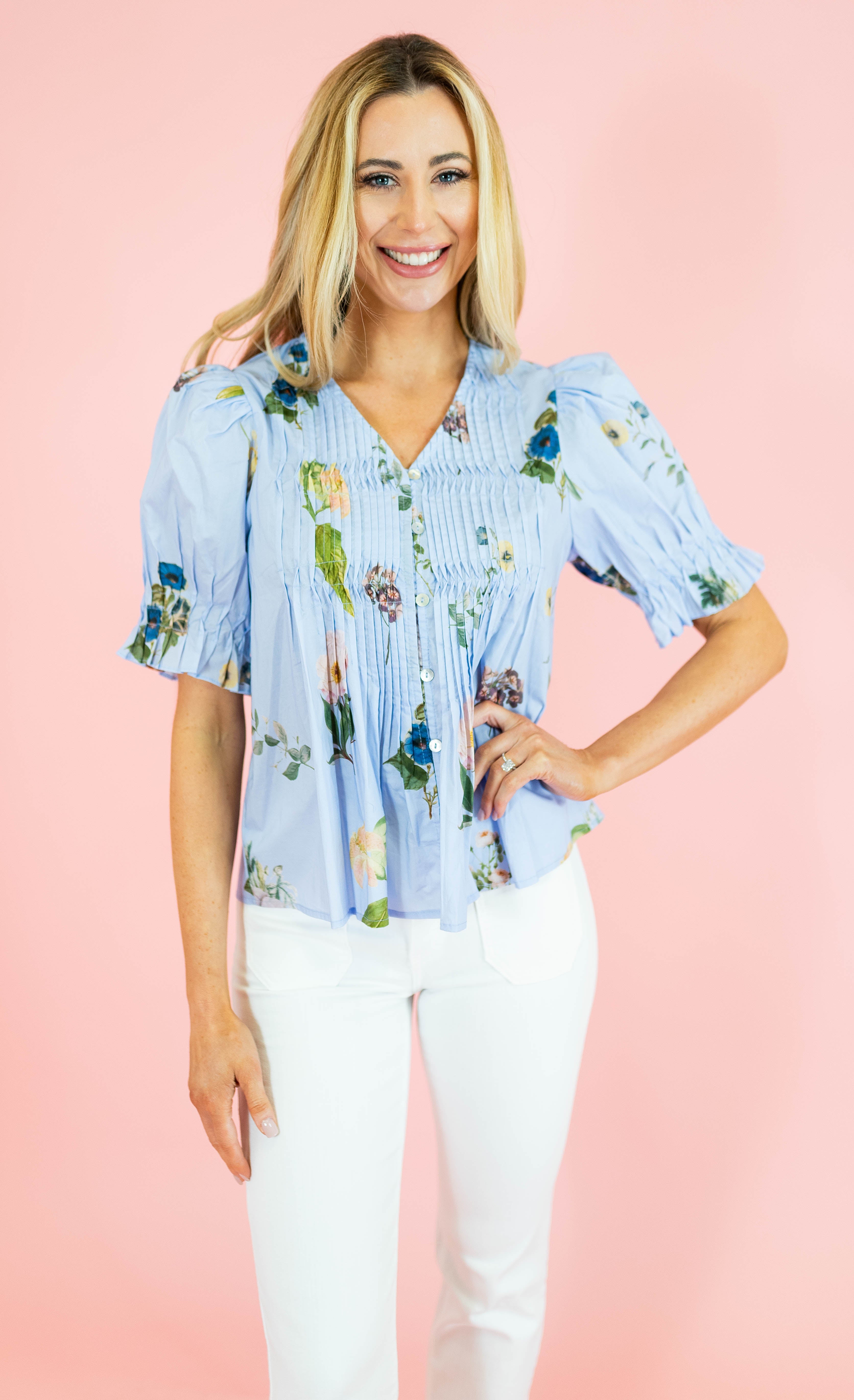 Twirl into spring with our Sweet Blossom Puff Sleeve Blouse! This charming top features romantic puff sleeves that add a touch of whimsy to any outfit. Available in soft blue and classic off-white, it's the perfect piece whether you're dressing up for brunch or keeping it casual.