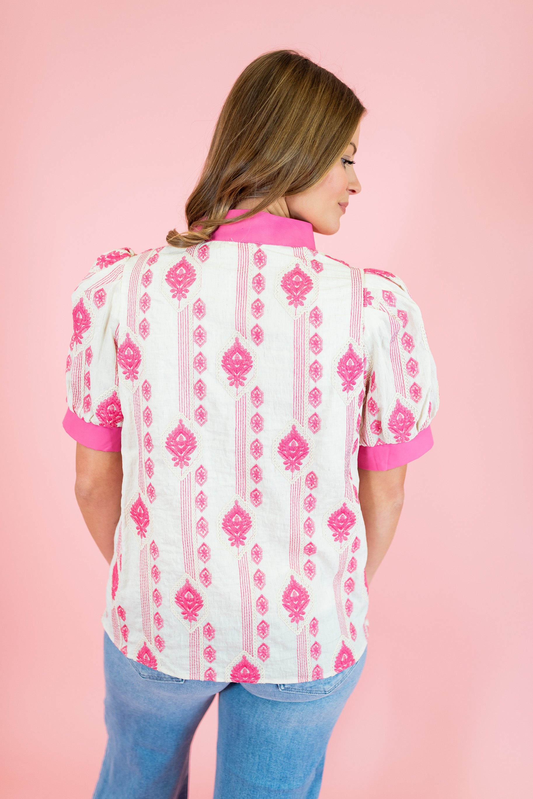 The Camille Stitch Detail Top is your new go-to for effortless style. Featuring charming stitch detailing that adds personality to every outfit, this versatile top transitions seamlessly from casual days to dressed-up evenings. Available in three gorgeous shades—crisp chambray, soft lavender, and pink—you'll want to collect them all.