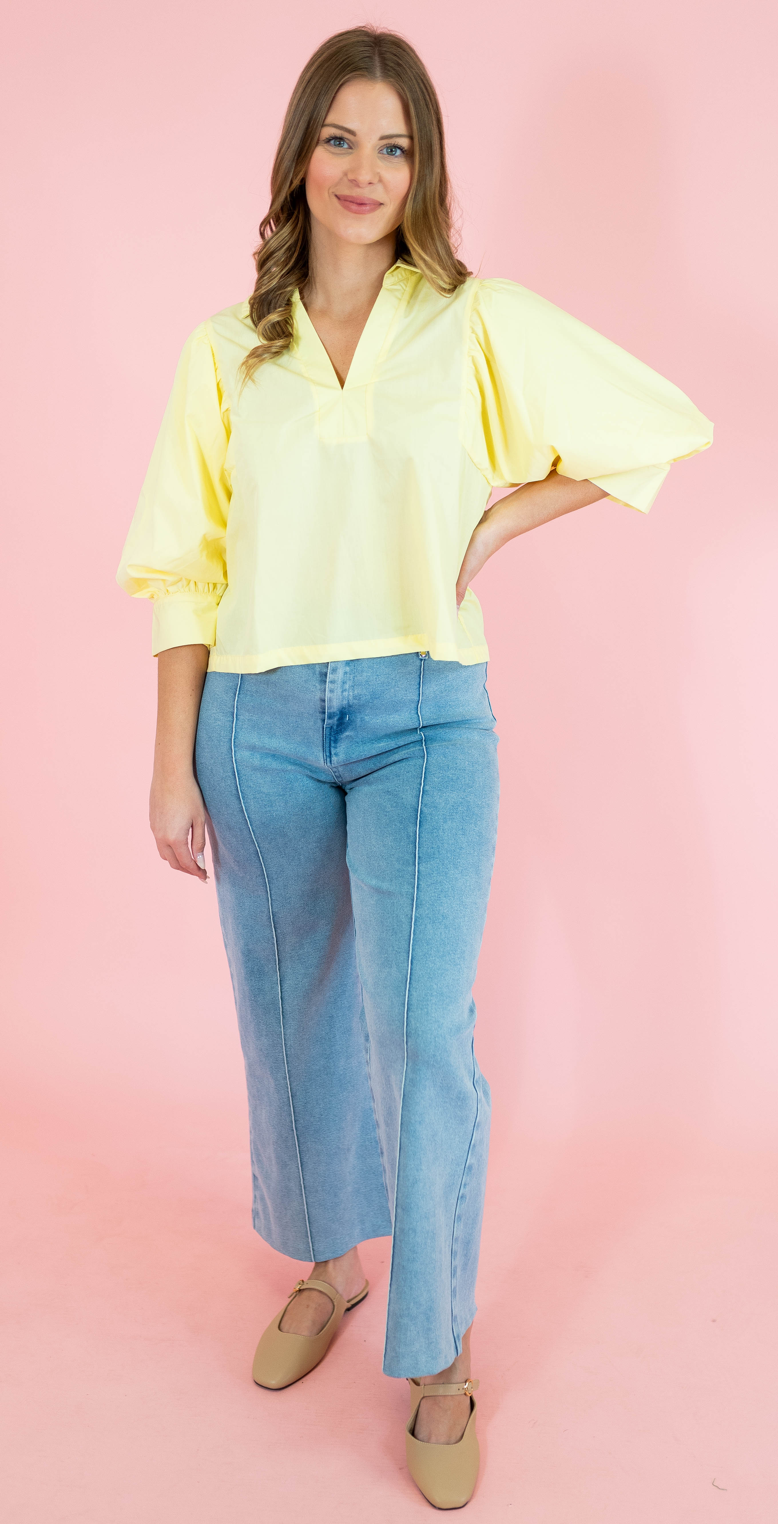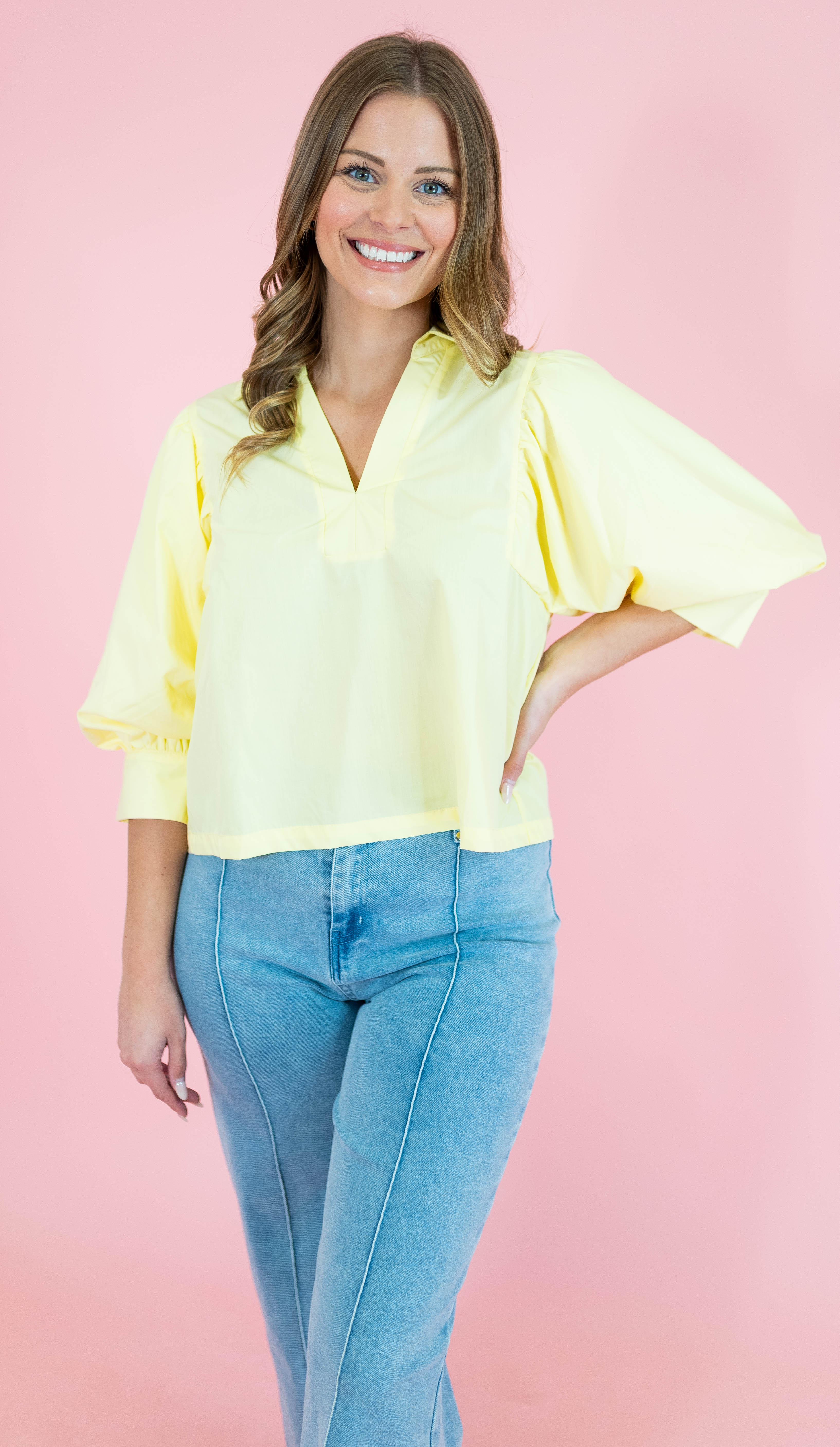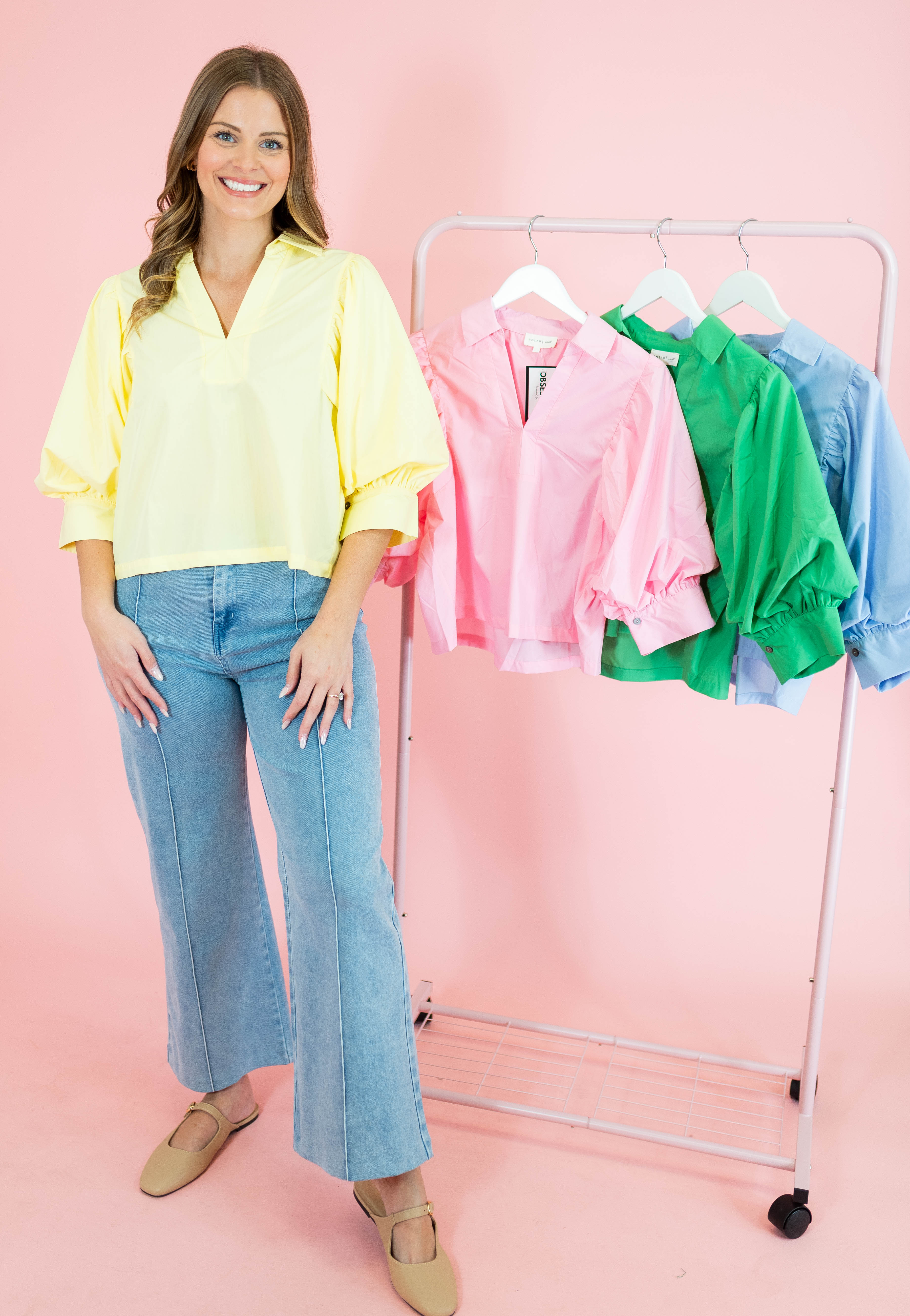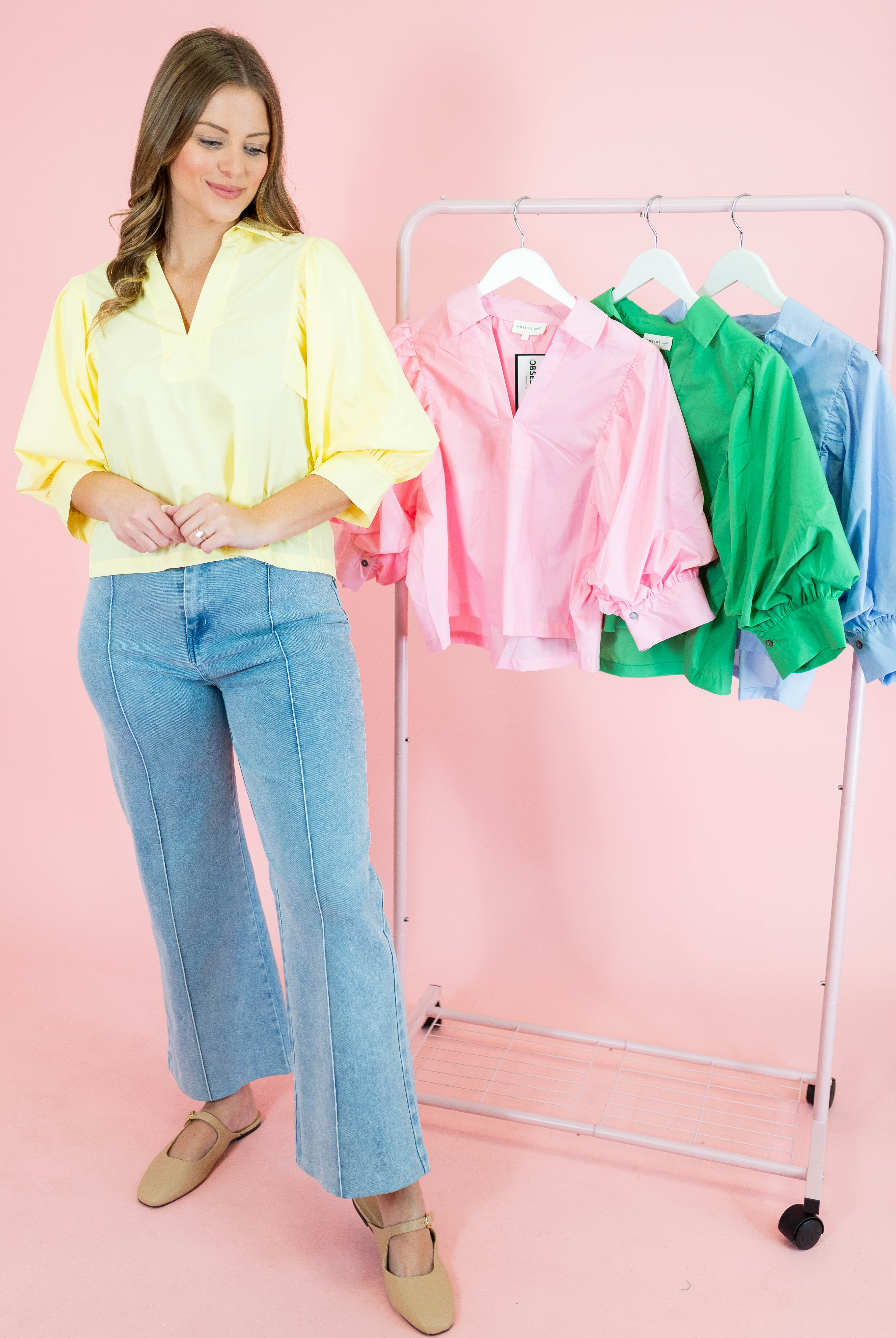 Elevate your everyday style with The Sutton Pleated Shoulder Top—a playful twist on classic sophistication. Featuring charming pleated shoulders that add dimension and movement, this versatile piece transitions seamlessly from office to weekend adventures. Choose from four cheerful hues: serene green, breezy light blue, soft light pink, or sunny yellow. Whether you're dressing it up with tailored trousers or keeping it casual with your favorite jeans, The Sutton brings a touch of whimsy and polish to any outfit.