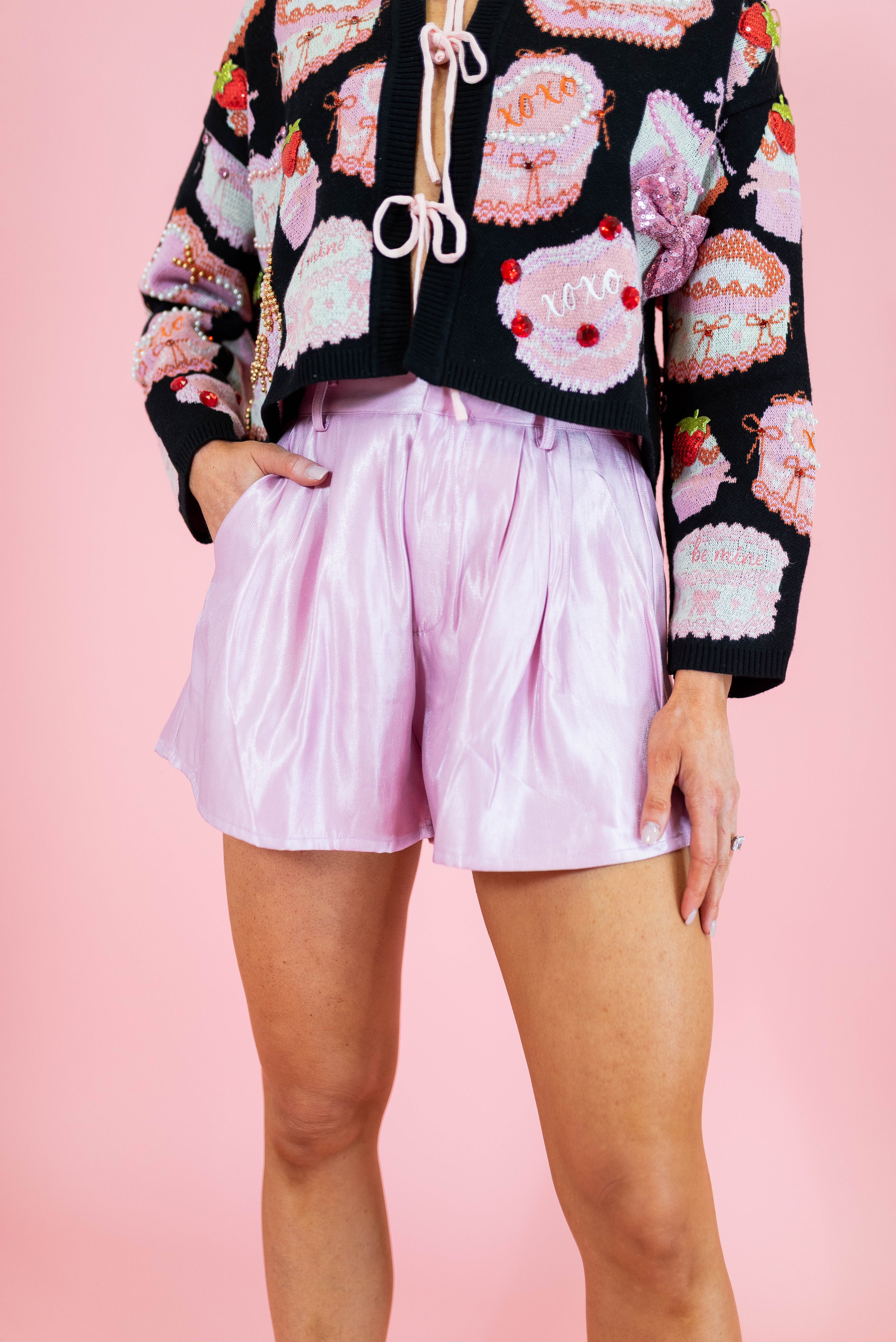 Make a bold impression with these luxe high-waisted shorts that deliver instant sophistication. The lustrous shiny finish commands attention while the precision pleating creates flattering vertical lines that elongate your frame. The romantic light pink shade complements all skin tones and pairs beautifully with neutrals or jewel tones. Invest in shorts that feel as premium as they look, offering endless styling possibilities for the modern woman who refuses to compromise on quality or style.