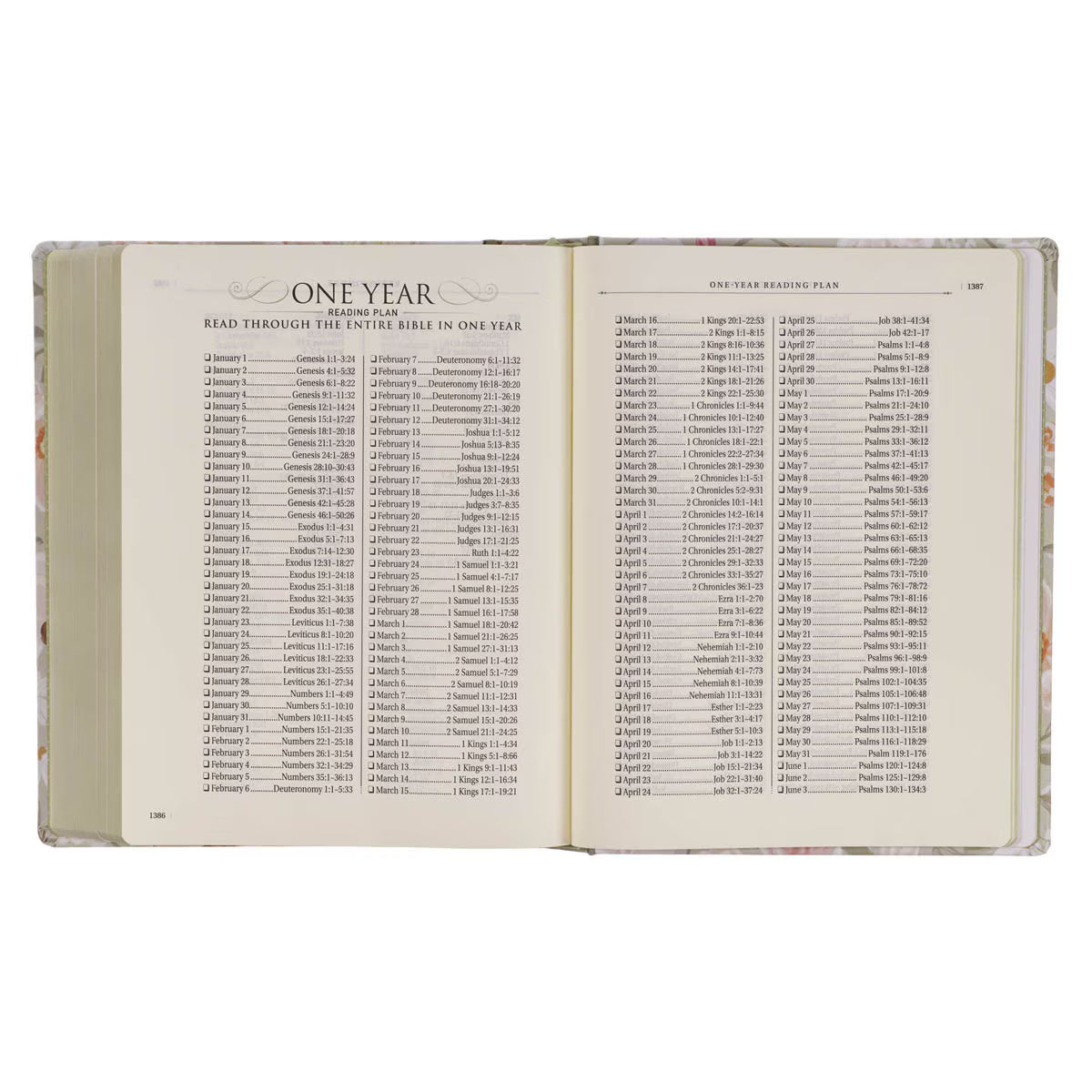 Seek God's will for your life daily with the included one-year Bible reading plan that is designed to keep you on track with daily readings. And, while you diligently study your Bible, make notes, lists, or even drawings in the 2.5-inch lined margins. Use the included thematic Scripture verse finder and concordance to delve into key topics and the 8 full-color maps to explore the biblical landscape of the Old and New Testaments. The Epistle Dedicatory Letter is included as a reminder of the enduring legacy of the translation of the King James Version.