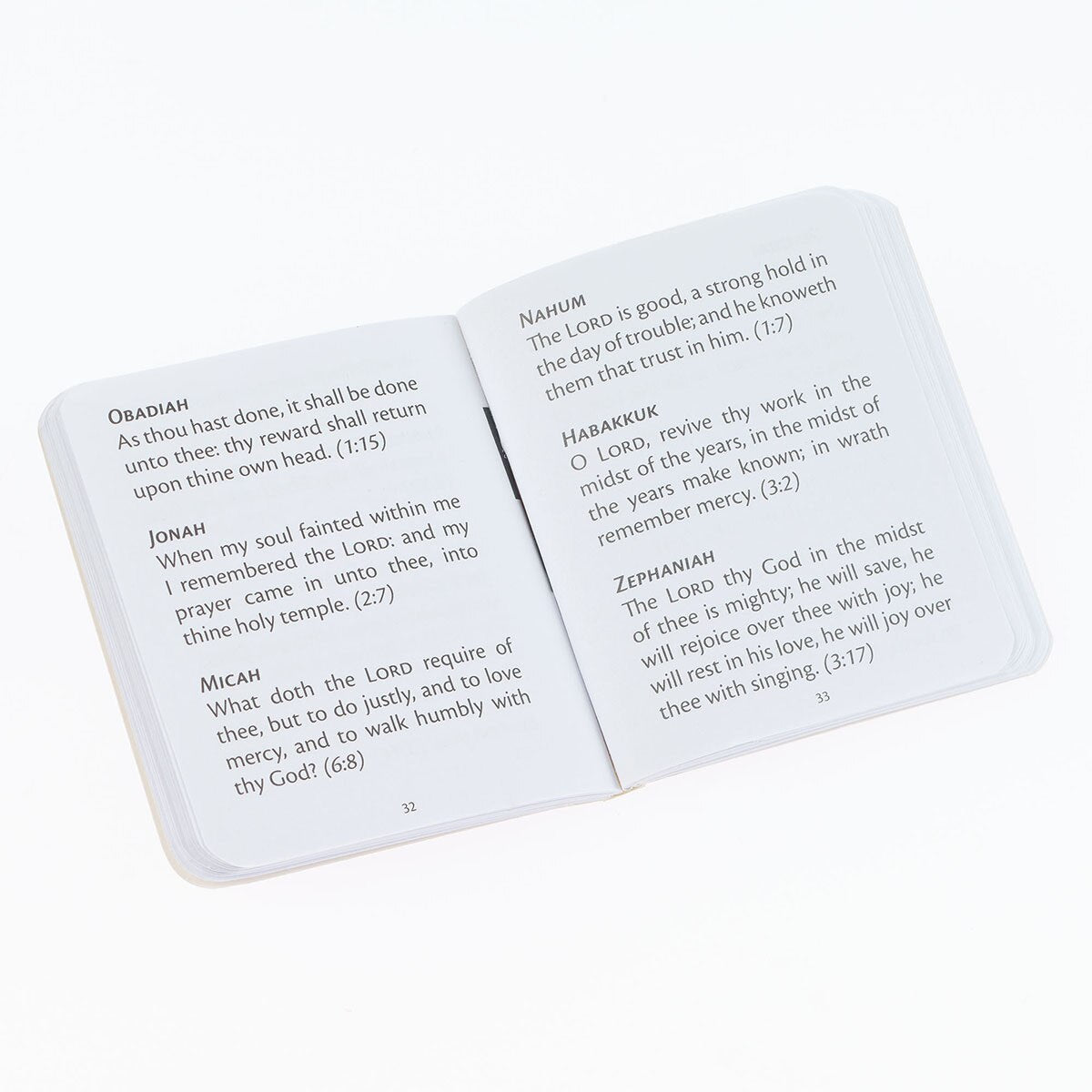 This compact booklet measures just 2" x 2" and is perfectly sized for tucking into a purse, wallet, or pocket. With its handpicked Scripture passages and a helpful topical index, you have the most important Bible verses for each book of the Bible at your fingertips. But that is not all; the back of the booklet has a section that reminds you of your identity in Christ.
