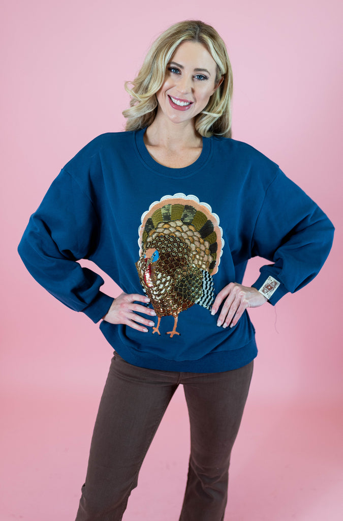 Queen Of Sparkles: Navy Big Turkey Sweatshirt