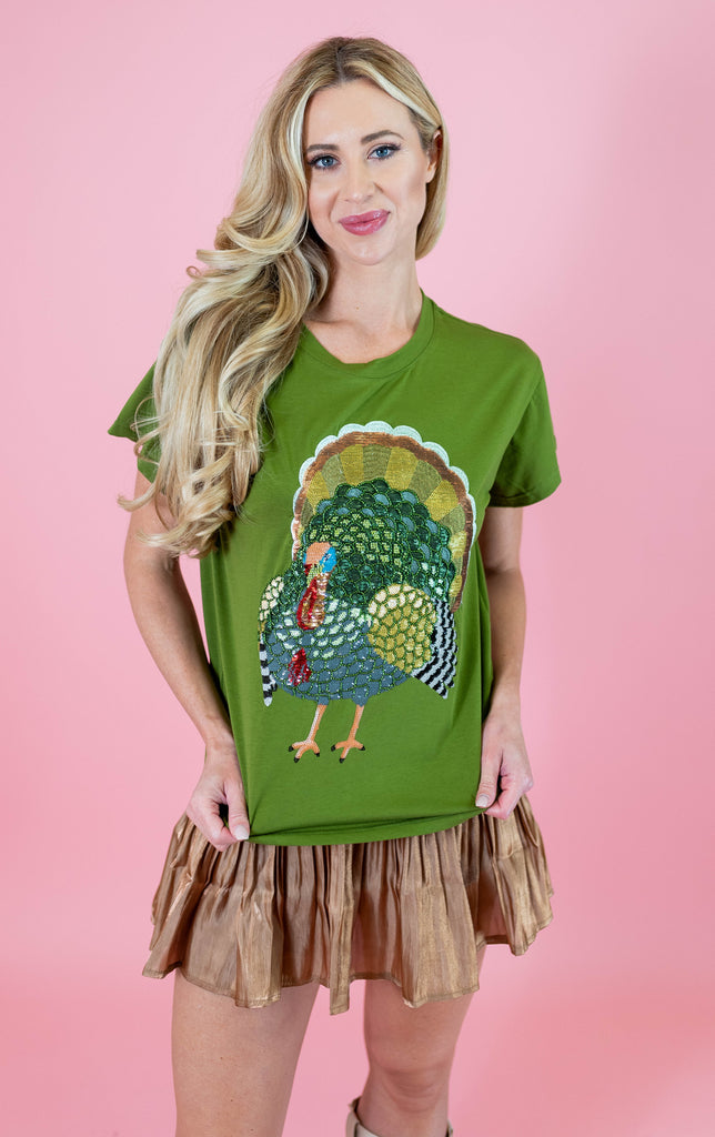 Queen Of Sparkles: Olive Green Big Turkey Tee
