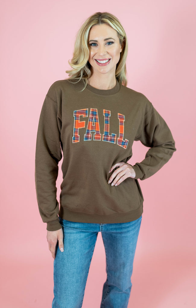 Queen Of Sparkles: Brown & Ivory Checkered Fall Icon Sweatshirt