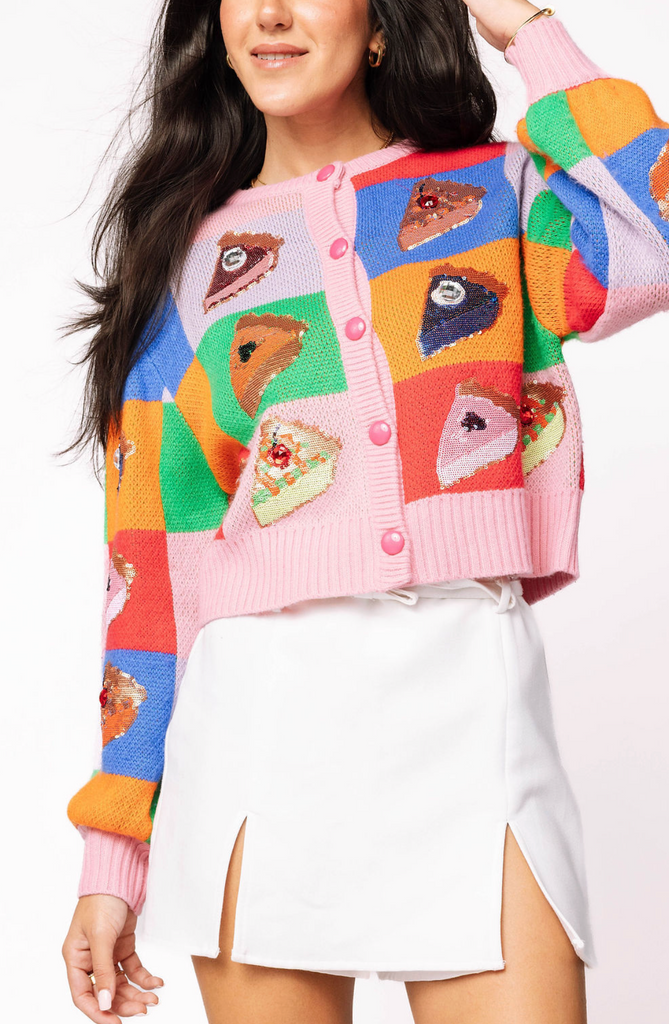 Queen Of Sparkles: Rainbow Piece of Pie Button Up Sweater