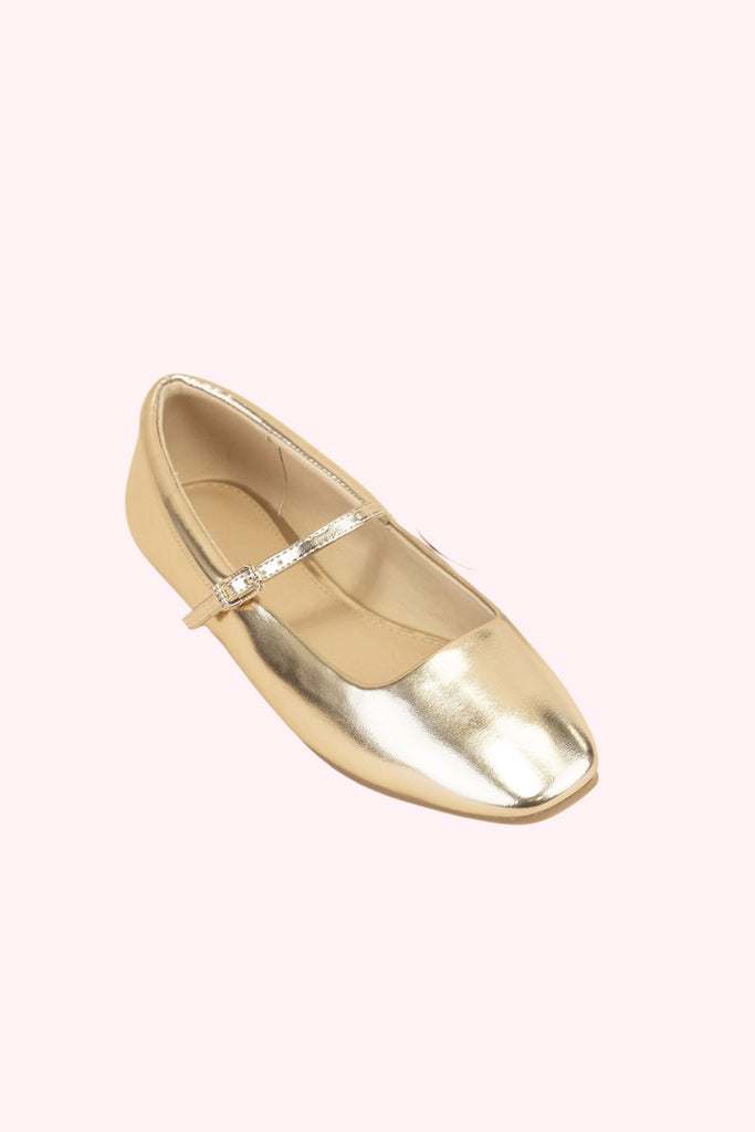 Fishnet Mesh Upper Round Toe Ballet Flat - Gold