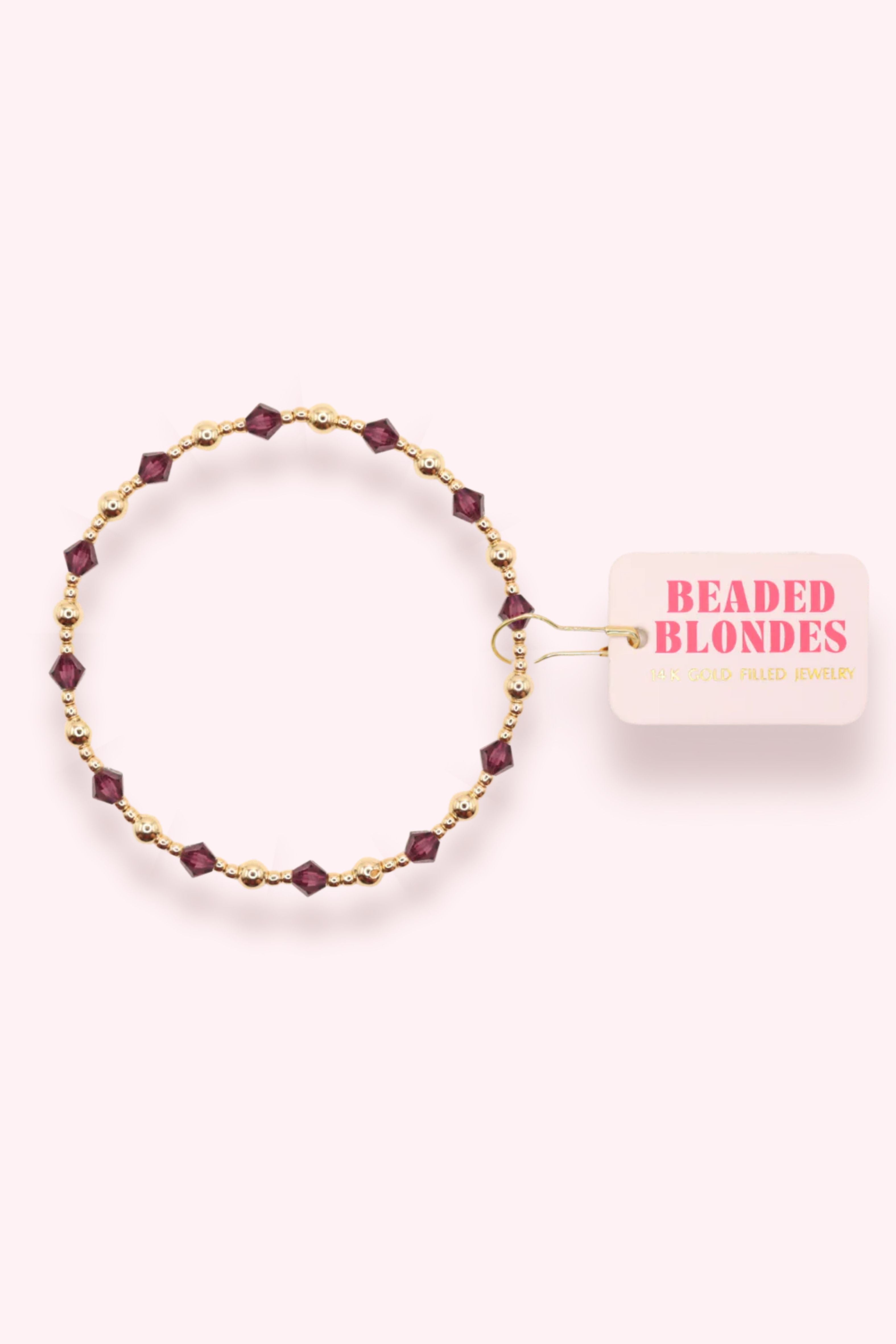 The June Swarovski Bracelet is a mix of 2MM & 4MM gold beads + swarovski beads.