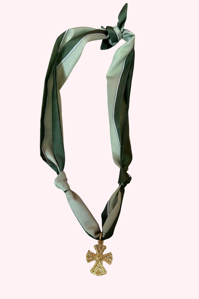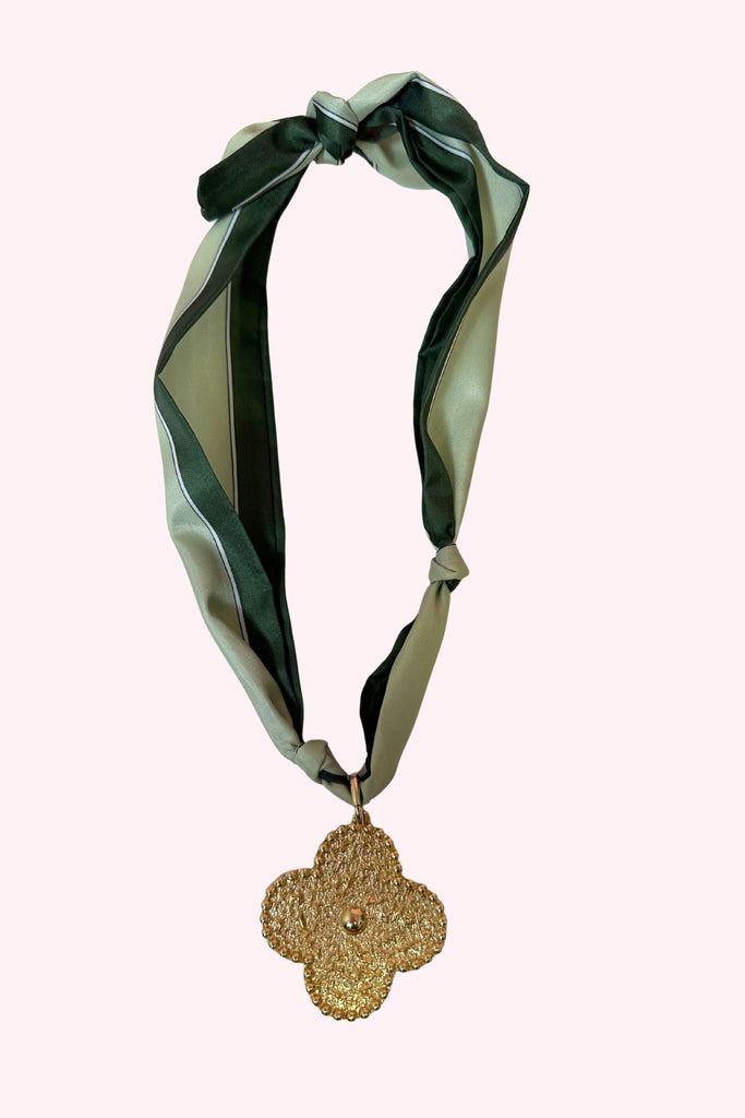 Elevate your game day style with the Two Tone Green Scarf Charm Necklace. This charming accessory pairs playful two-tone green hues with a delicate scarf charm, making it the perfect subtle statement to show your team spirit. Lightweight and versatile, it easily complements any outfit while adding a touch of fun and flair to your look. Perfect for fans who want to celebrate in style without going over the top.
