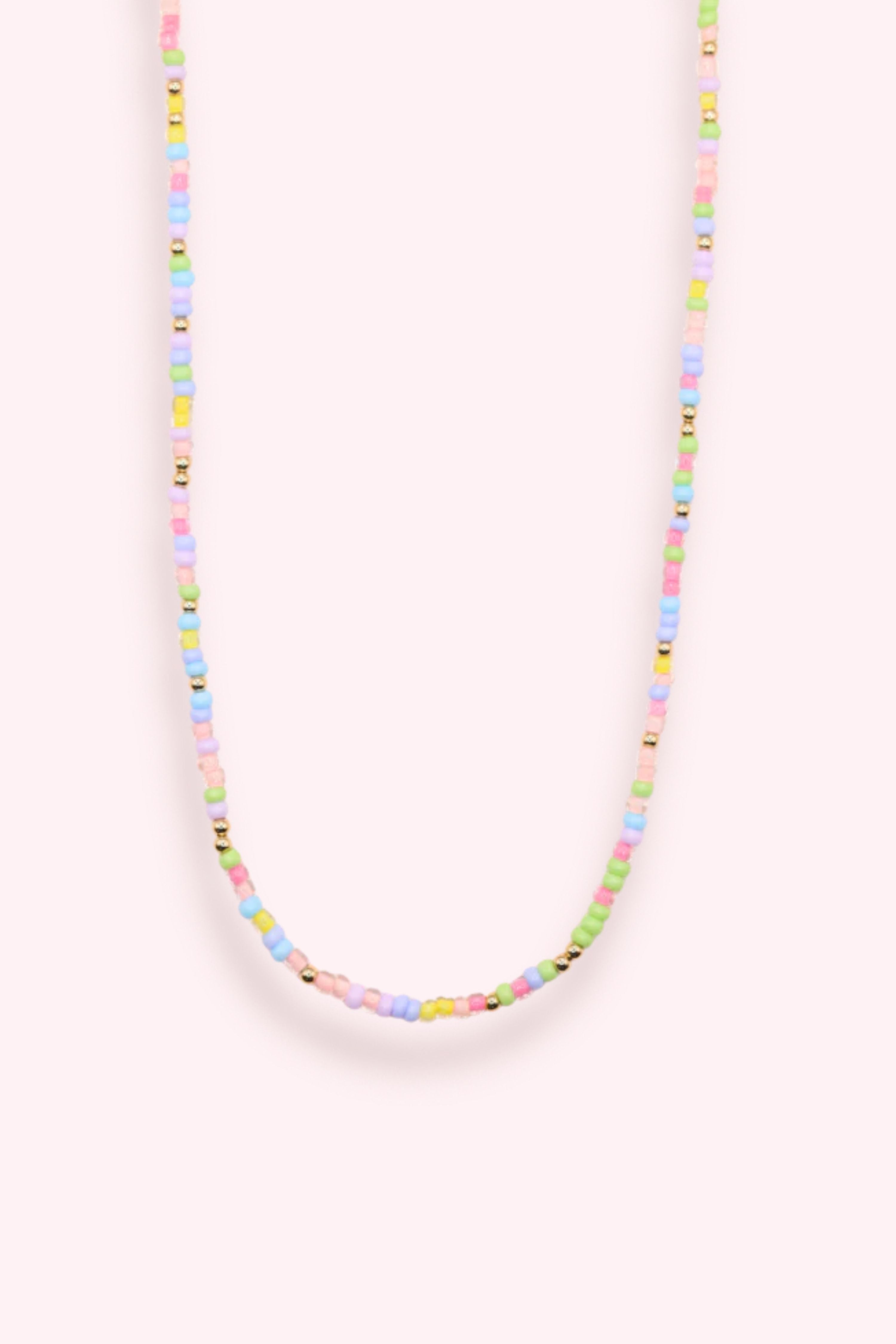 This spring sprinkle necklace is a mix of 2.5mm & multicolor czech glass beads. The pattern varies on each necklace making it unique. Stretch necklace with no clasp making it easy to slip on and off your necklace.
