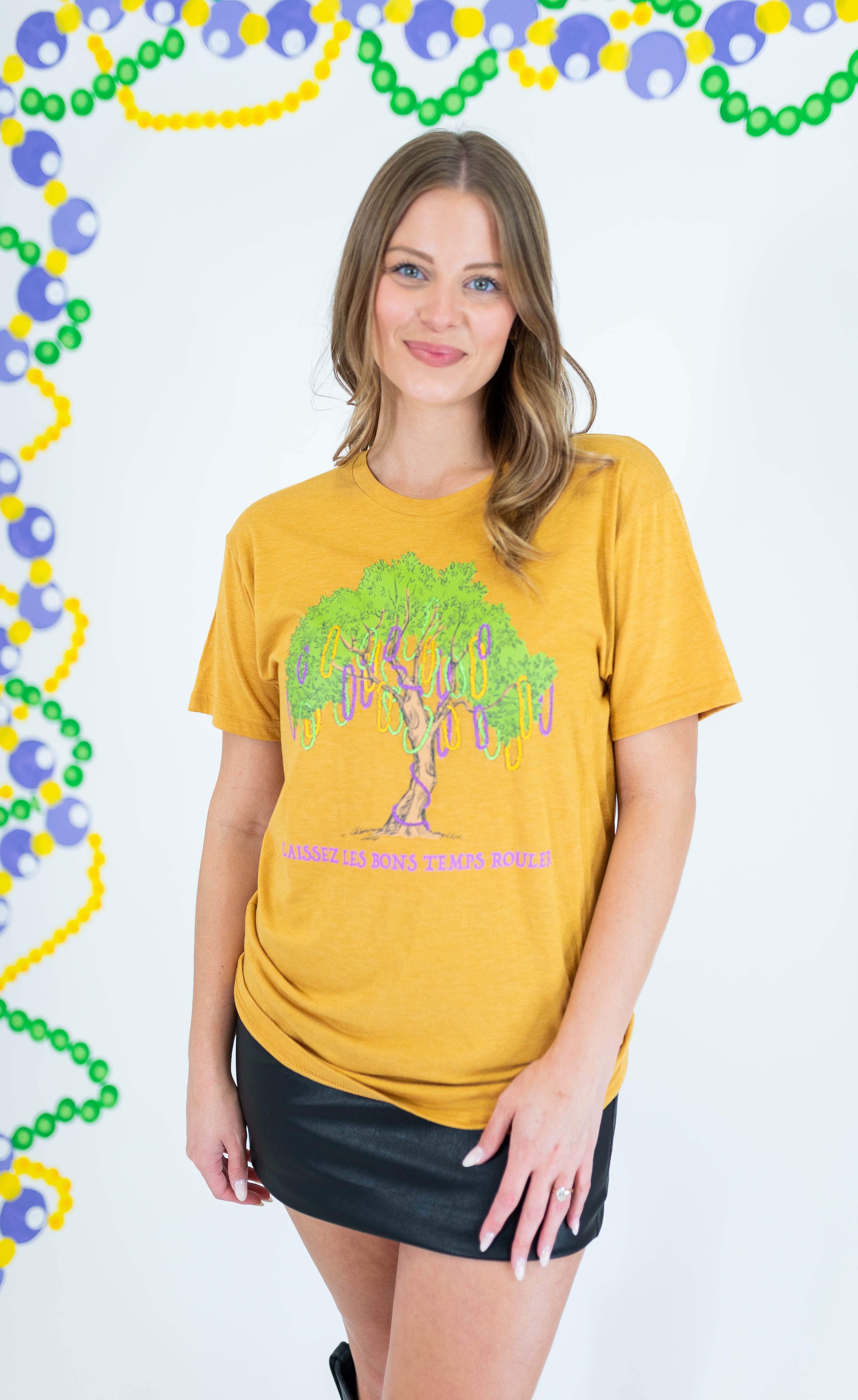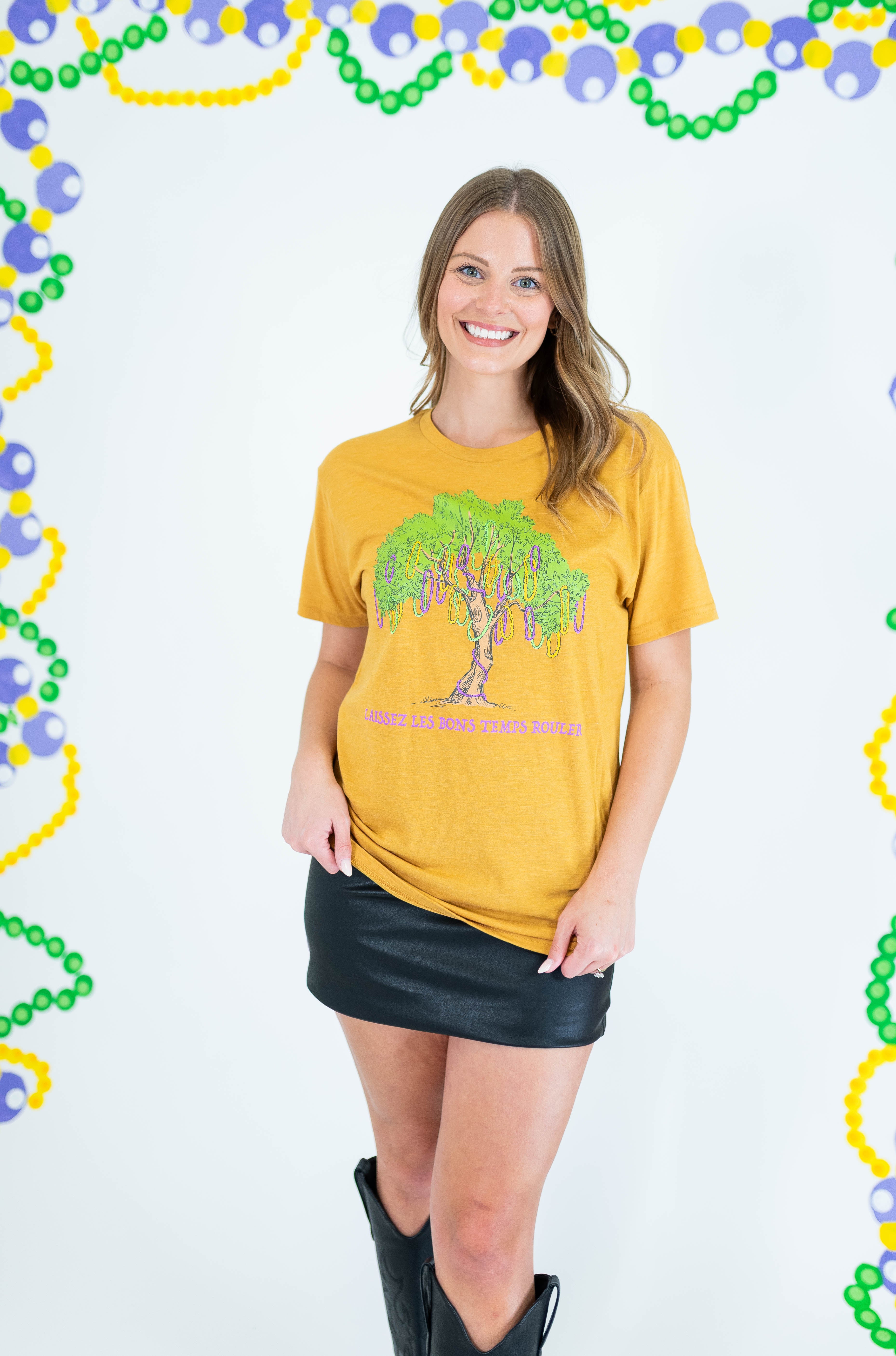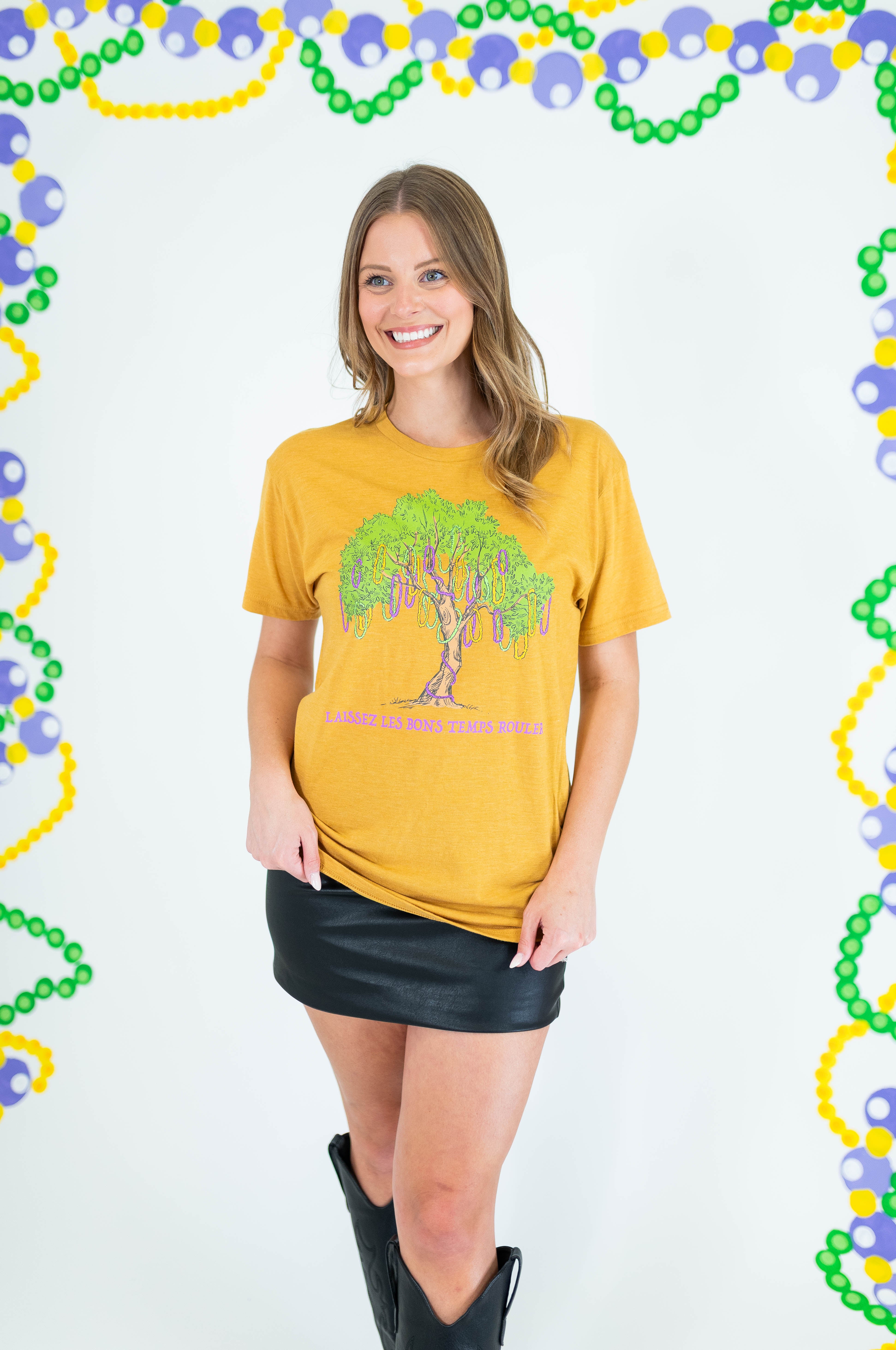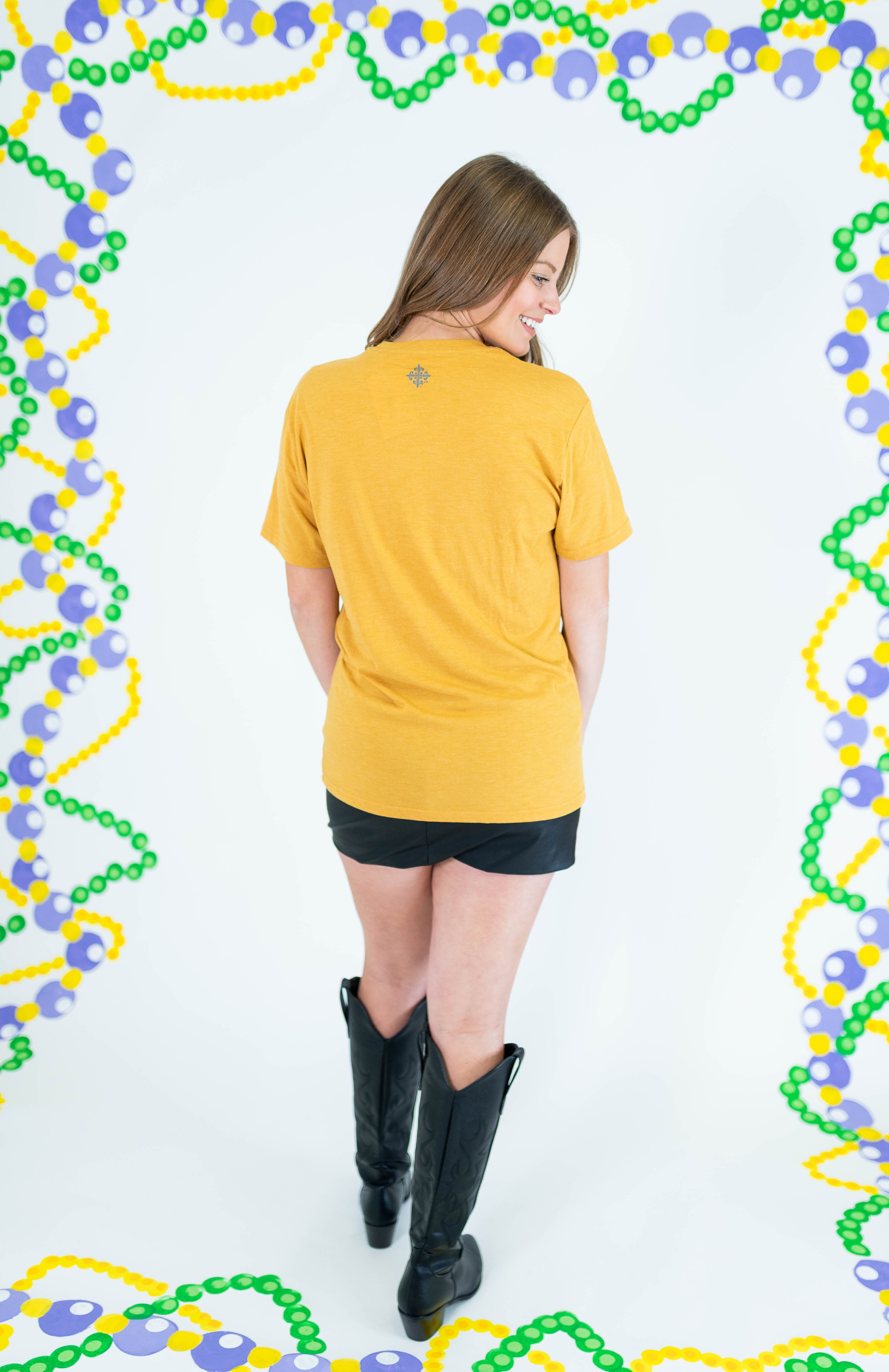 Celebrate the vibrant spirit of Mardi Gras with this eye-catching gold tee featuring an intricate bead tree design. Perfect for festival season or year-round wear, this shirt captures the festive energy and rich traditions of New Orleans in bold, colorful style. The comfortable fit and quality fabric make it ideal for parades, parties, or casual outings. Whether you're a Mardi Gras enthusiast or simply love standout graphic tees, this piece brings the magic of the season wherever you go. Make a statement and embrace the celebration.