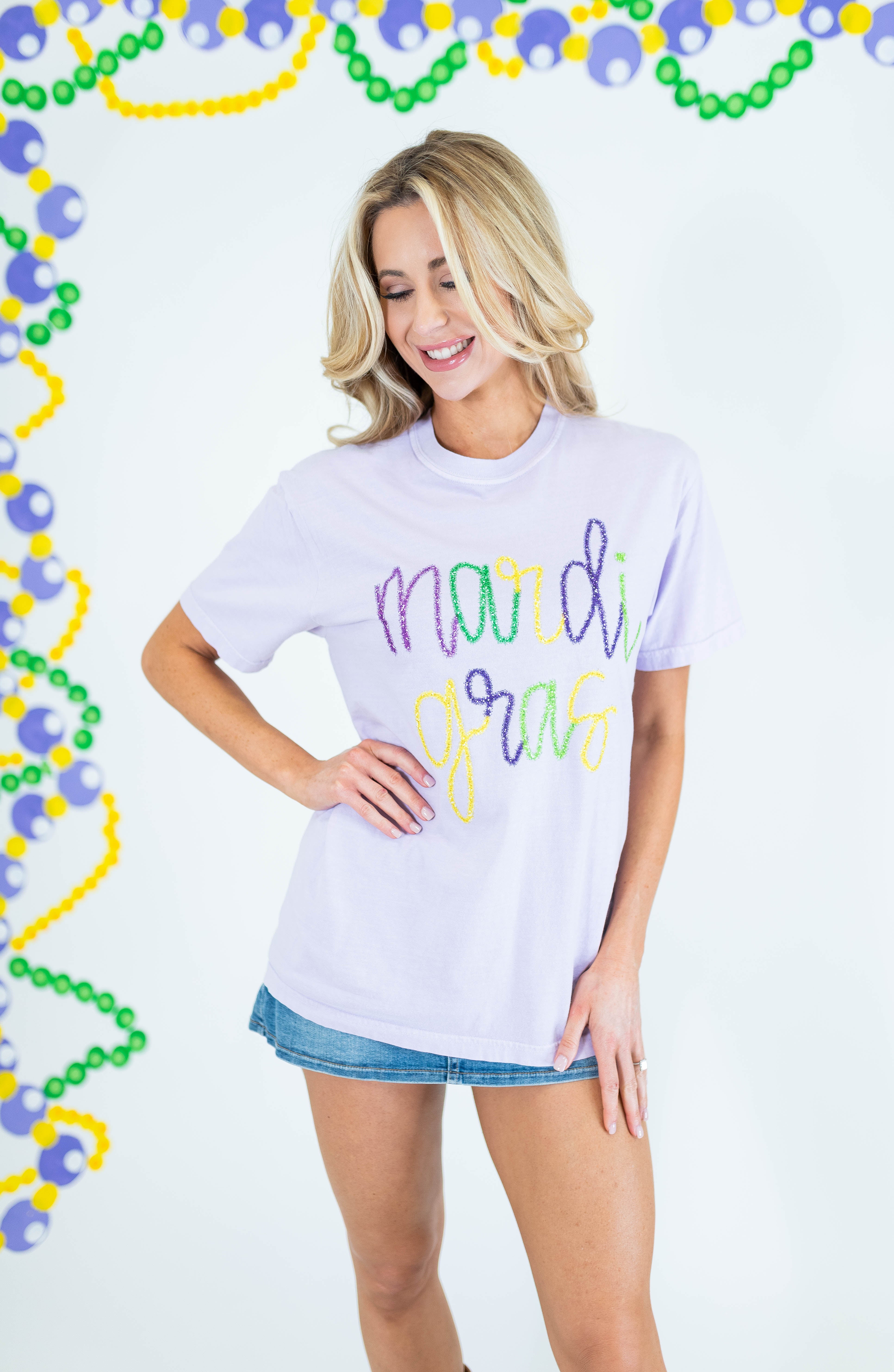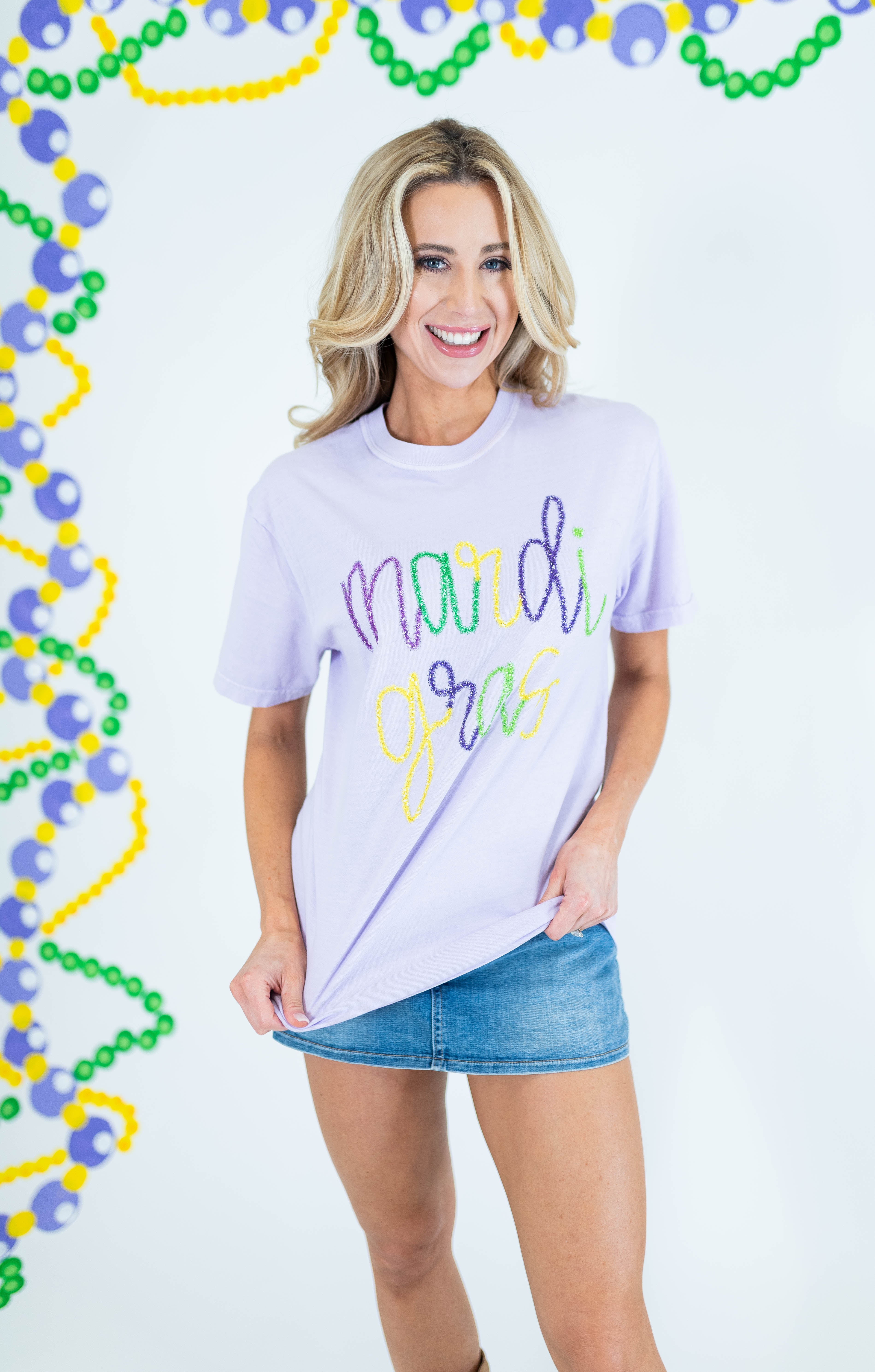 Mardi Gras Tinsel Glitter Tee - Orchid