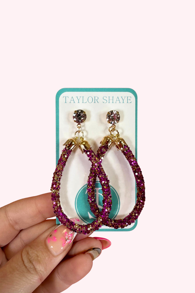 Taylor Shaye: Gameday Glitter Teardrop Earrings - Purple/Gold