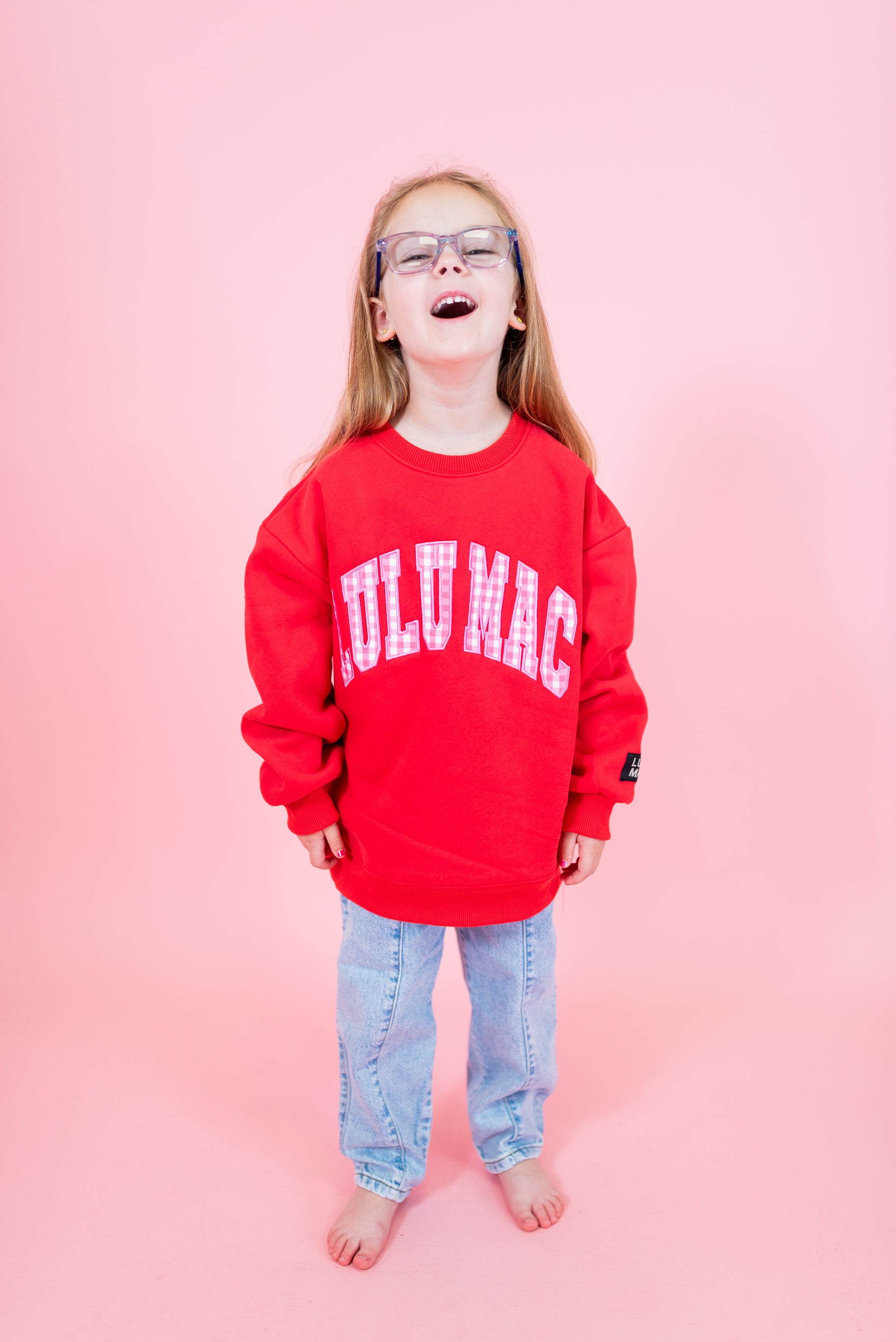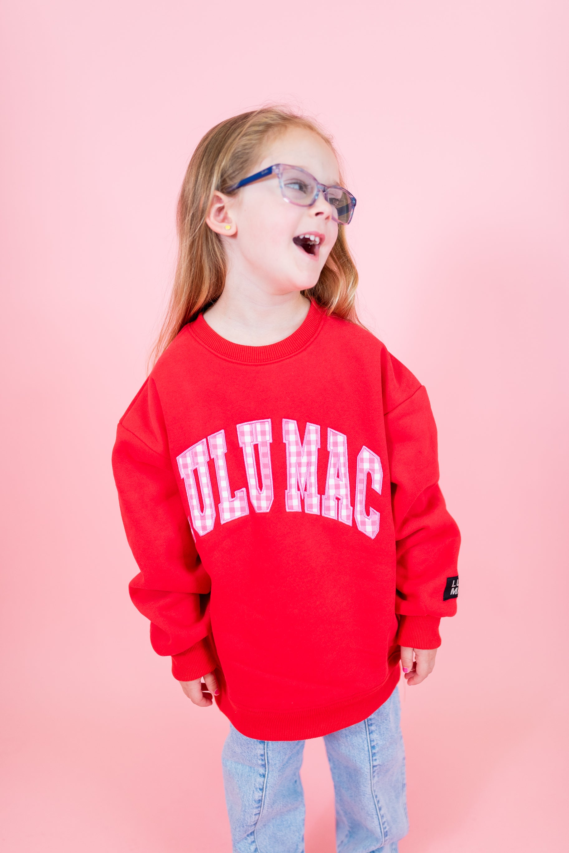 Lulu Mac: Kids Stitch Sweatshirt - Red w/ Pink Gingham