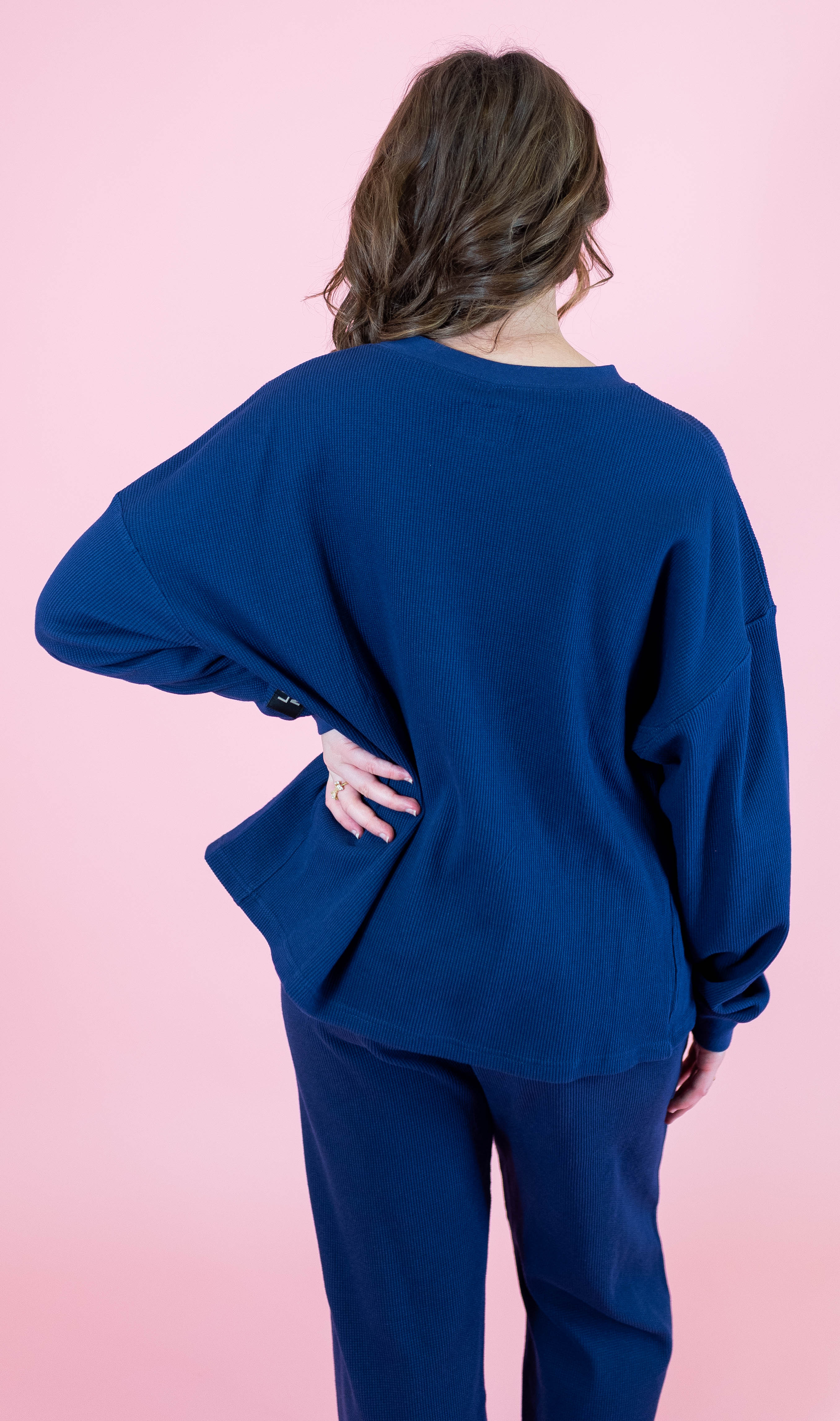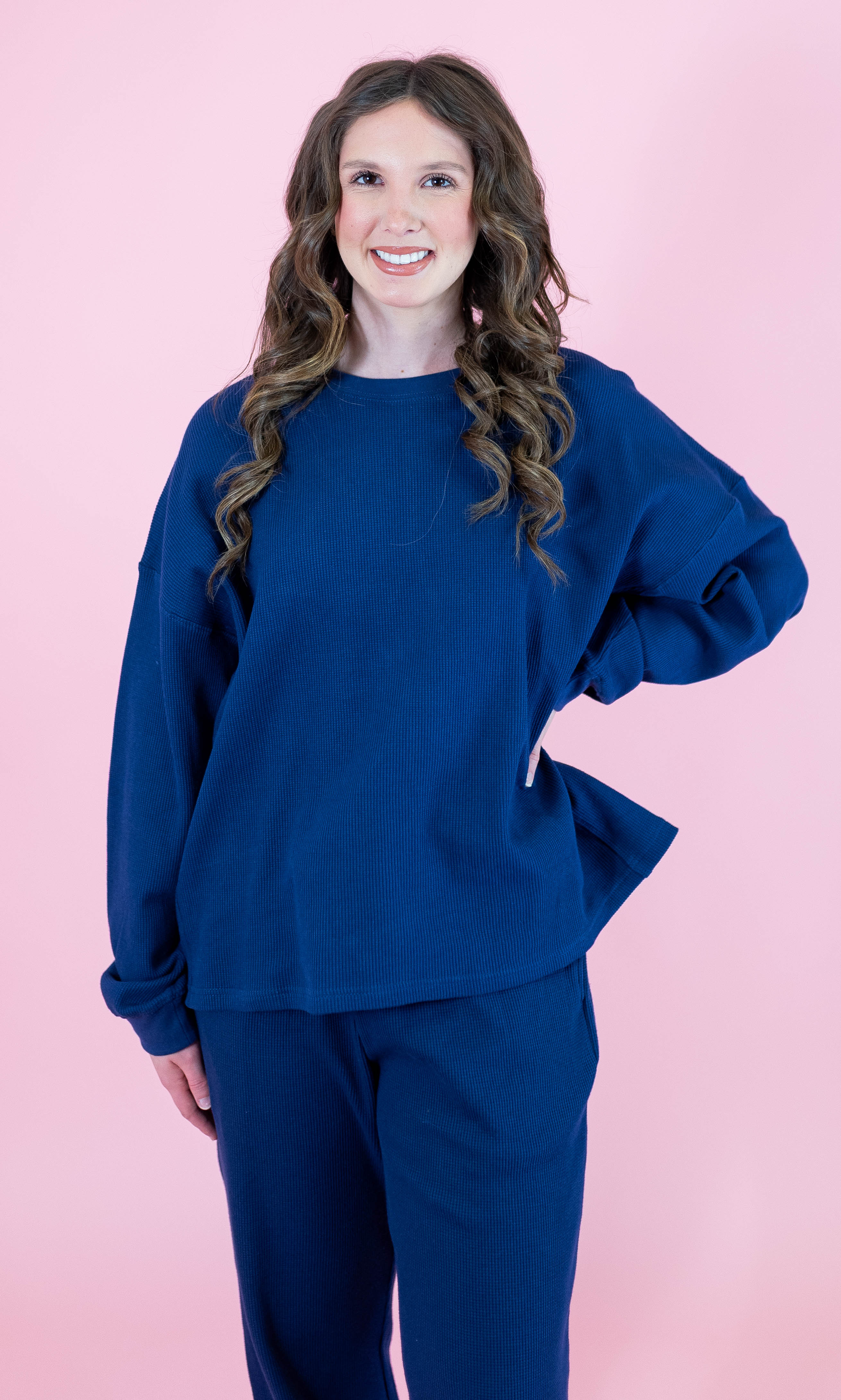 Stay cozy and cute in our Waffle Pop Collection Long Sleeve Top! Made from soft, breathable waffle knit fabric(95% Cotton and 5% Spandex), this relaxed, oversized fit is perfect for lounging, layering, or pairing with the matching pants for the ultimate comfy set. The easy slip-on style makes it effortless, while the timeless design keeps it chic and versatile.