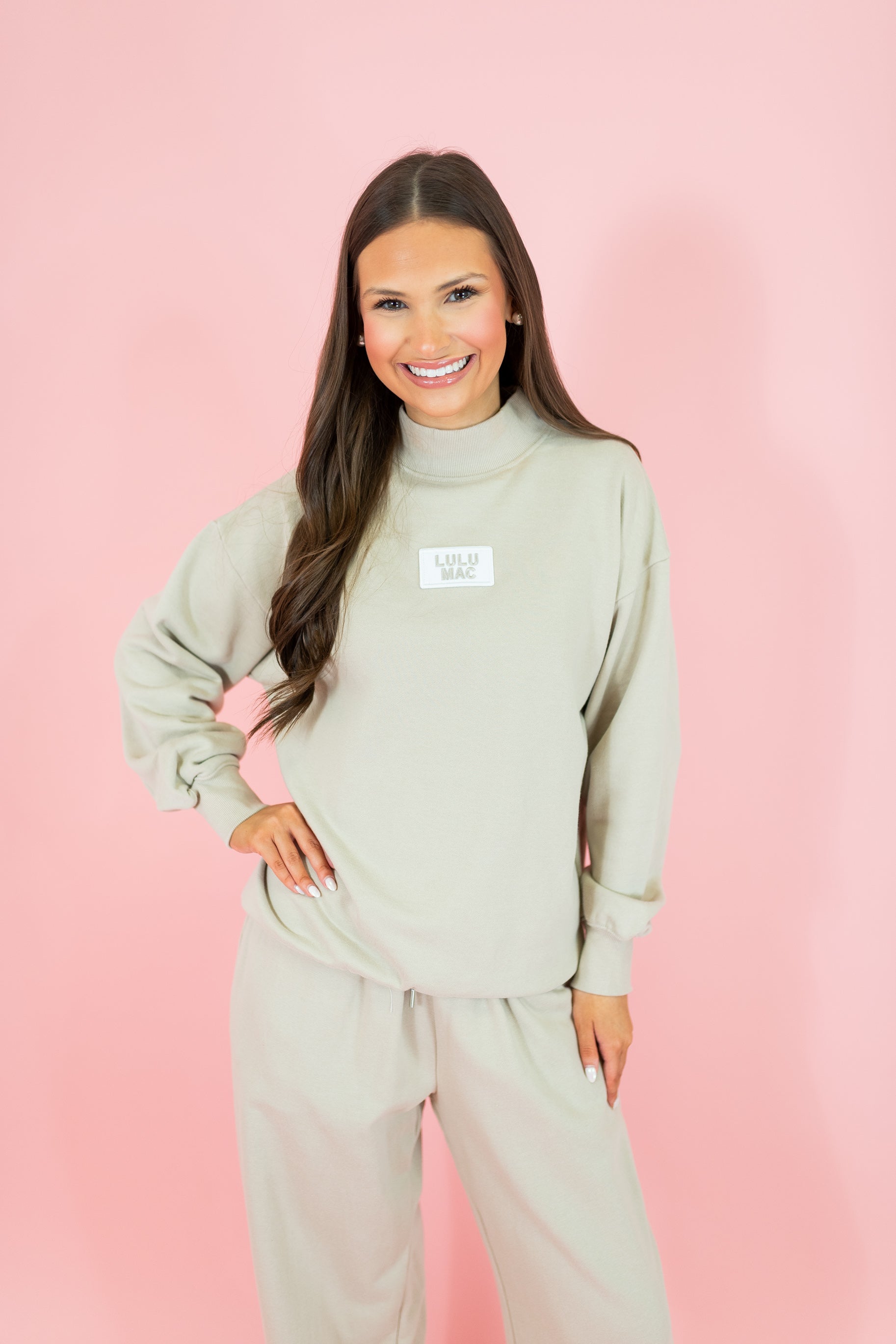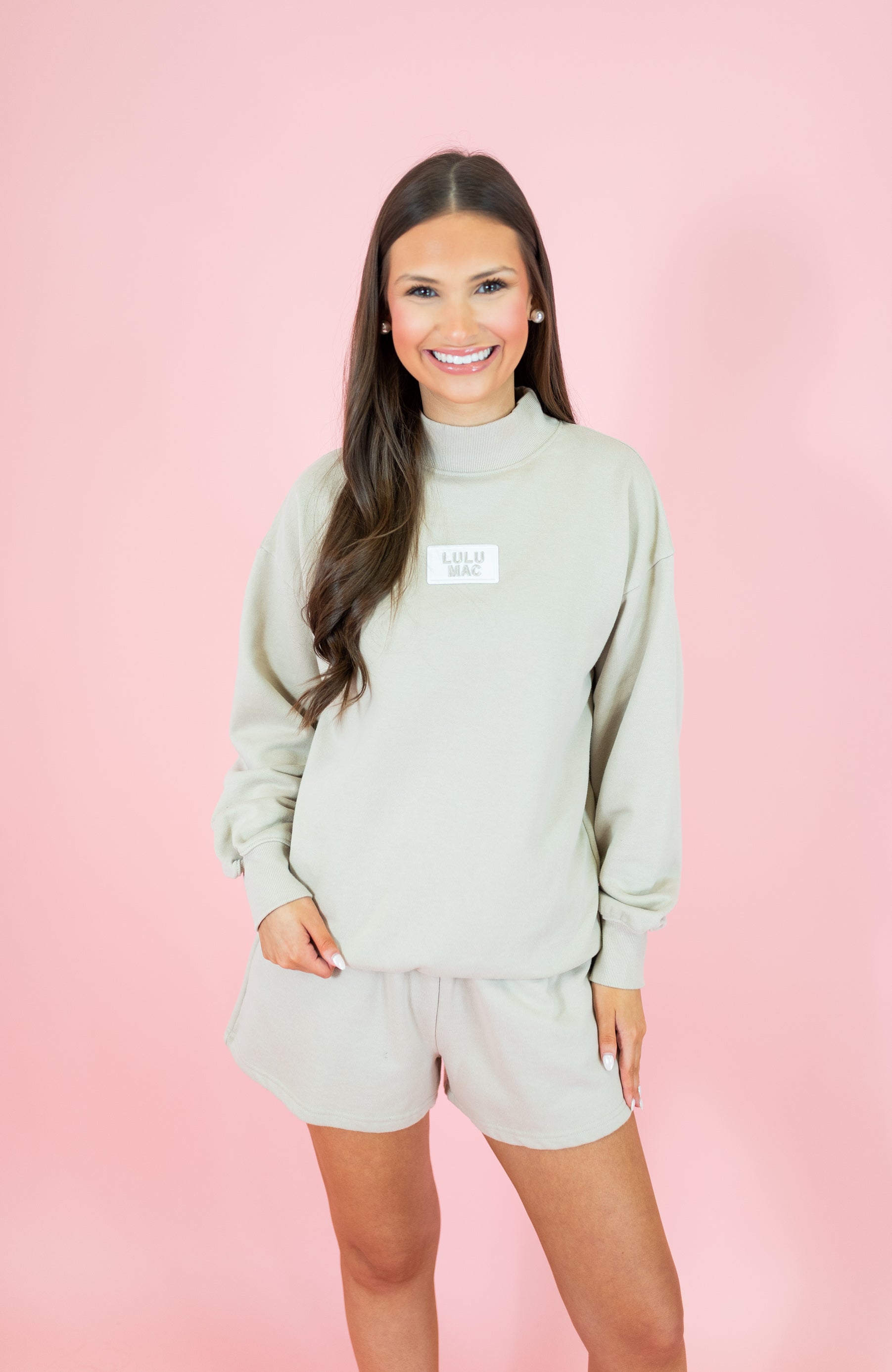 Lulu Mac: Mock Neck Terry Cloth Sweatshirt - Sand