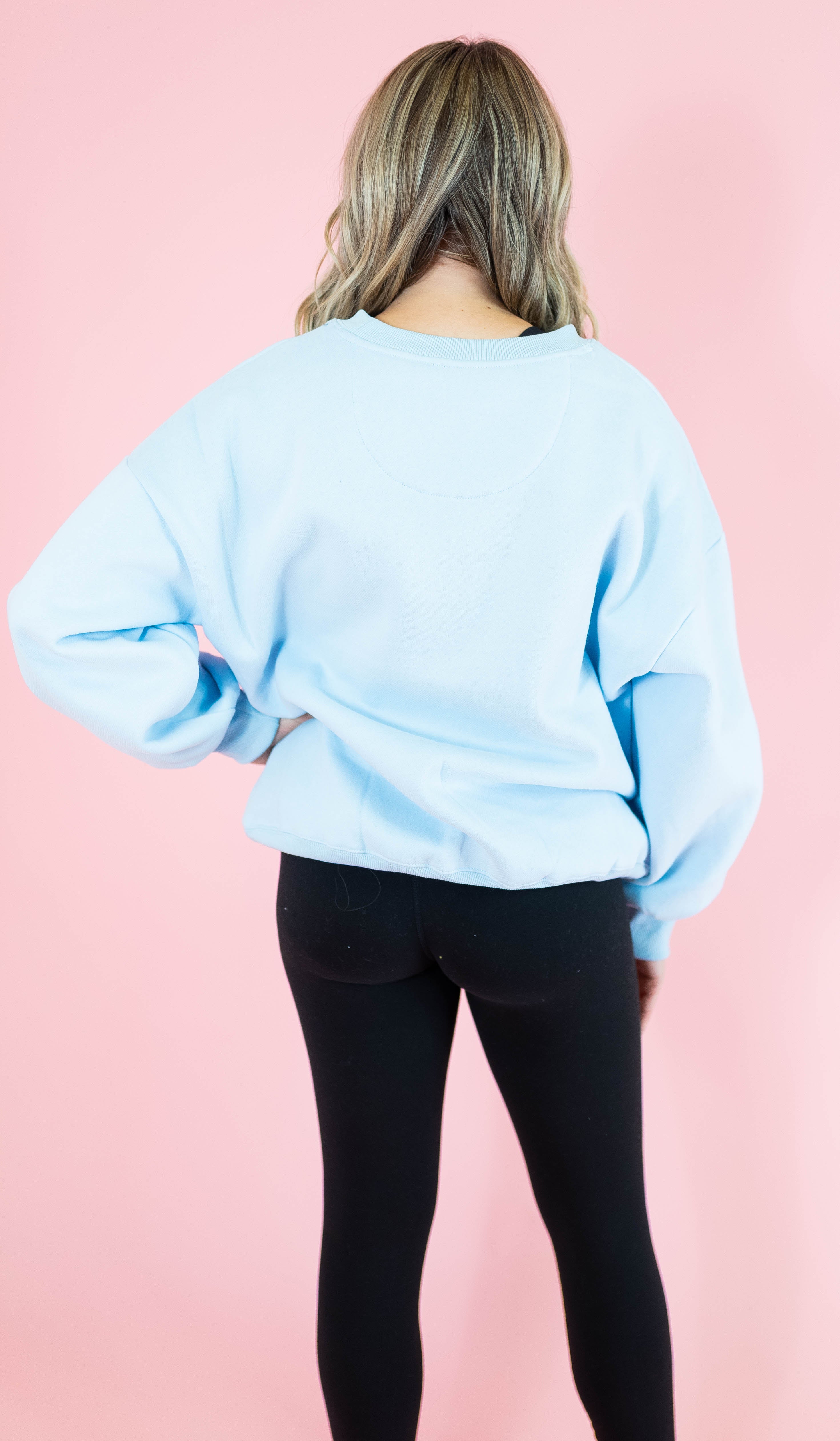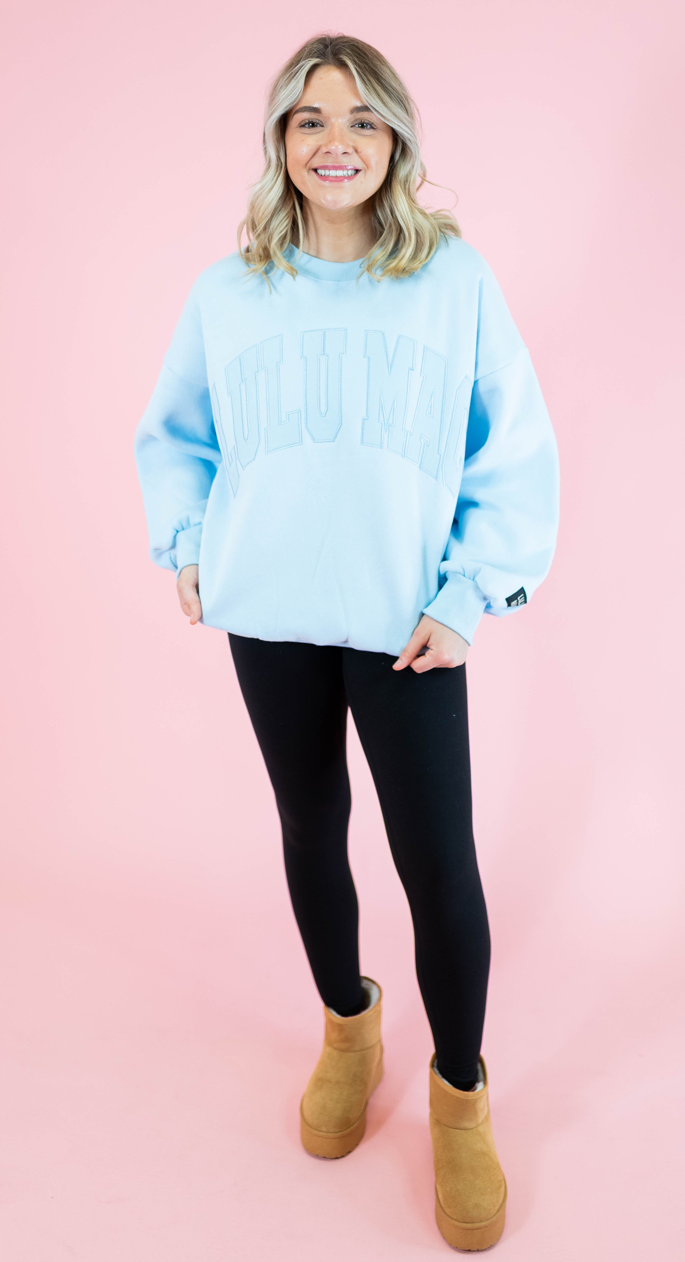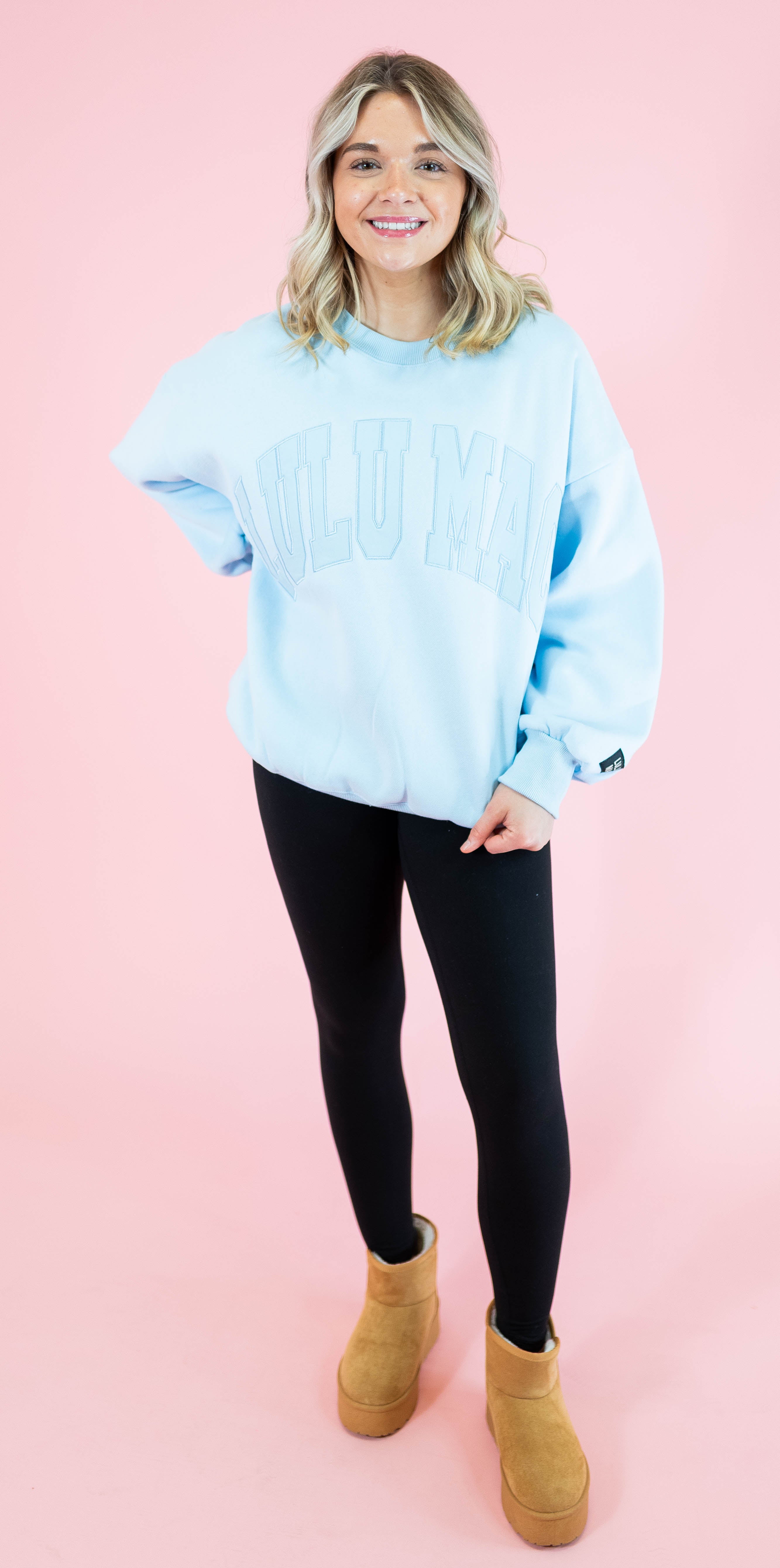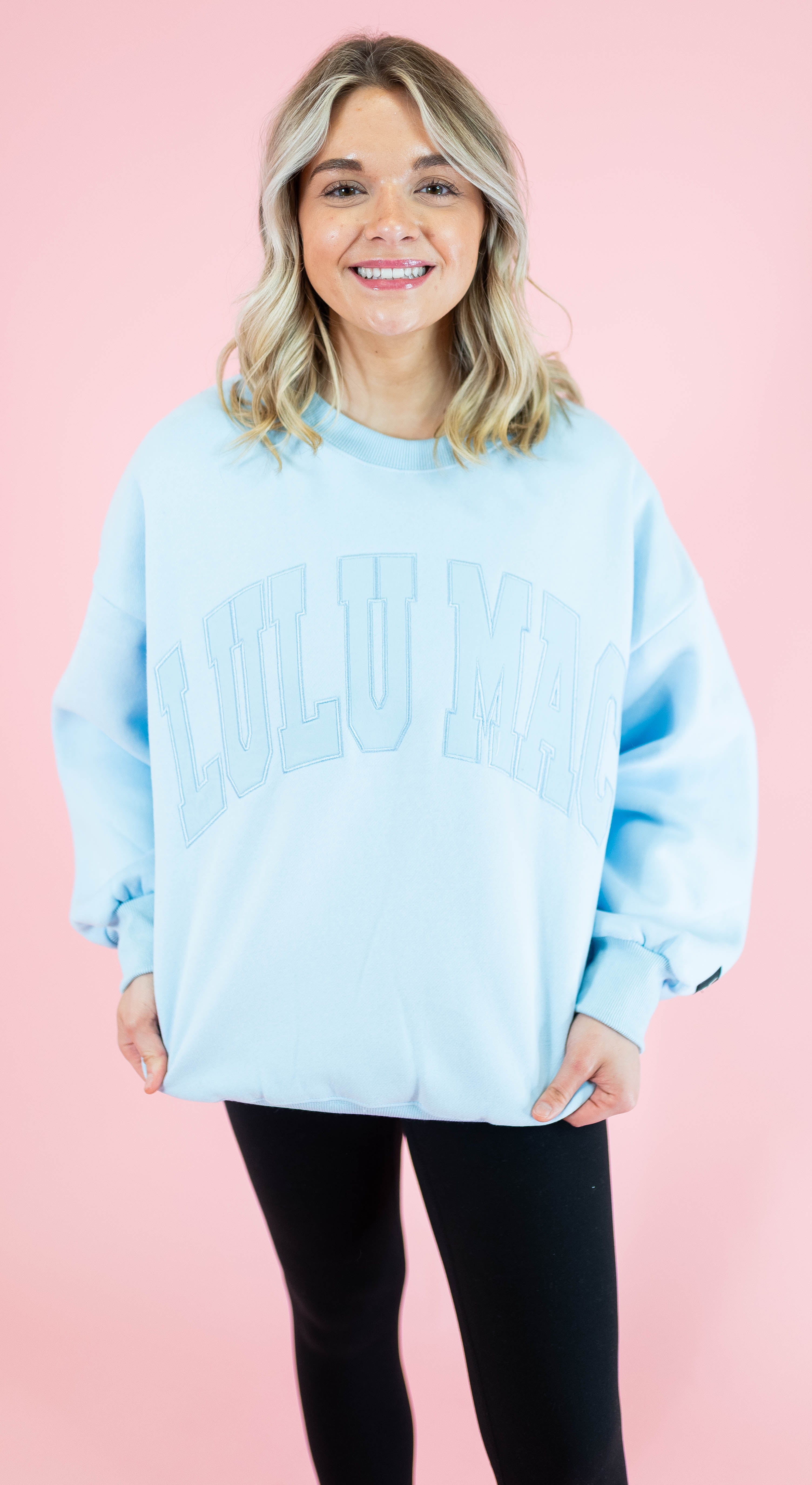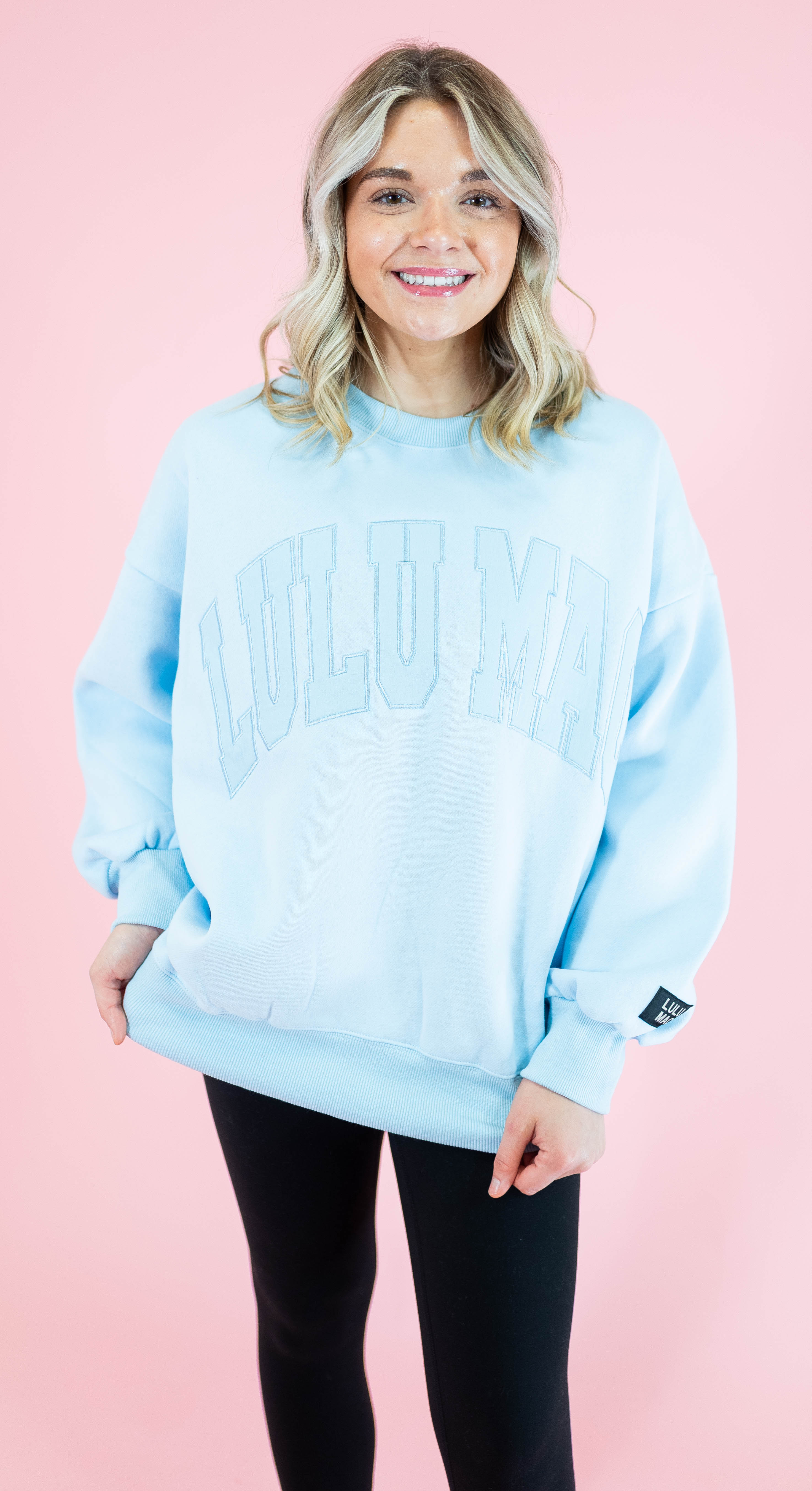 Lulu Mac: Mono Light Blue Embroidered Sweatshirt