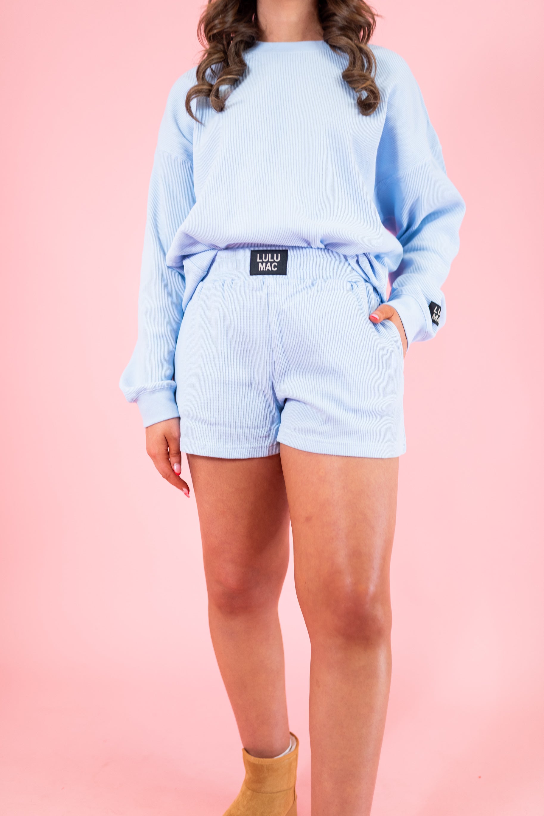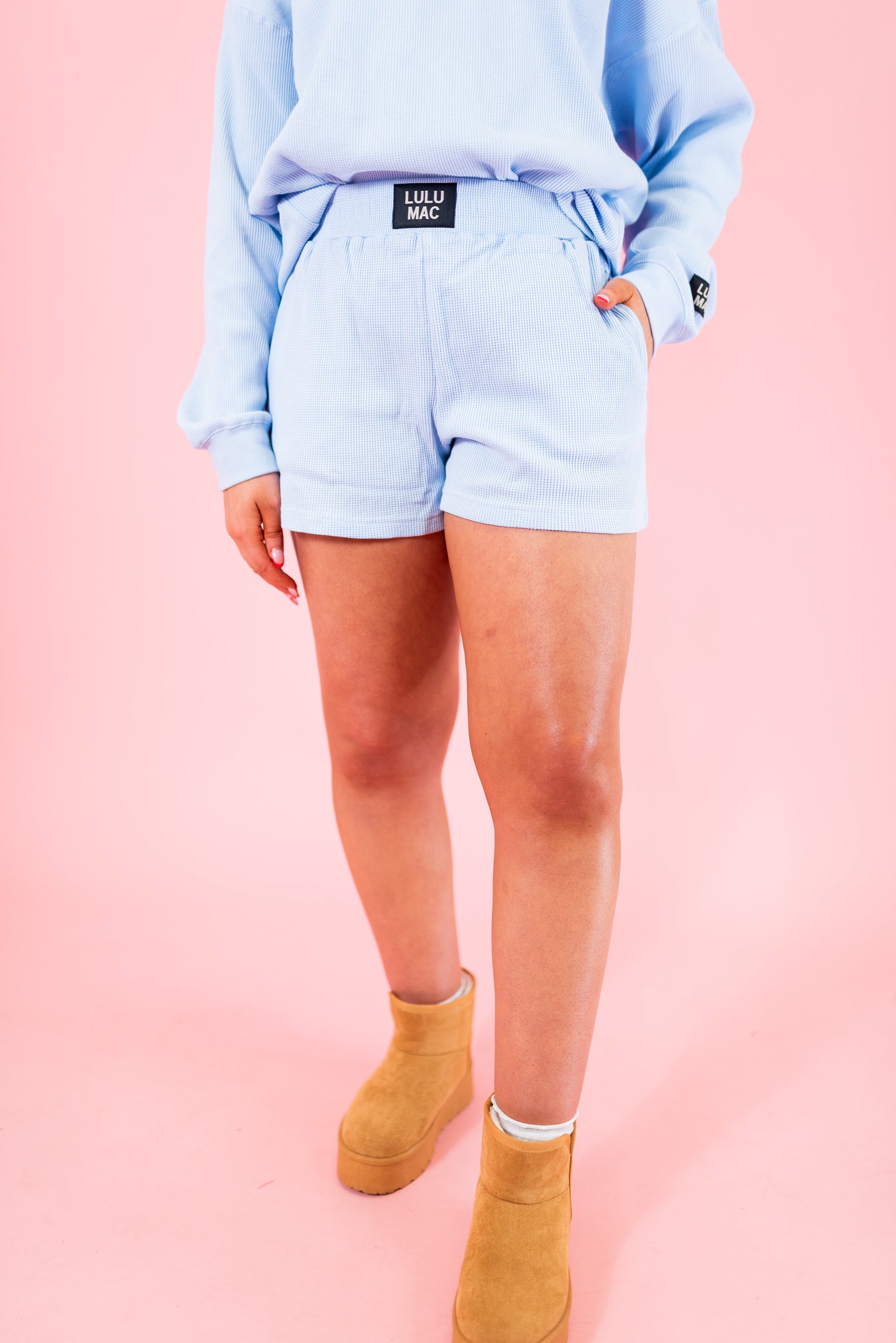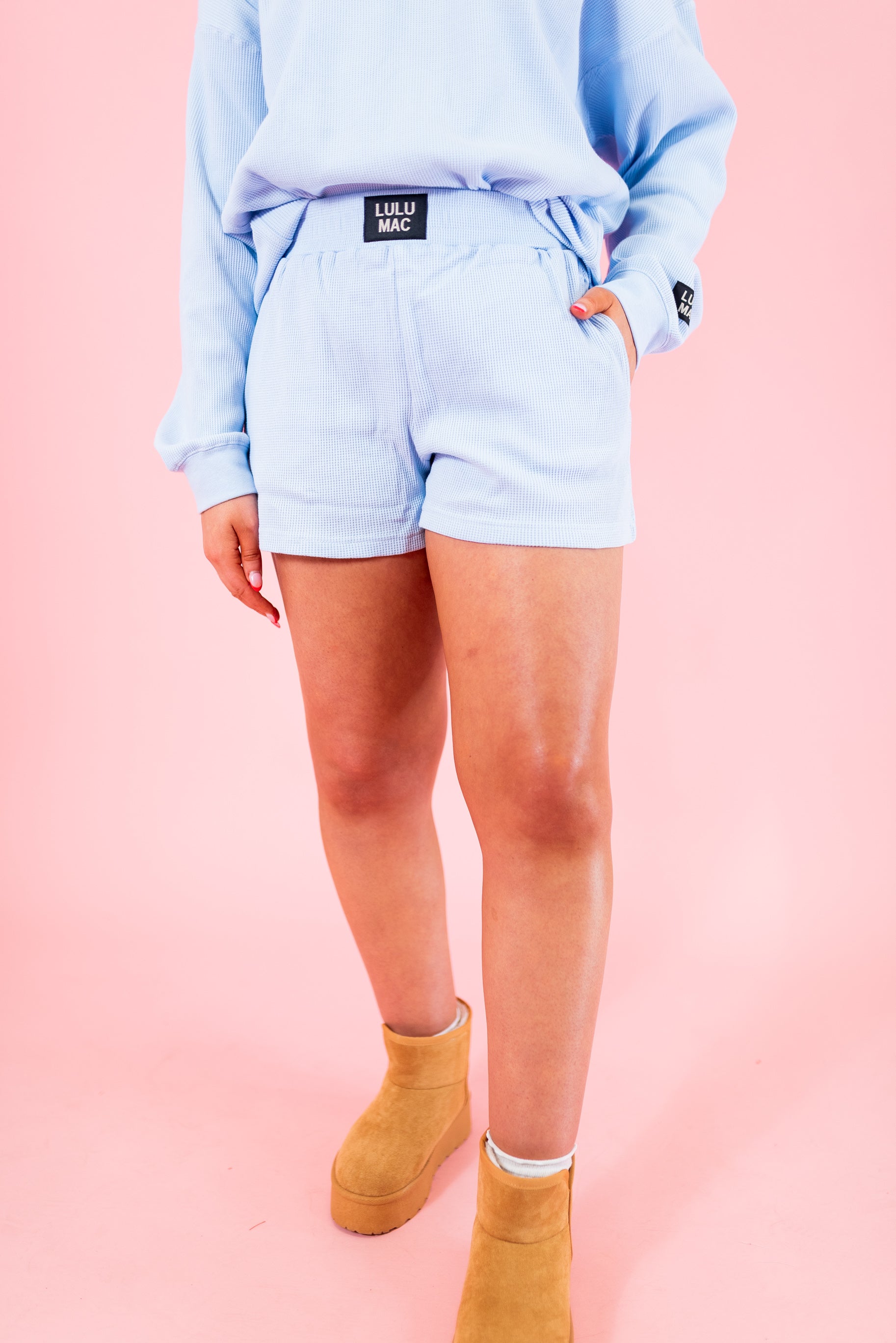 Lulu Mac: Waffle Shorts - Light Blue