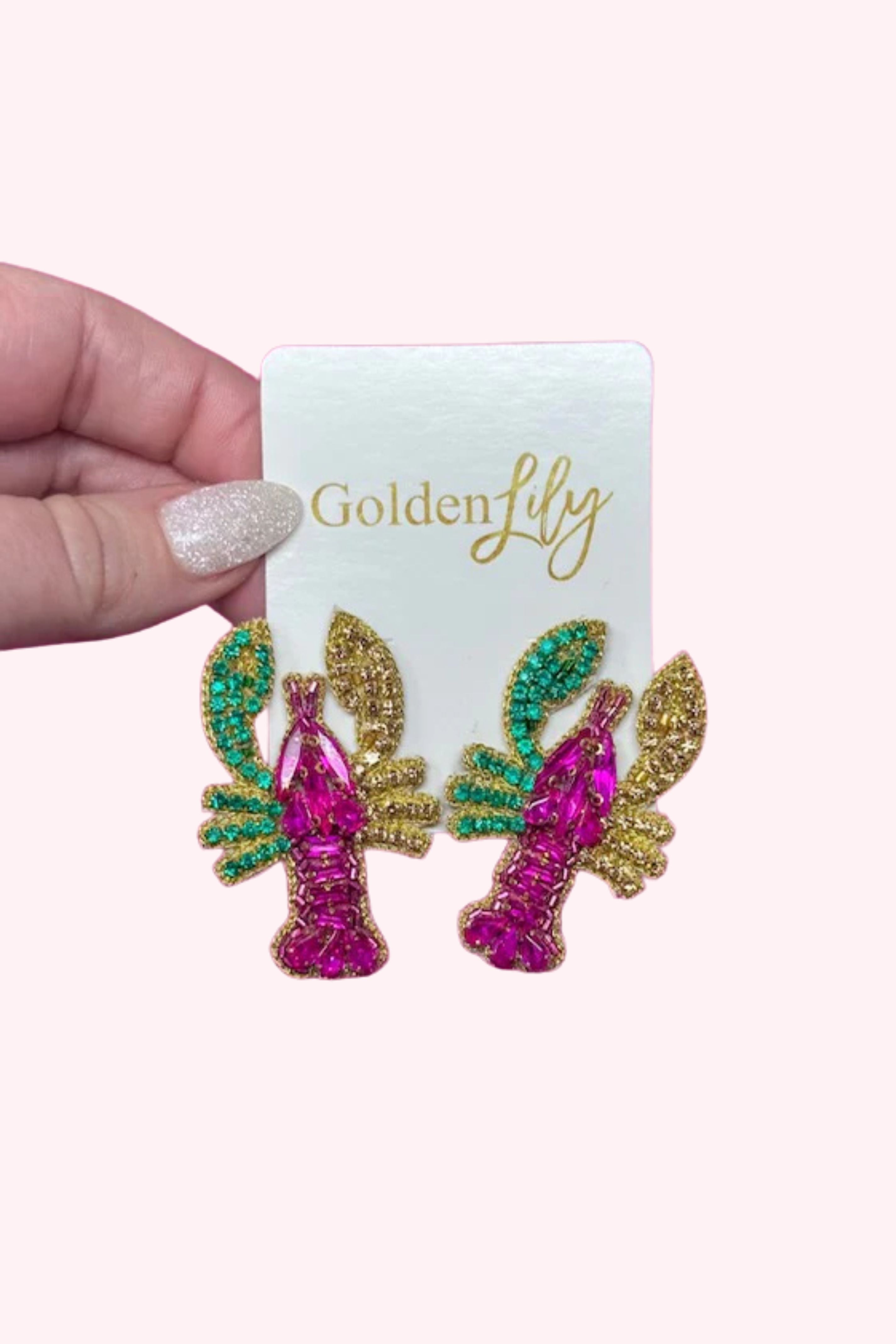 Add a festive pop of sparkle to your Carnival lineup with our Mardi Gras Crawfish Earrings – Multi Stud. These vibrant statement earrings feature a dazzling beaded crawfish design in shades of hot pink, emerald green, and shimmering gold—perfect for celebrating in true Louisiana style.