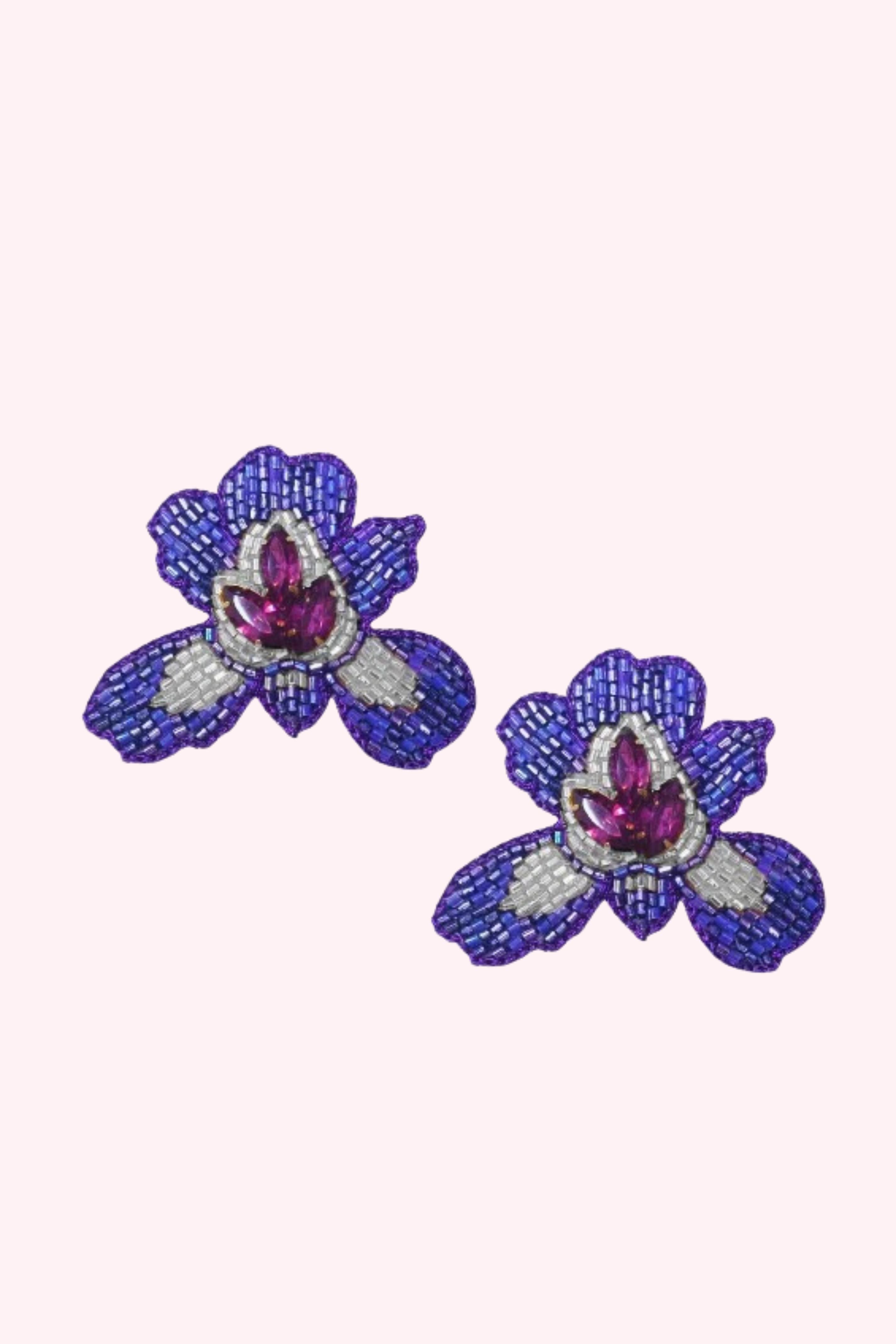 Golden Lily: Mardi Gras Iris Flower Stud Earrings