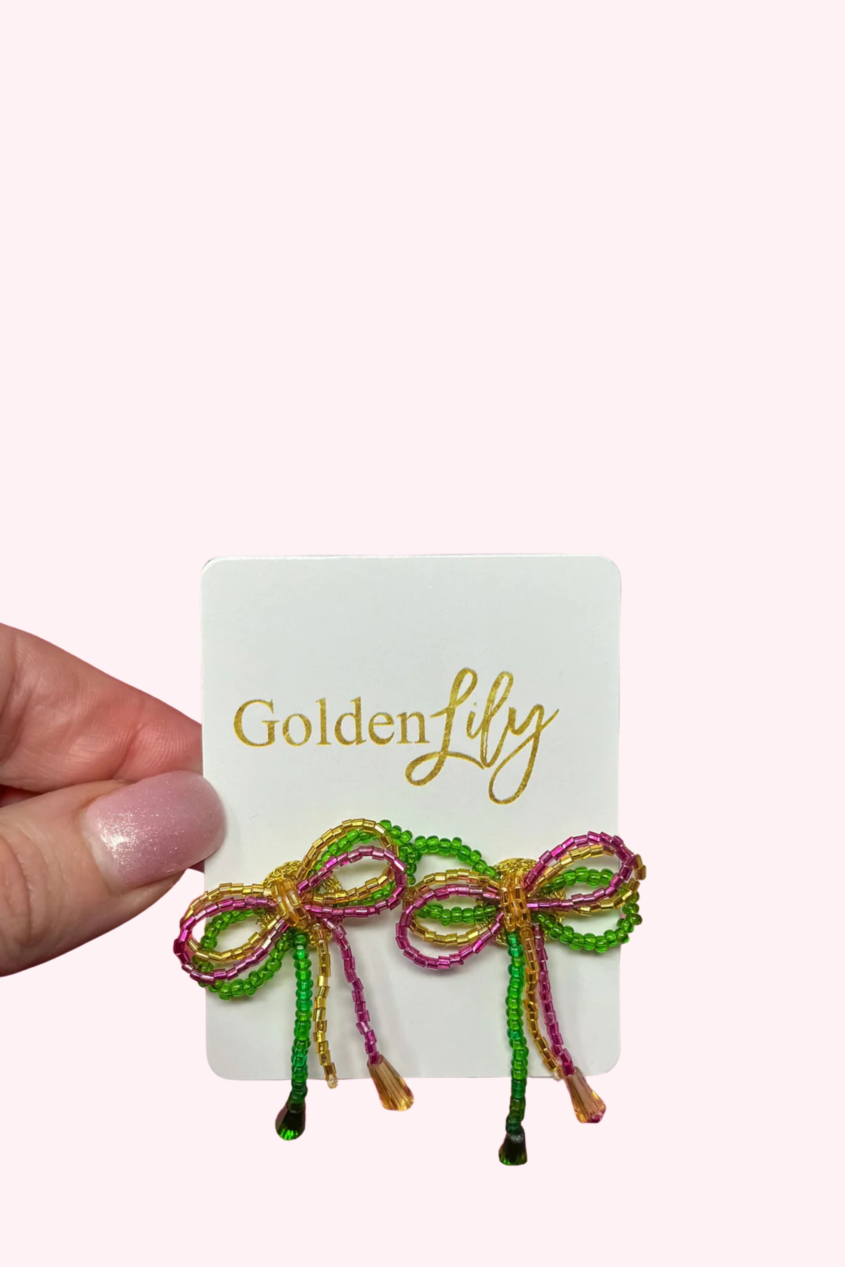 Golden Lily: Mardi Gras Mini Bow Earrings