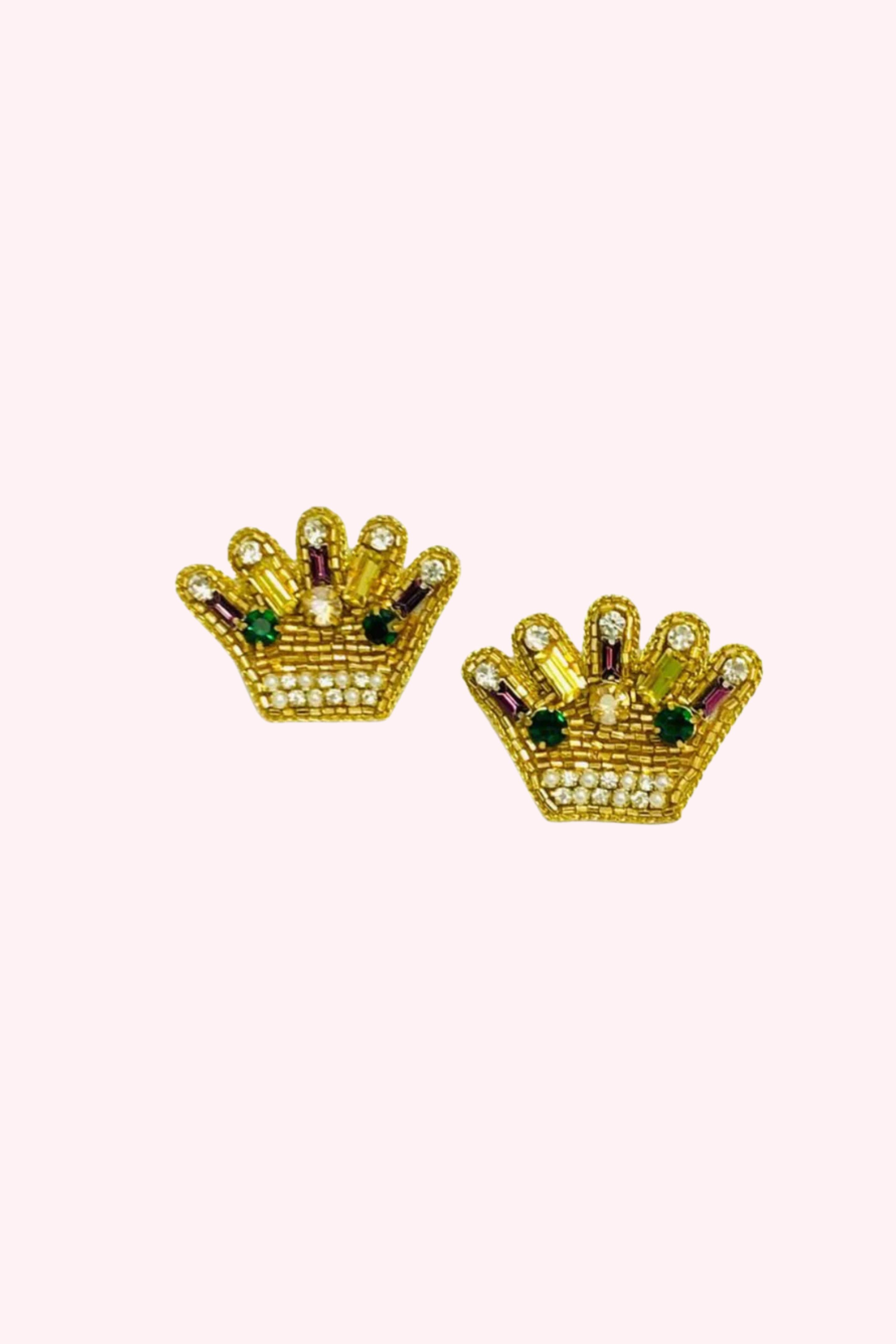Golden Lily: Mardi Gras Mini Crown Stud Earrings