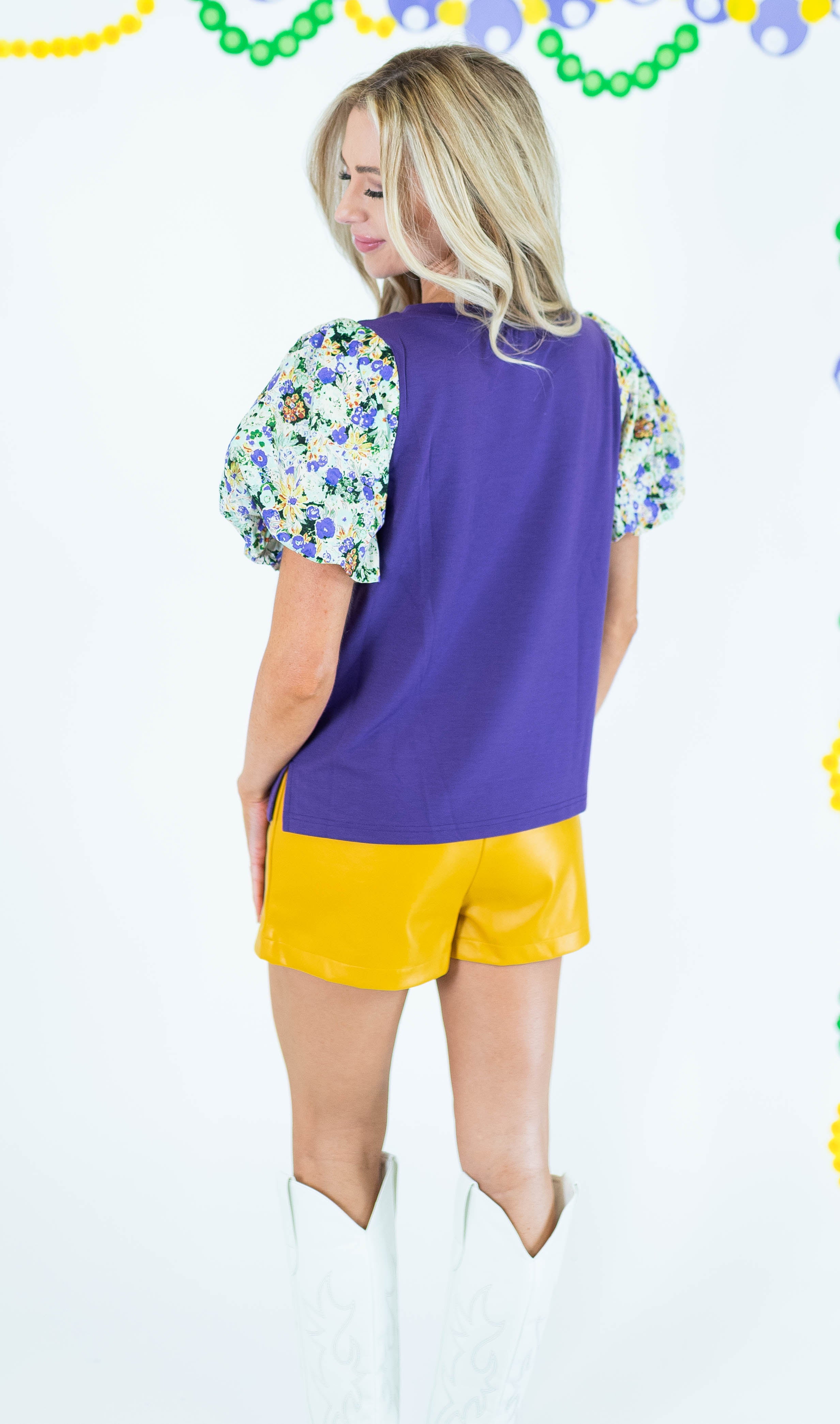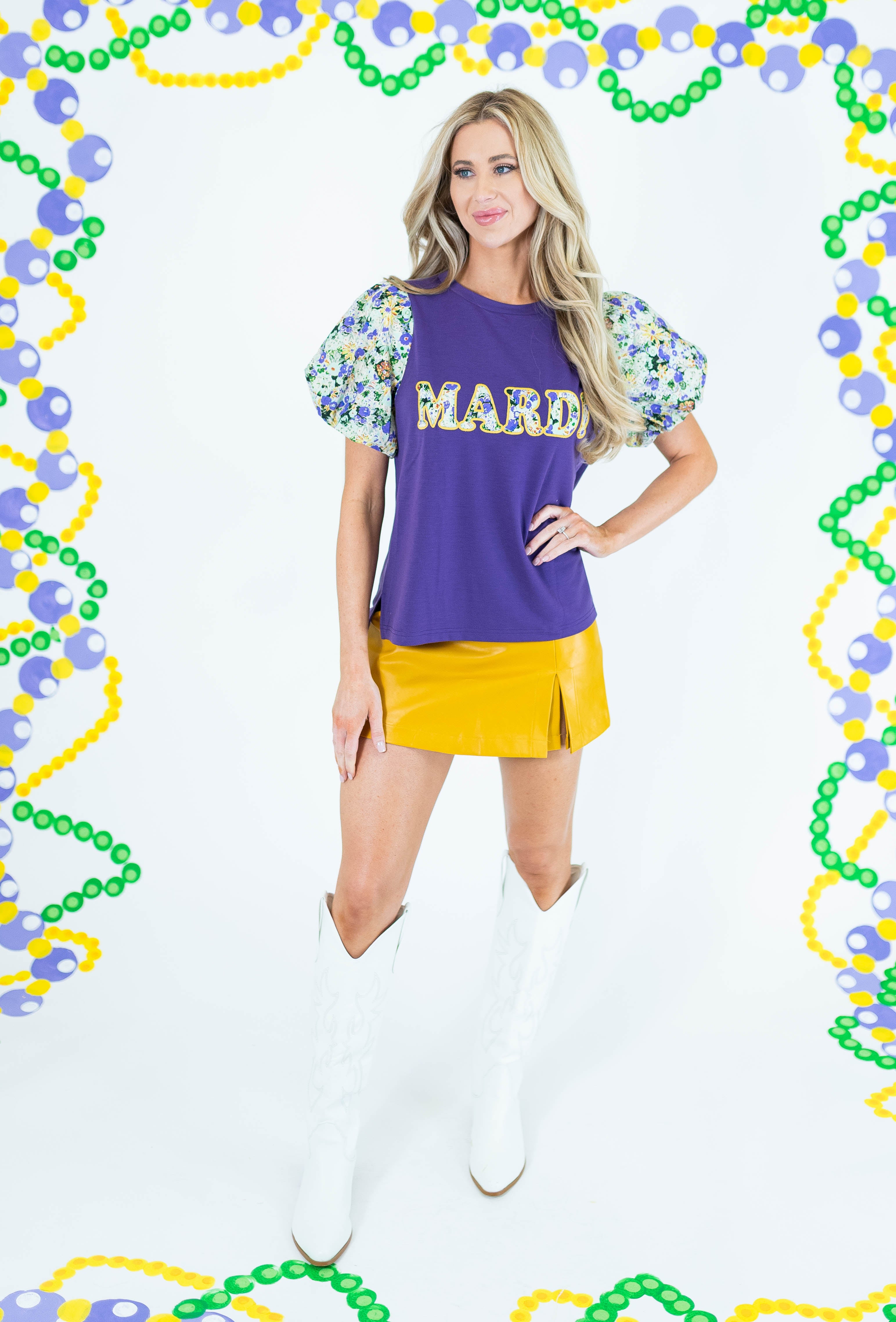 Mardi Gras Patch Bubble Sleeve Knit Top