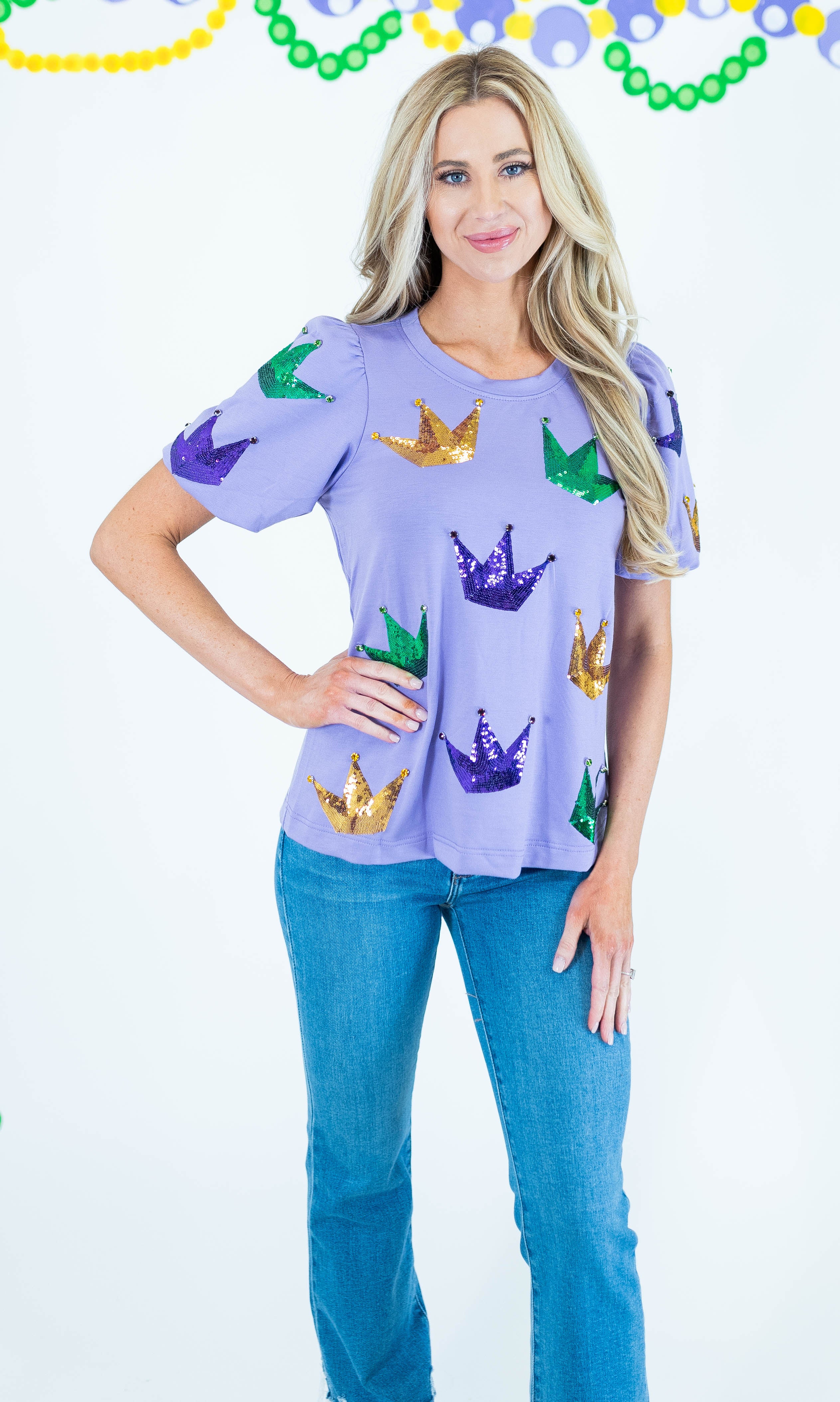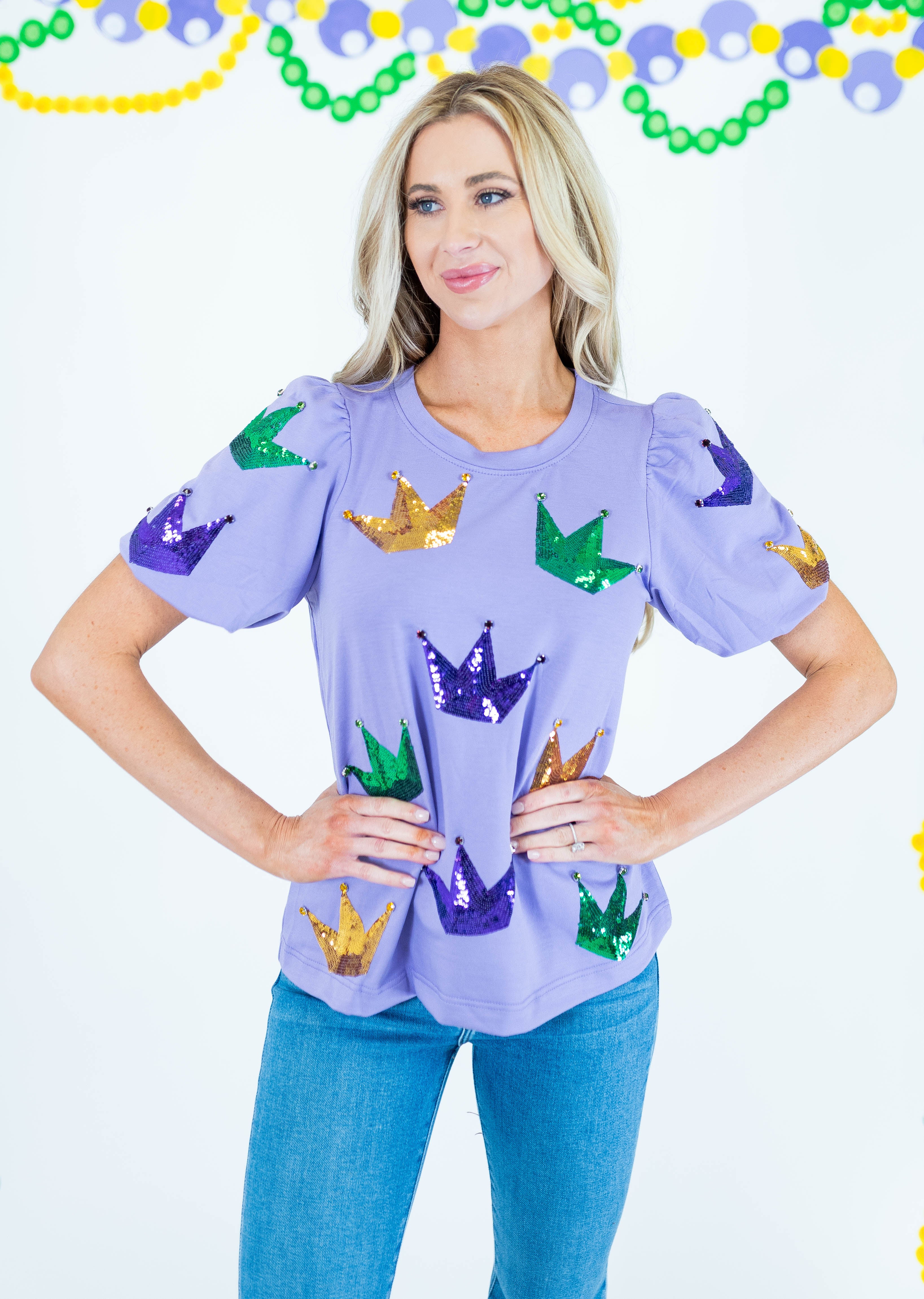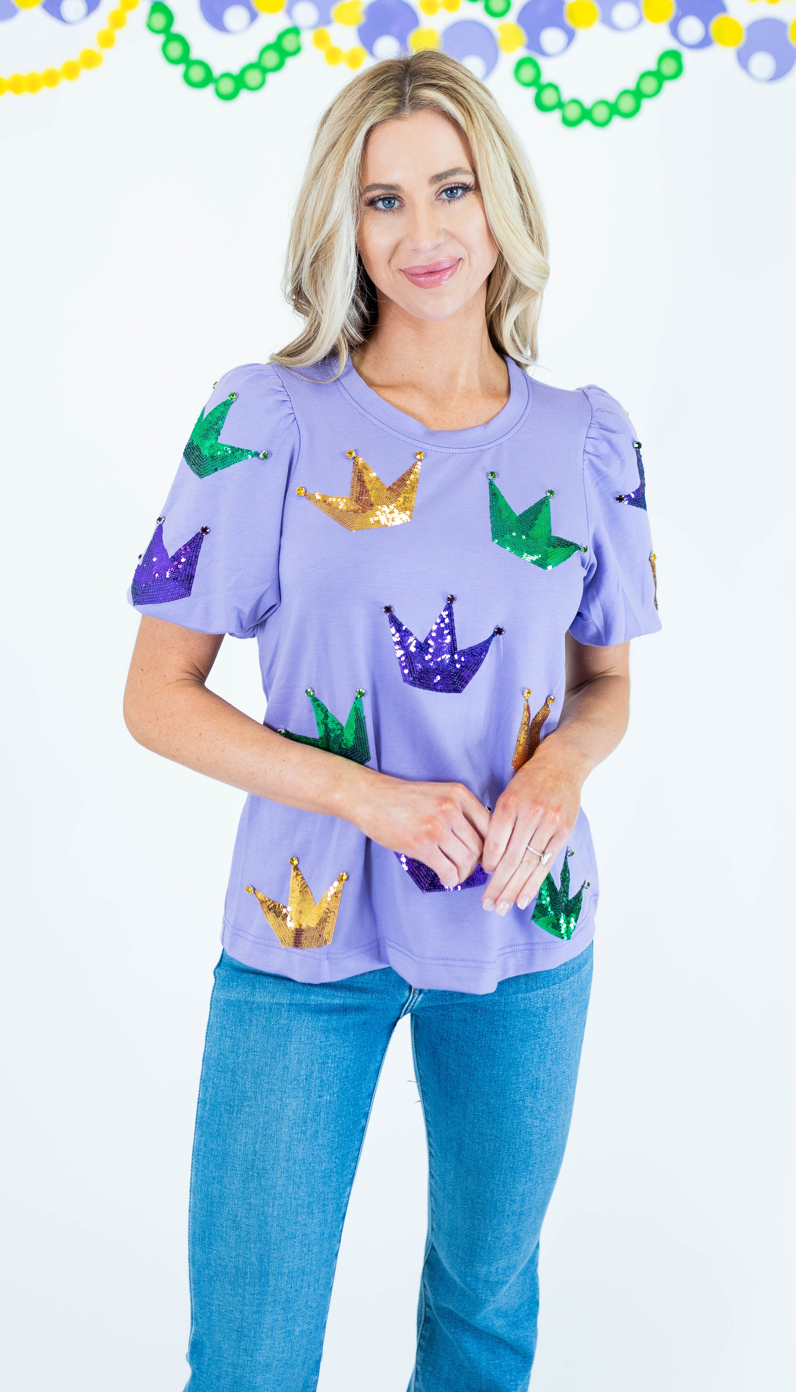 The Crowns Tina Top in vibrant purple brings festival-ready style to your wardrobe. Perfect for Mardi Gras celebrations or any occasion calling for bold color and confident flair, this top combines eye-catching hue with flattering design. Whether you're dancing through the streets or making a statement at a party, the Tina Top delivers the standout look you're after. Embrace the spirit of Mardi Gras in this essential crown piece.