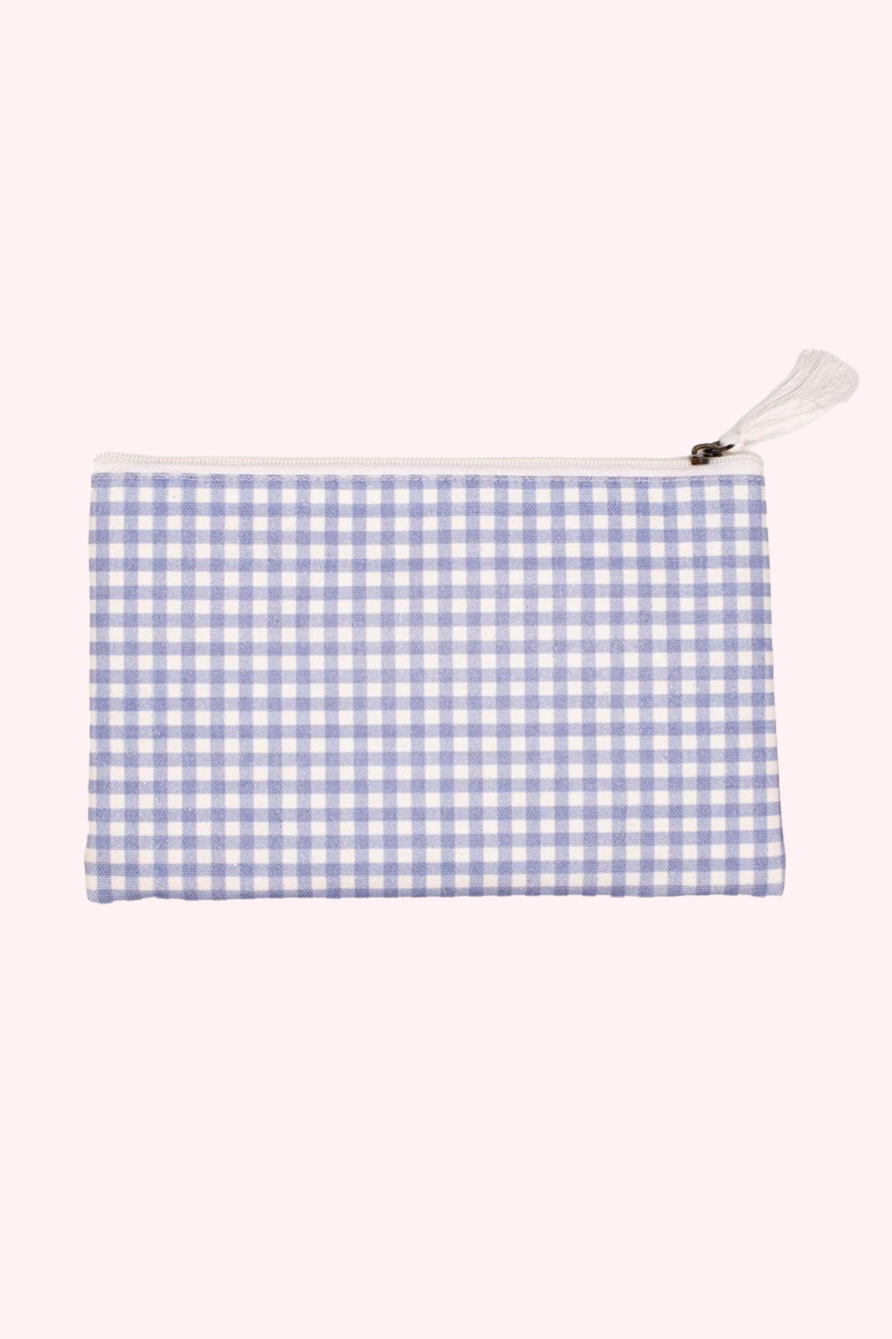 The Gingham Cosmetic White/Blue 10x6 is a stylish makeup bag that features a classic gingham pattern in white and blue. With its spacious 10x6 inch dimensions, this cosmetic bag is perfect for organizing and carrying your beauty essentials.
