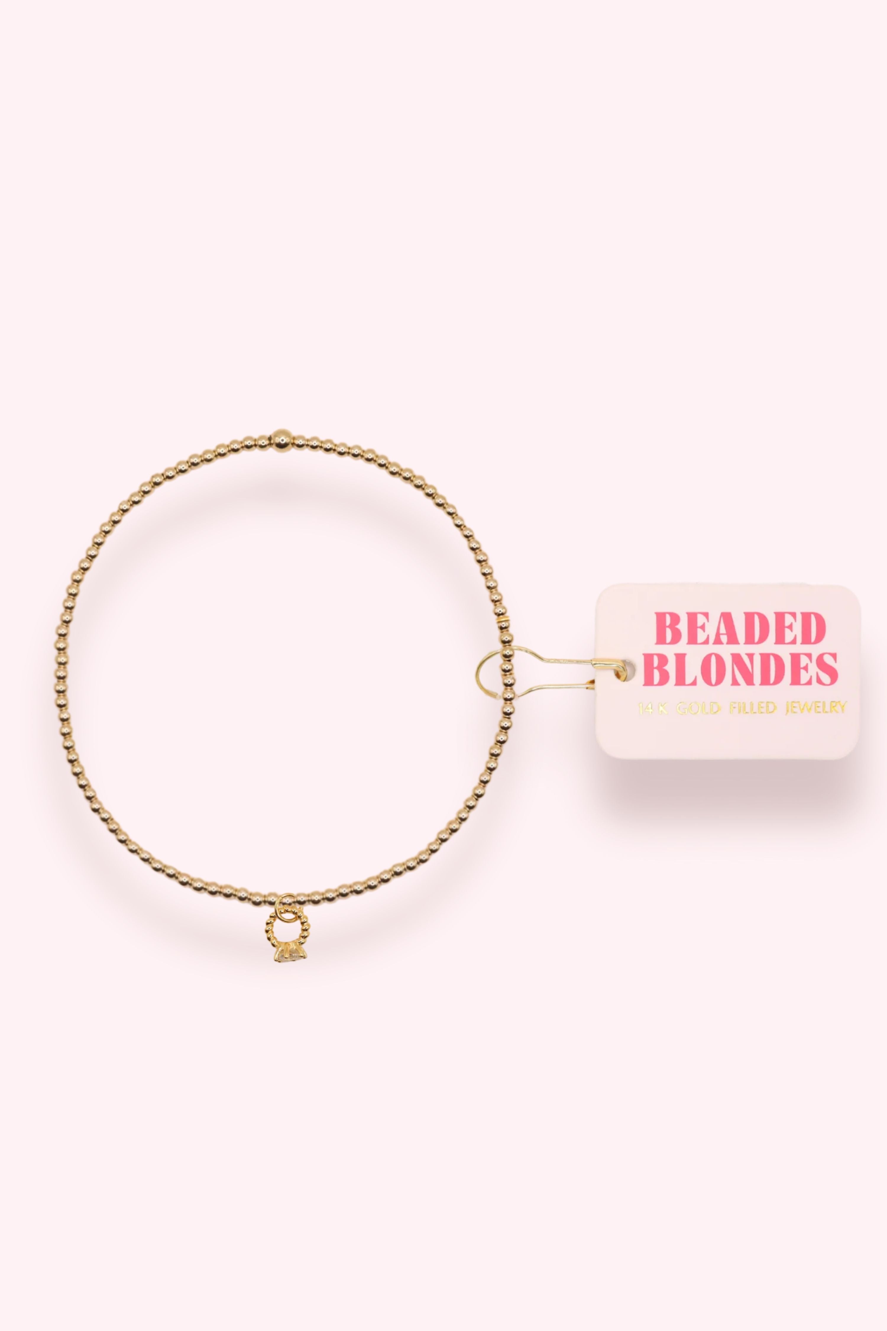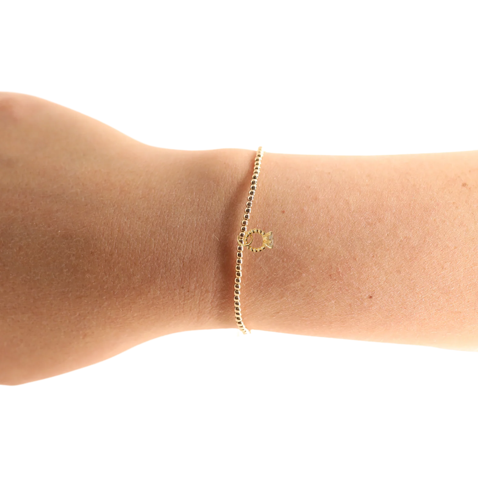 2MM gold beaded stretch bracelet with gold Engagement Ring charm.